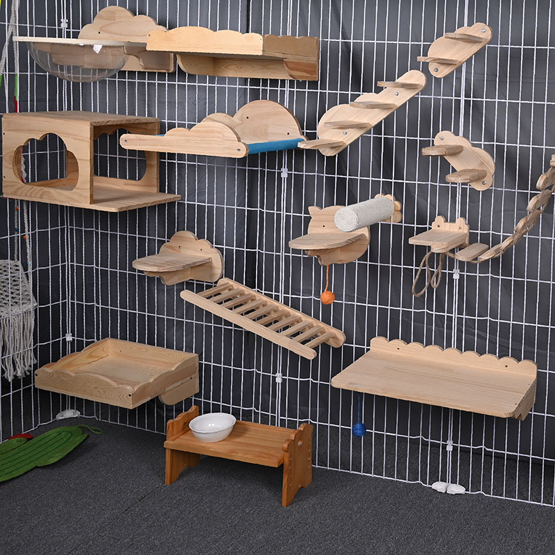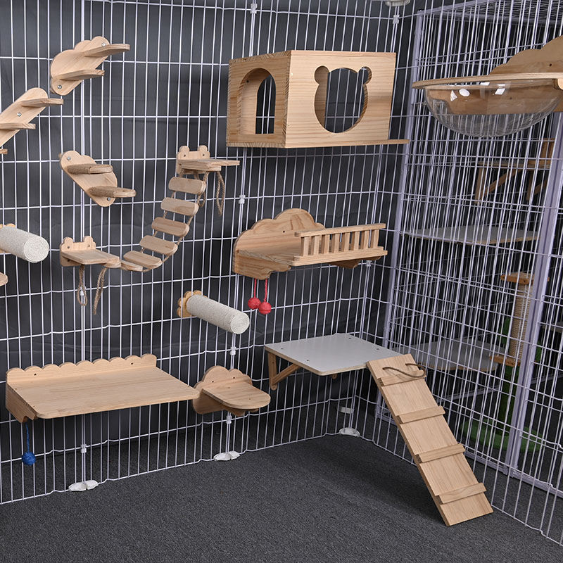 고양이 케이지 고정 단단한 나무 파티션 고양이 등반 프레임 교수형 둥지 공간 캡슐 나머지 플랫폼 침대 고양이 스크래치 칼럼 사다리 해먹 세라믹