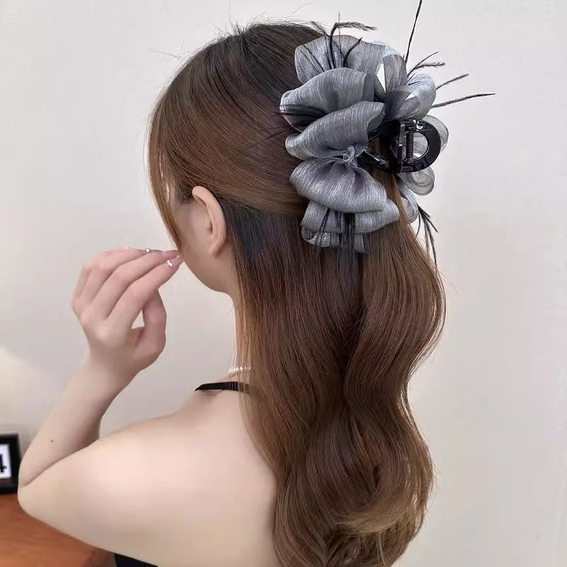 우아하고 활용도가 높은 안개꽃 스타일의 메쉬 집게핀, 뒷머리 샤크클립, 클라우드 버블 리본 머리핀 헤드웨어