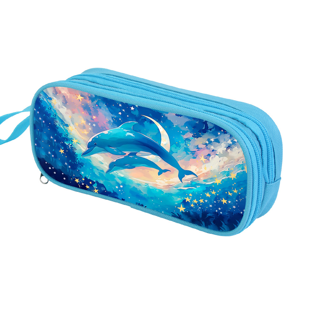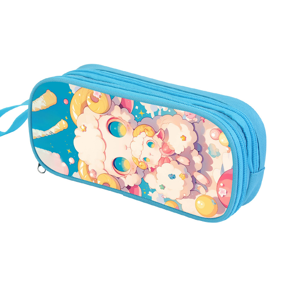 新款手提双层笔袋 创意收纳文具笔袋 炫彩卡通风格双层化妆包