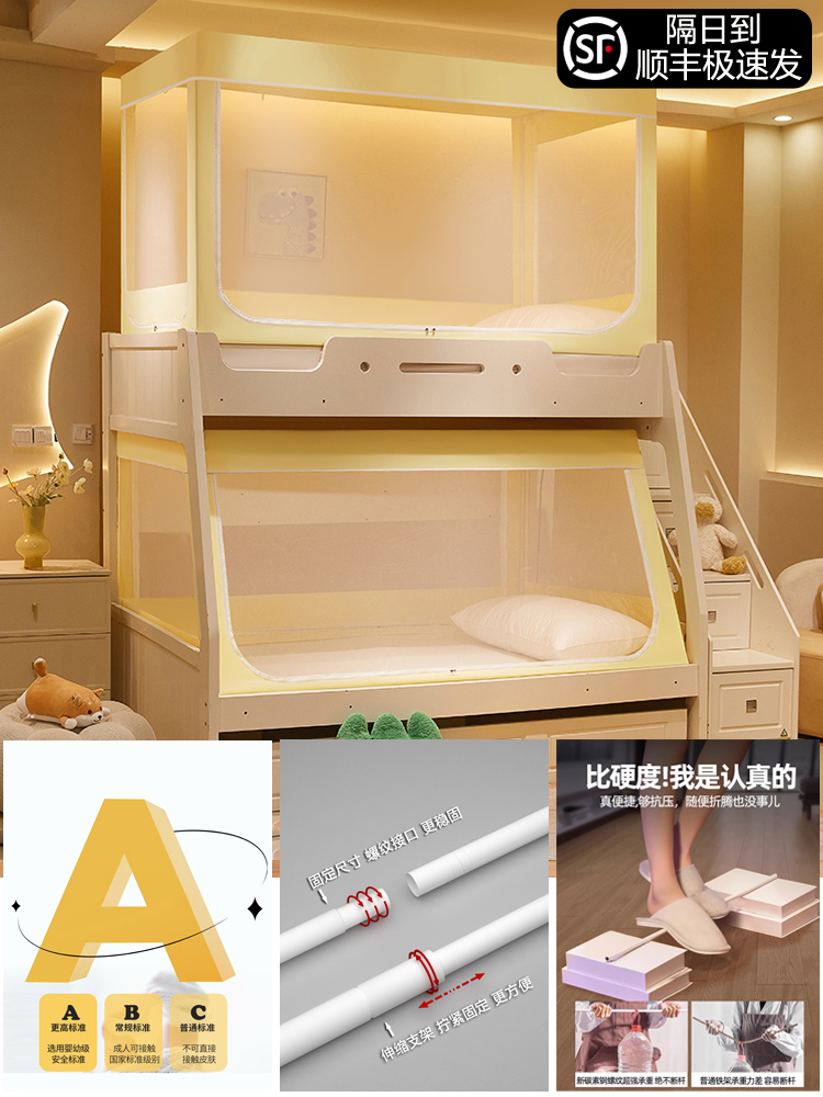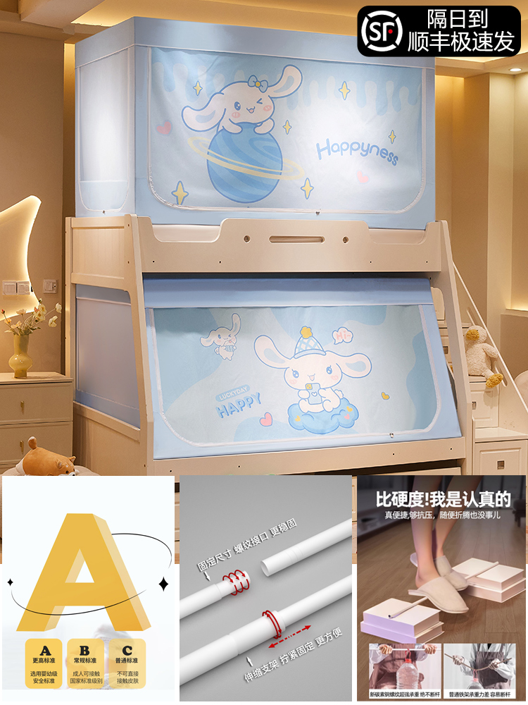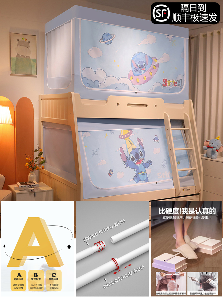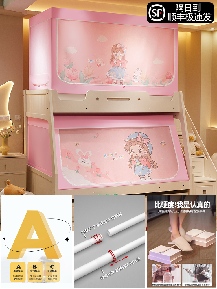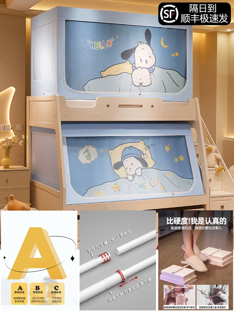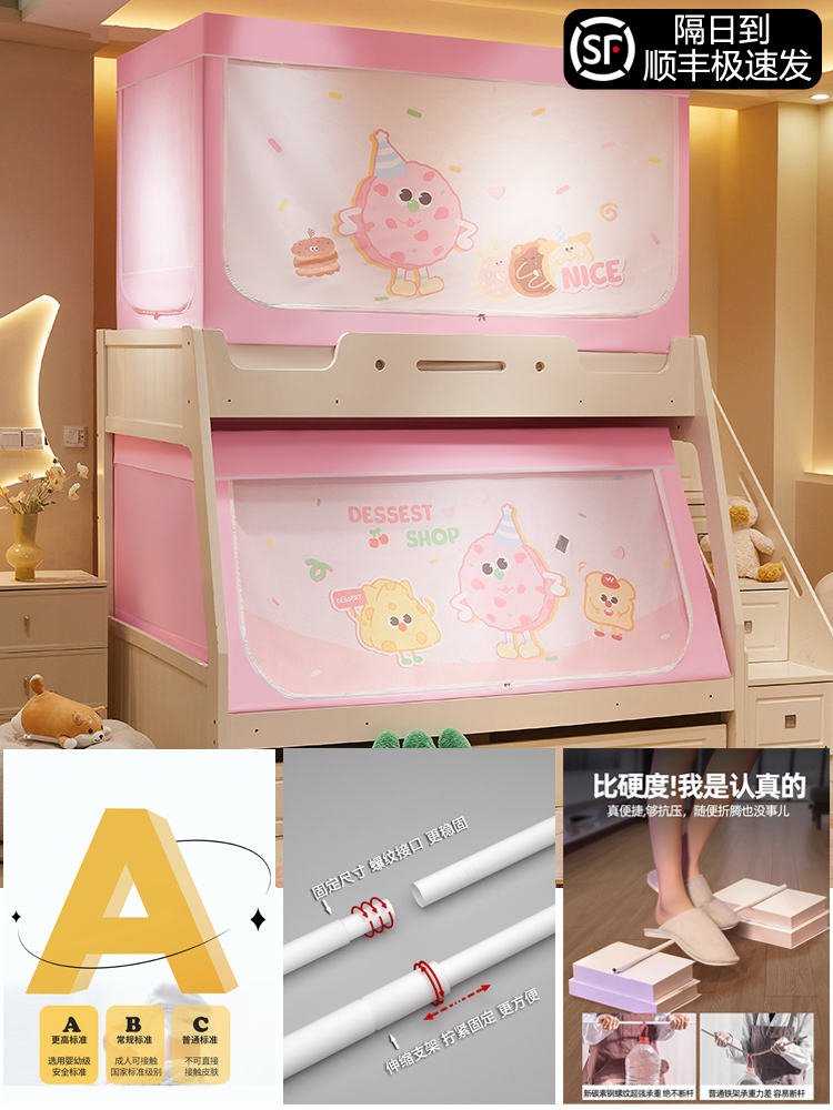 침대 이층 침대 모기장 가정용 낙하 방지 어린이 차광 침대 커튼 일체형 이층 침대 사다리형 텐트스토어 가기