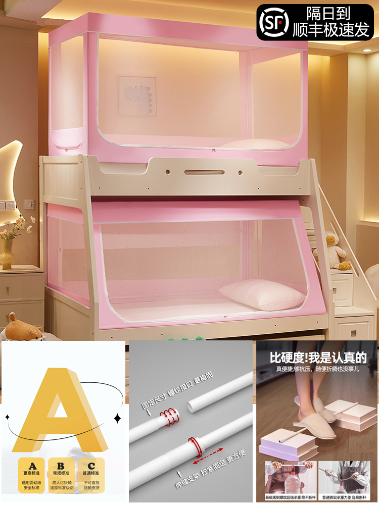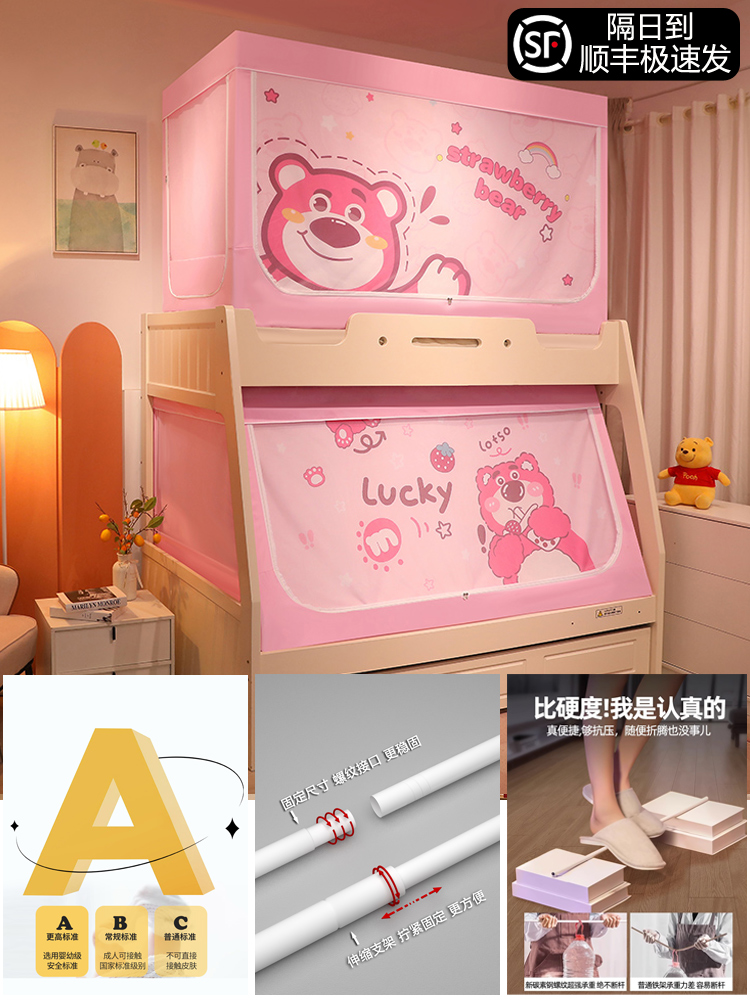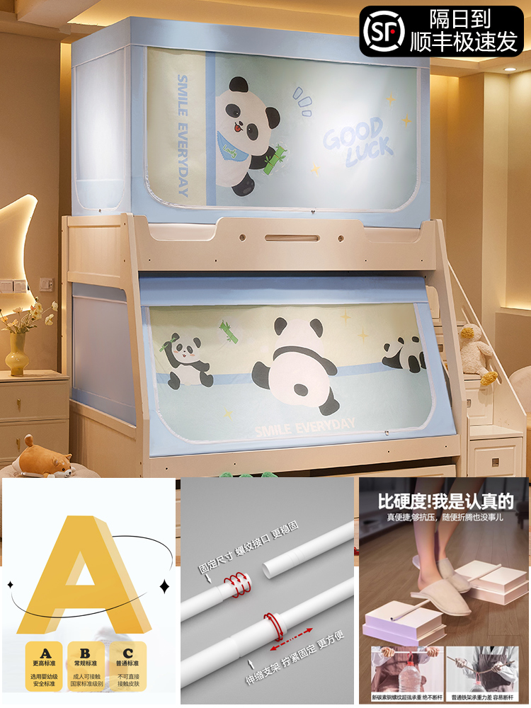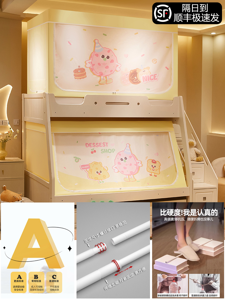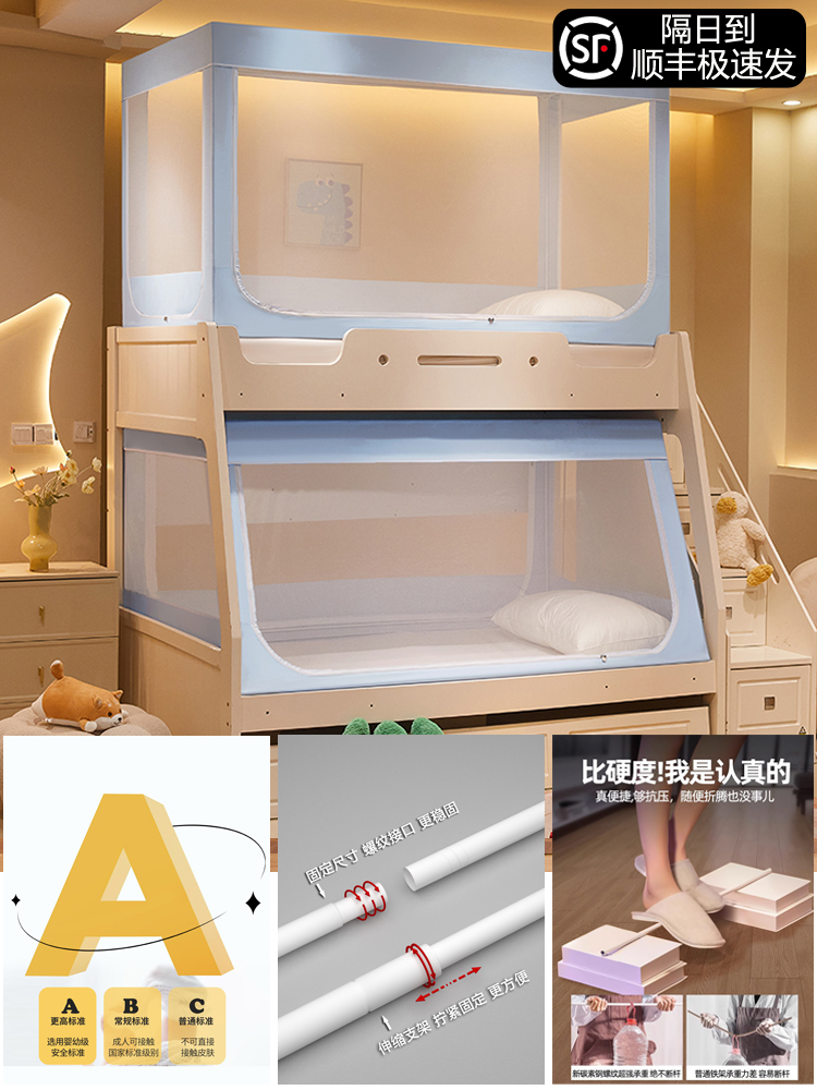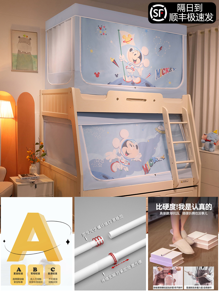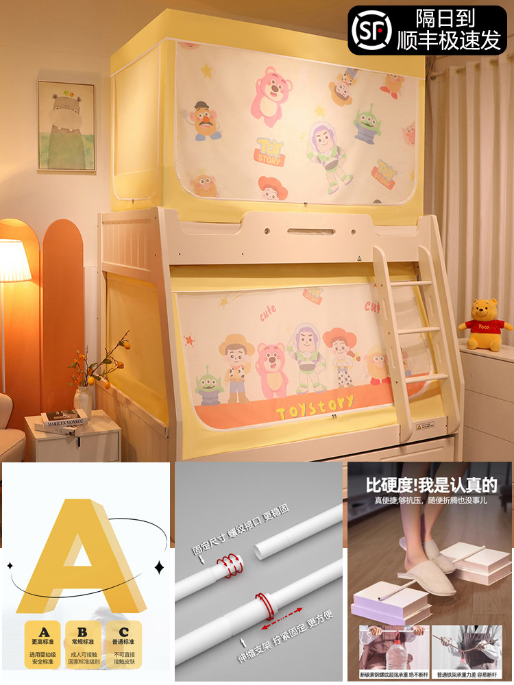 침대 이층 침대 모기장 가정용 낙하 방지 어린이 차광 침대 커튼 일체형 이층 침대 사다리형 텐트스토어 가기