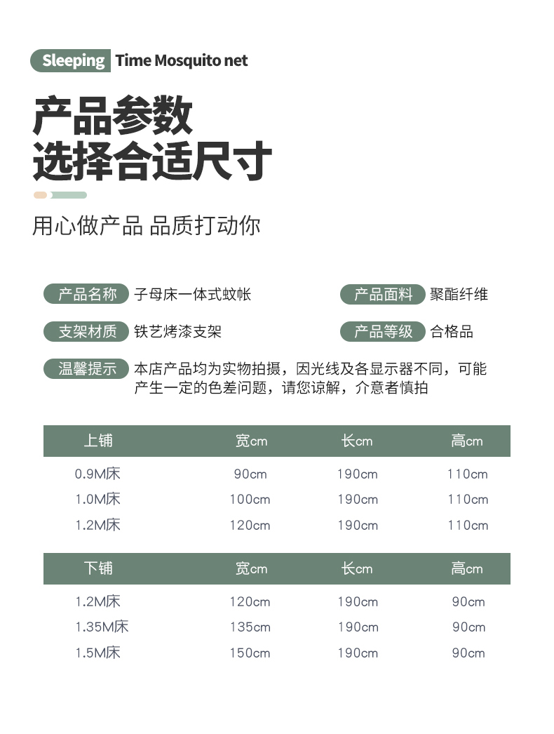 • 싱글 1.2m 사다리꼴 하단 침대: 폭 110~120x 길이 190x 높이 80~100cm [도장 텔레스코픽 브래킷] 전면 및 후면 지퍼