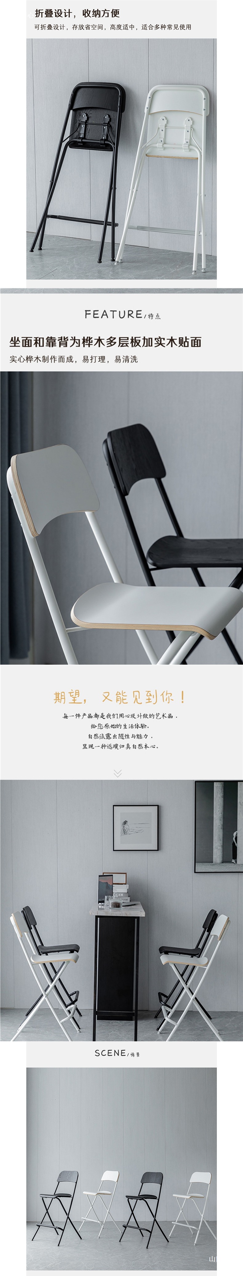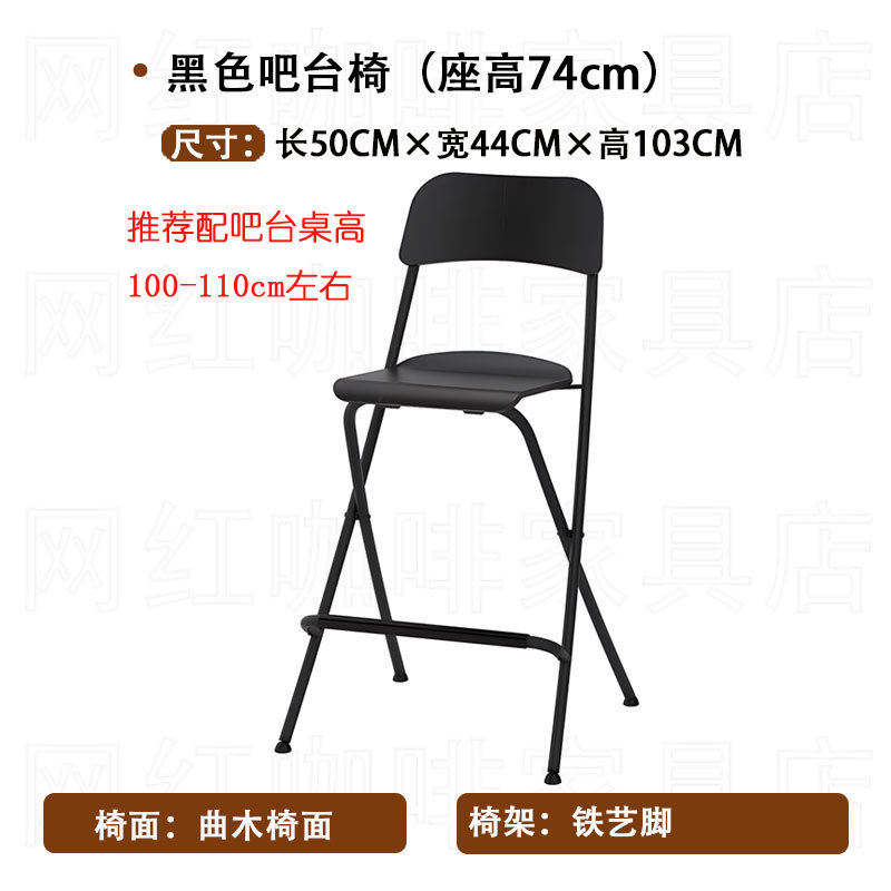 간단한 오픈 키친 등받이 바 의자 접이식 솔리드 우드 바 의자 밀크 티 디저트 샵 카페 바 의자
