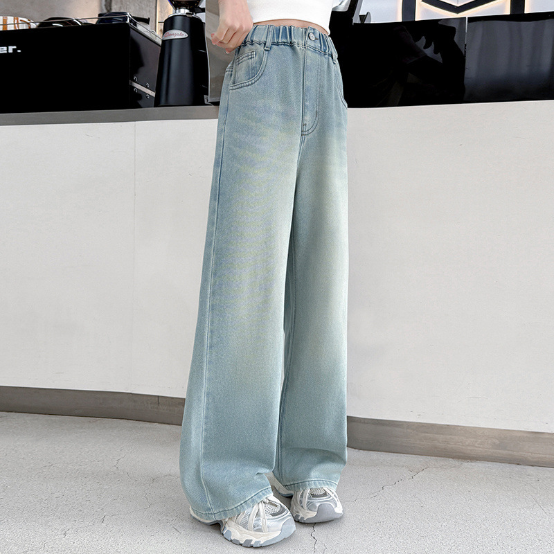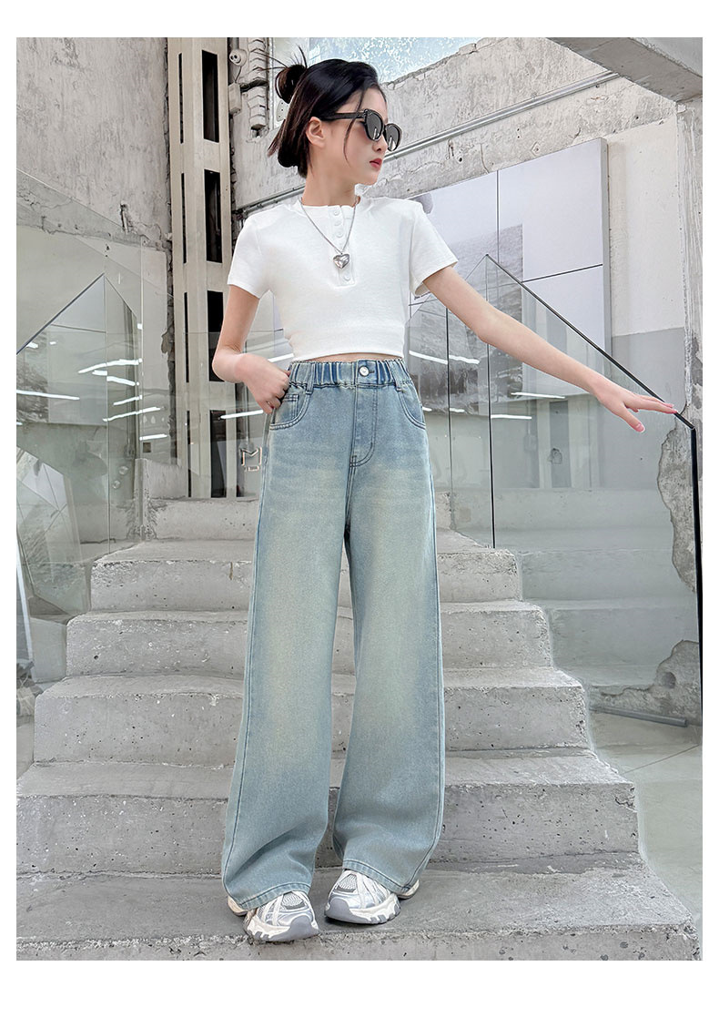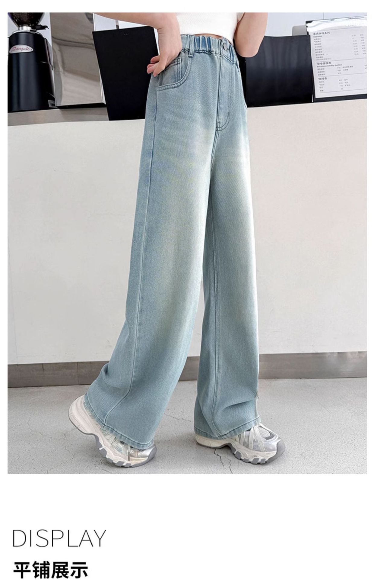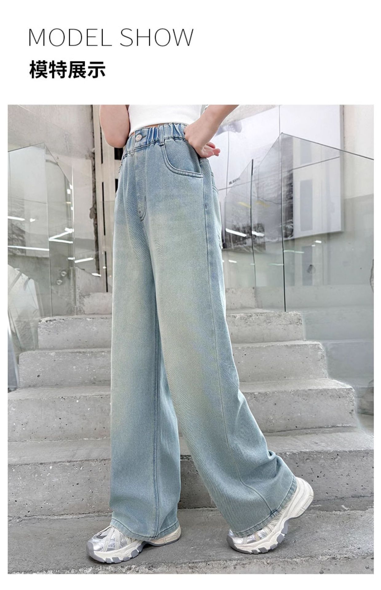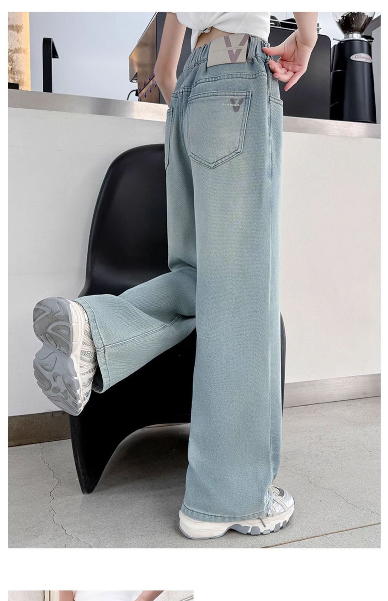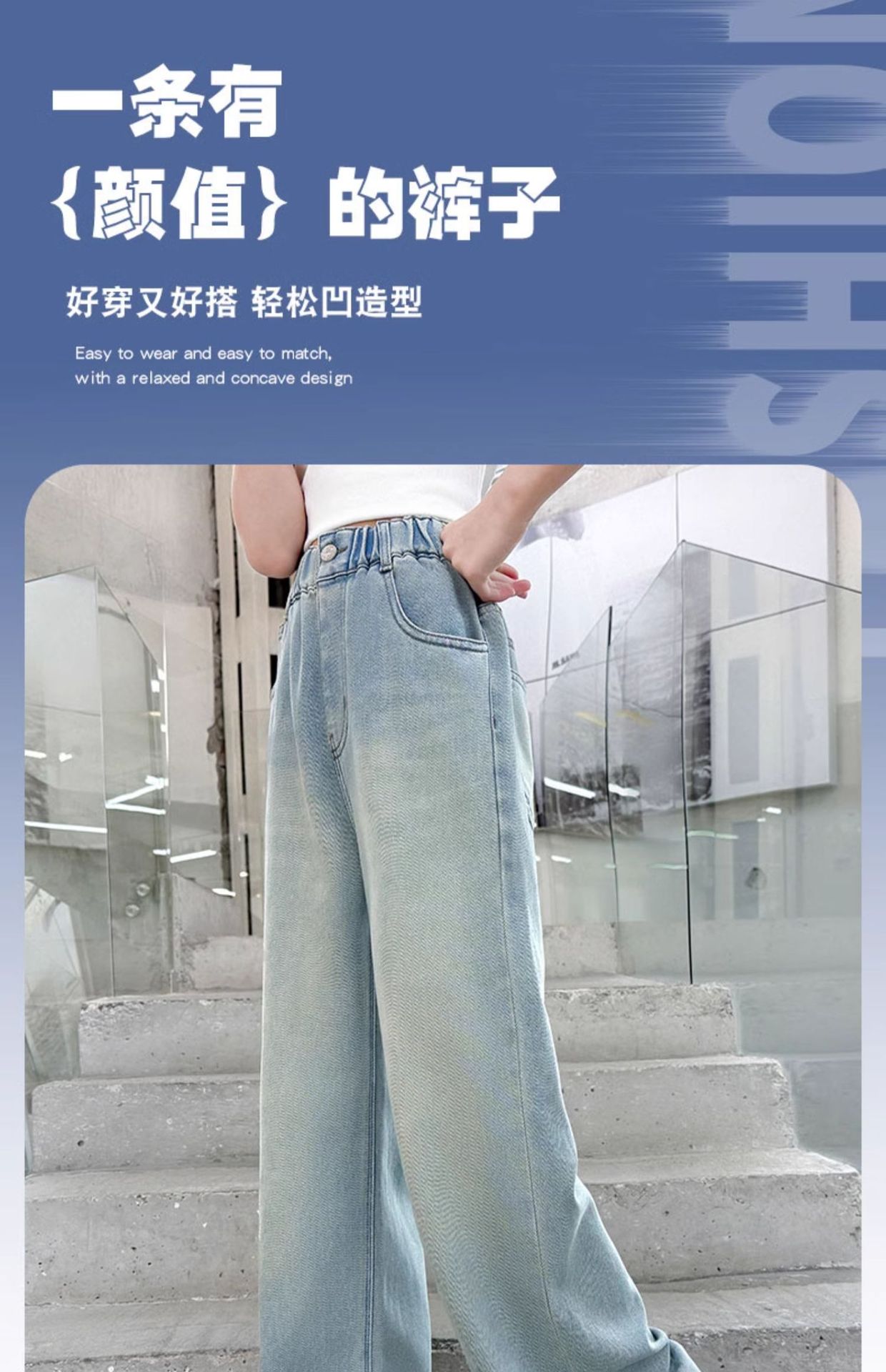 소녀 얇은 와이드 레그 바지 여름 2025 새로운 스타일 웨스턴 스타일 중학교 느슨한 바지 어린이 큰 어린이 여름 청바지스토어 가기