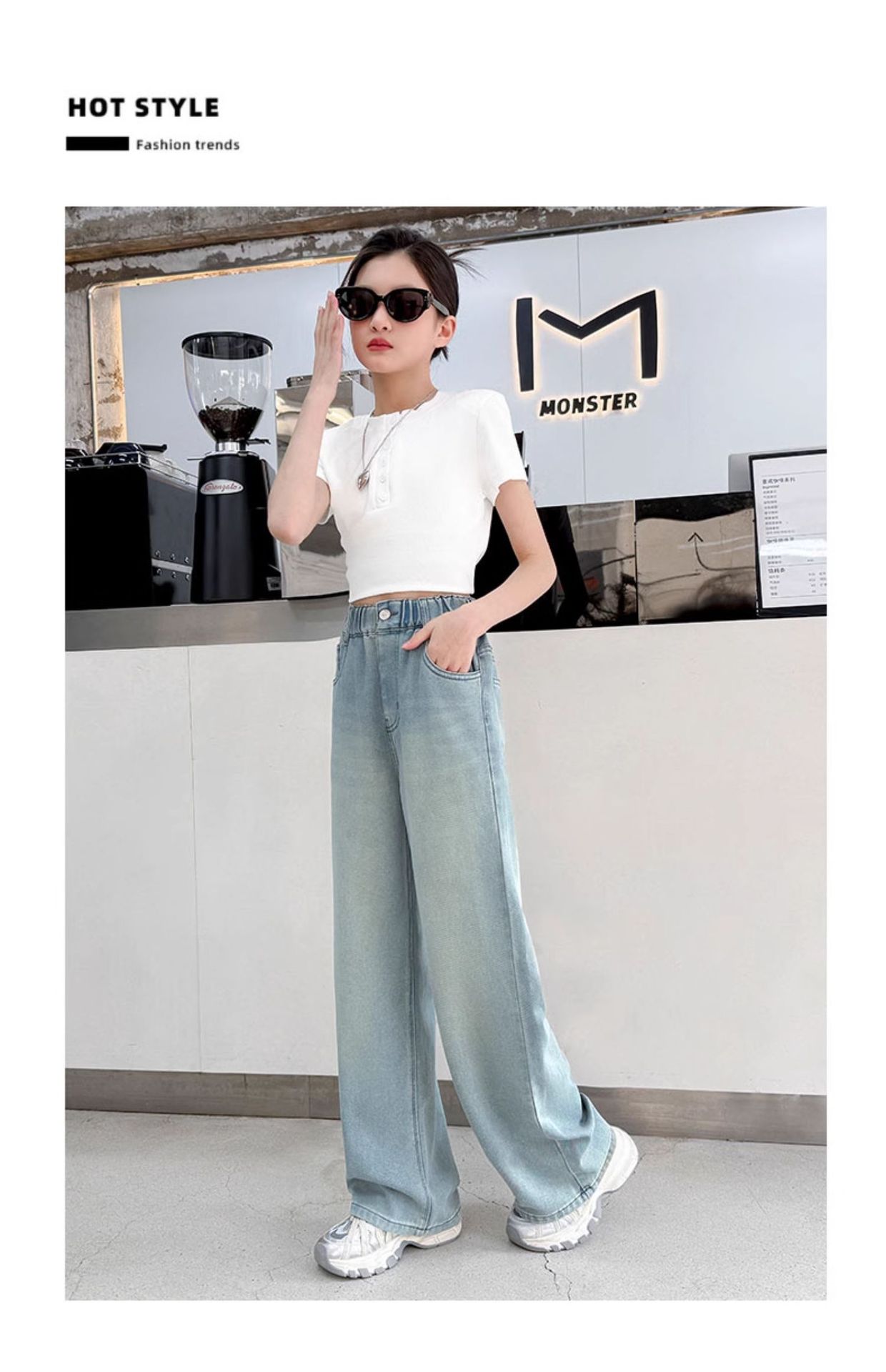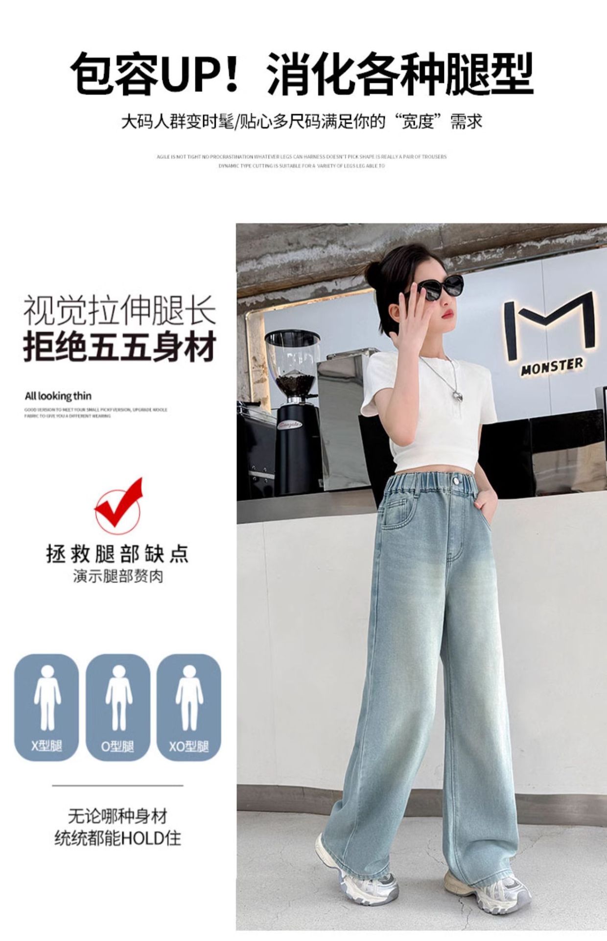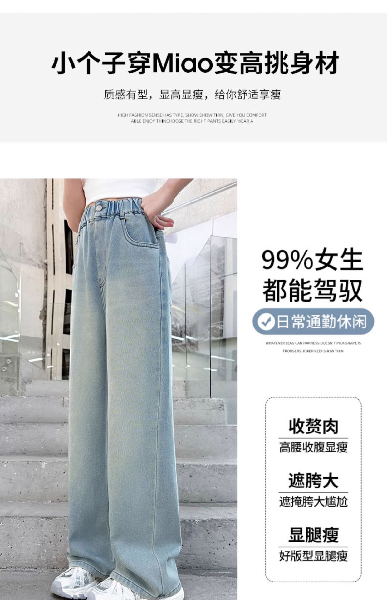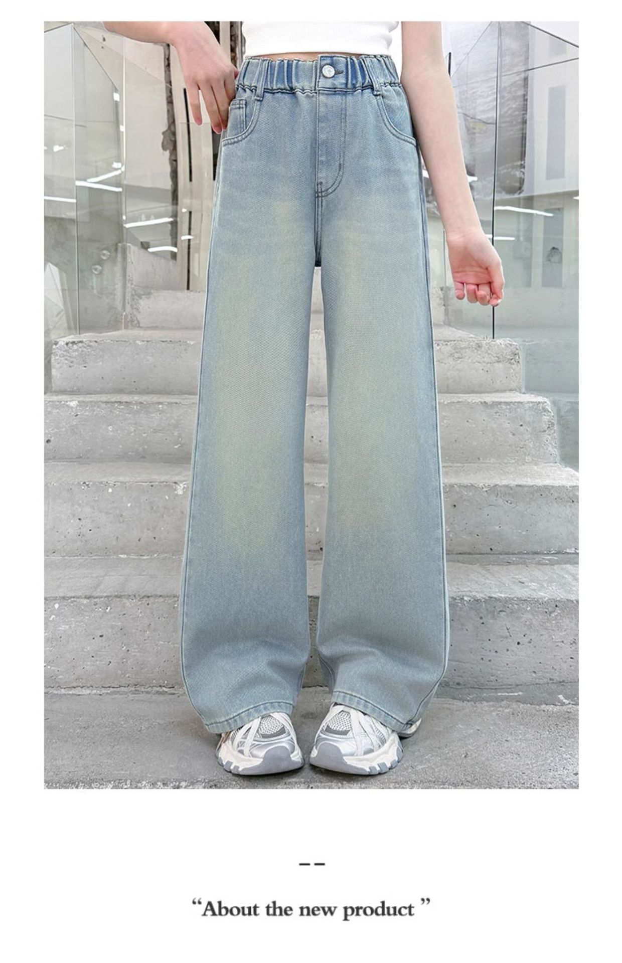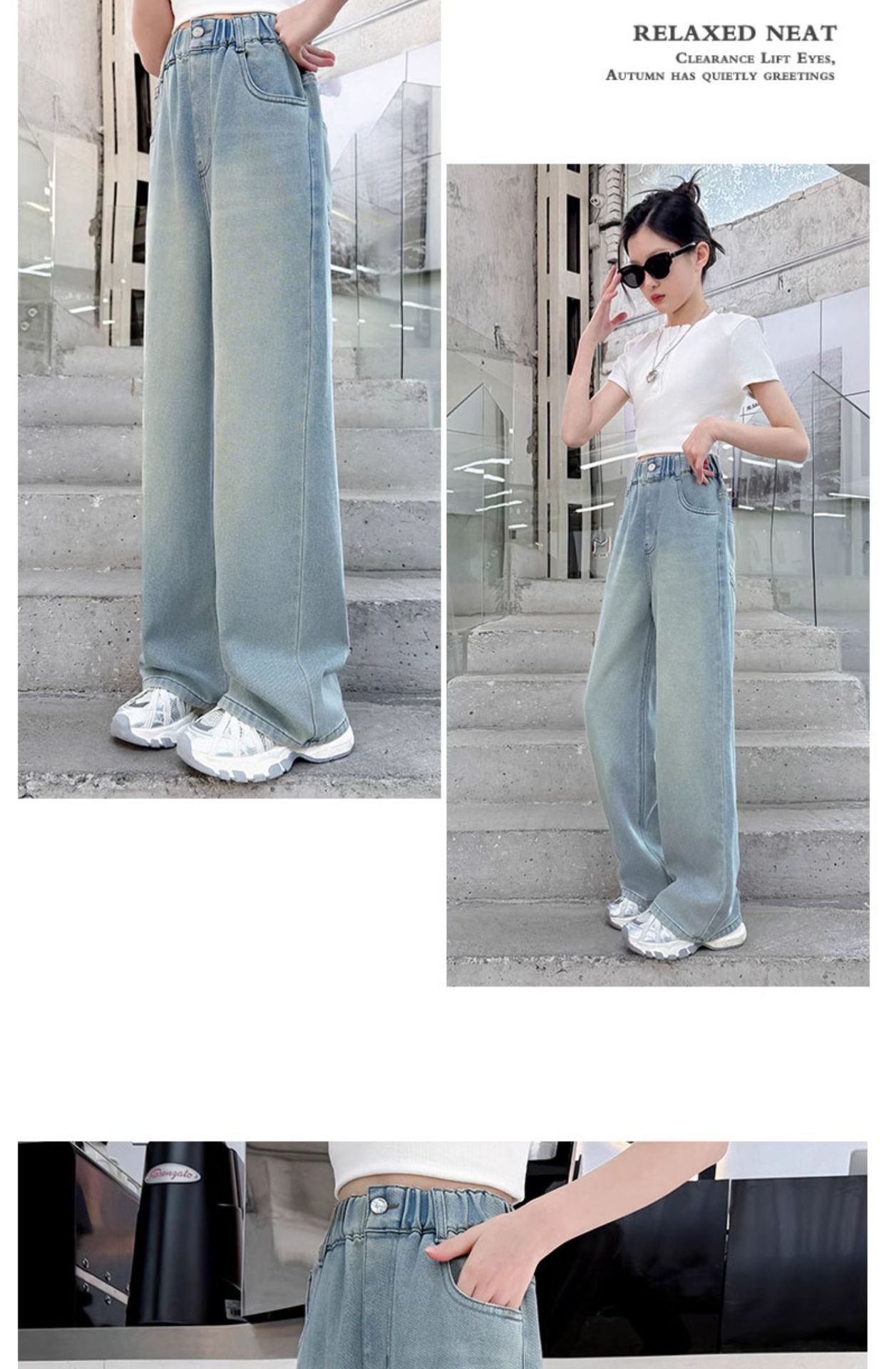 소녀 얇은 와이드 레그 바지 여름 2025 새로운 스타일 웨스턴 스타일 중학교 느슨한 바지 어린이 큰 어린이 여름 청바지스토어 가기