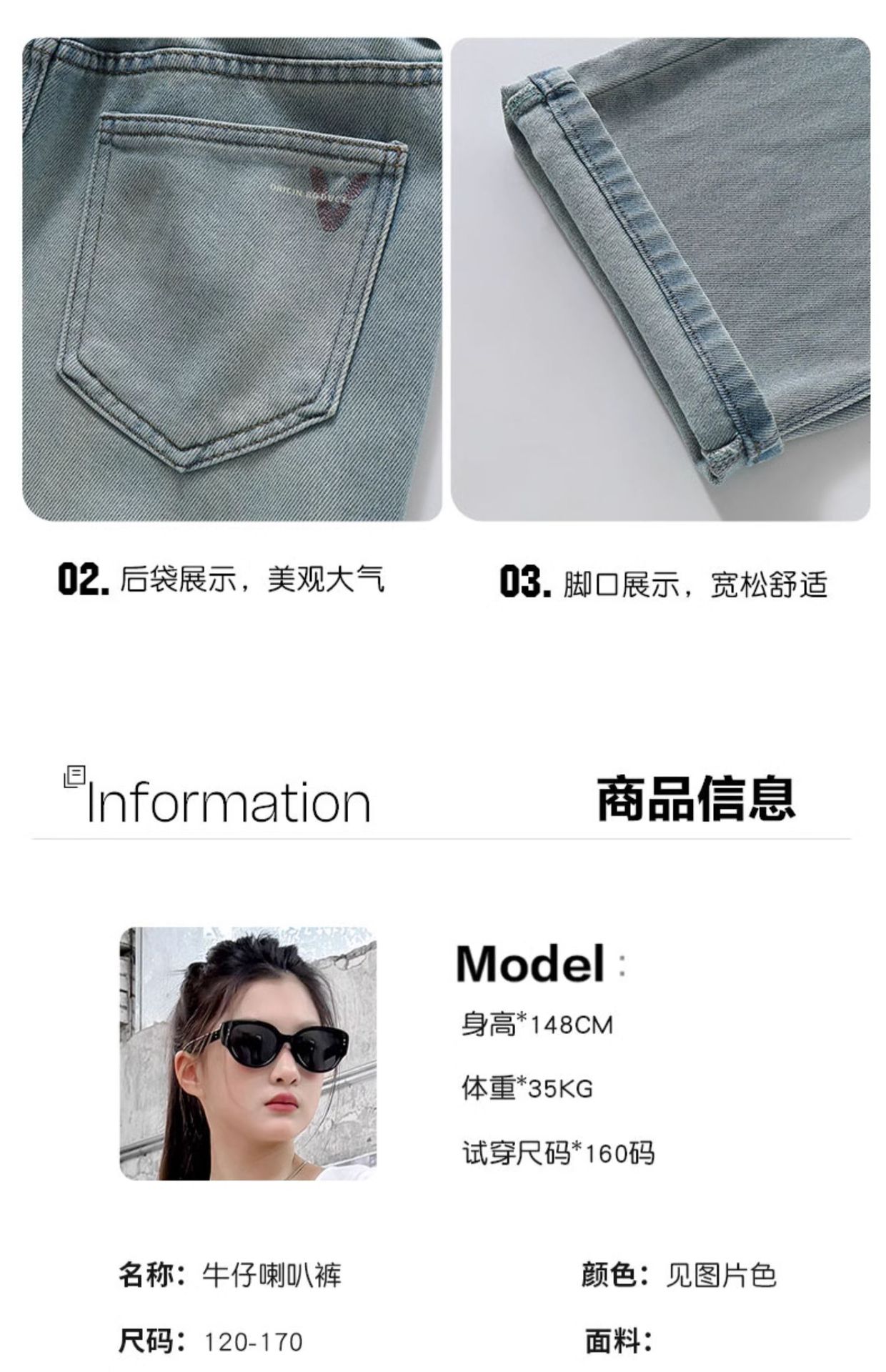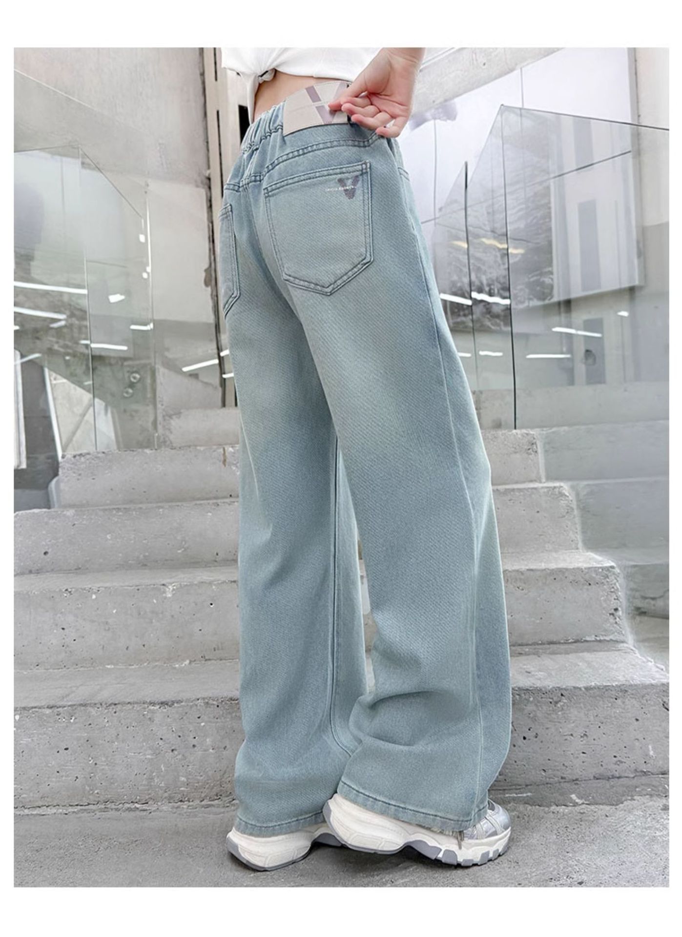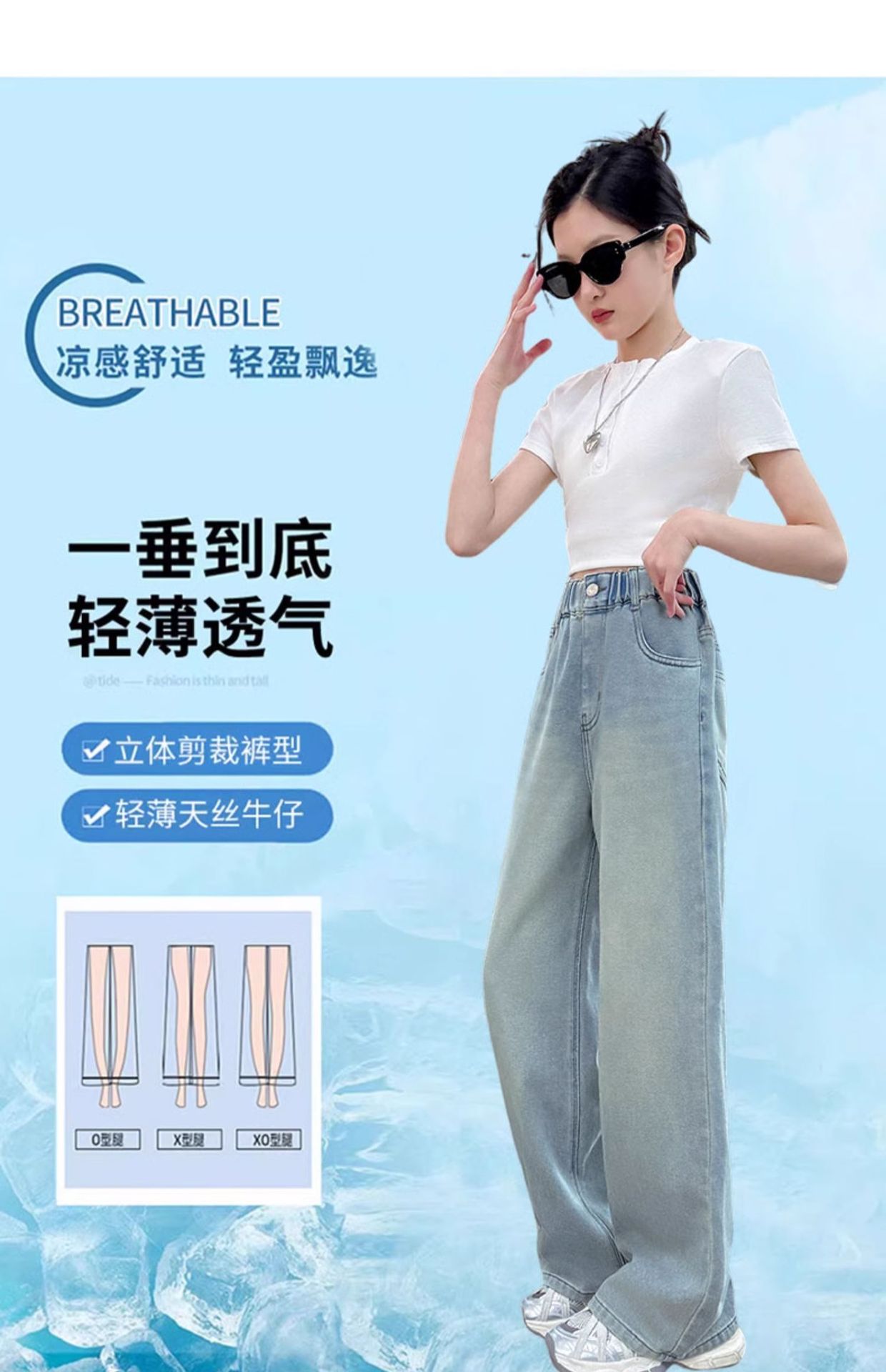 소녀 얇은 와이드 레그 바지 여름 2025 새로운 스타일 웨스턴 스타일 중학교 느슨한 바지 어린이 큰 어린이 여름 청바지