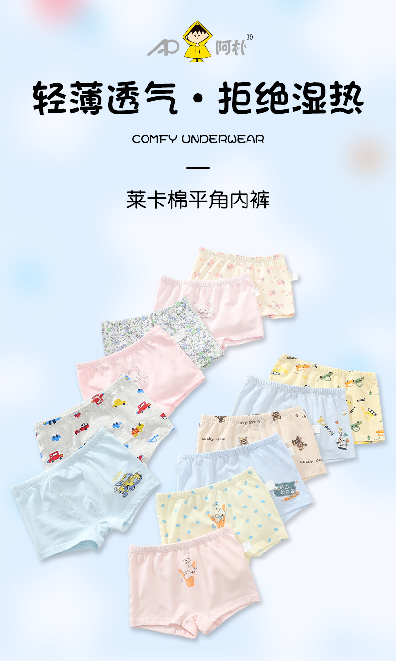 소년과 소녀를위한 국경 간 카테고리 A 속옷 여름 통기성 라이크라 코튼 복서 팬티 아기 3D 중대형 어린이 반바지 도매