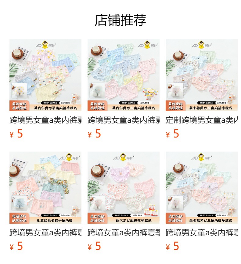 소년과 소녀를위한 국경 간 카테고리 A 속옷 여름 통기성 라이크라 코튼 복서 팬티 아기 3D 중대형 어린이 반바지 도매스토어 가기