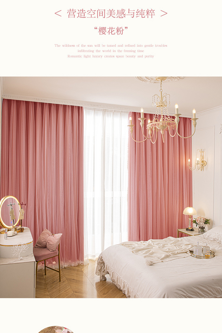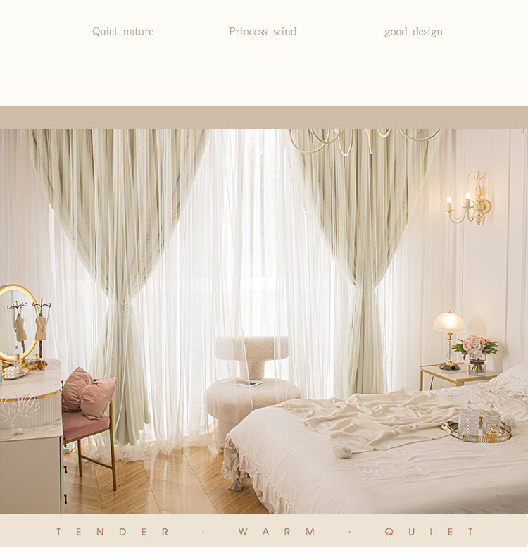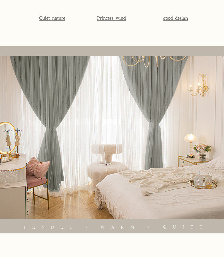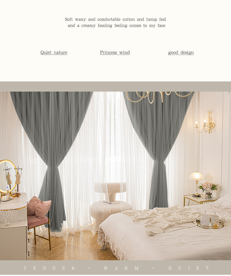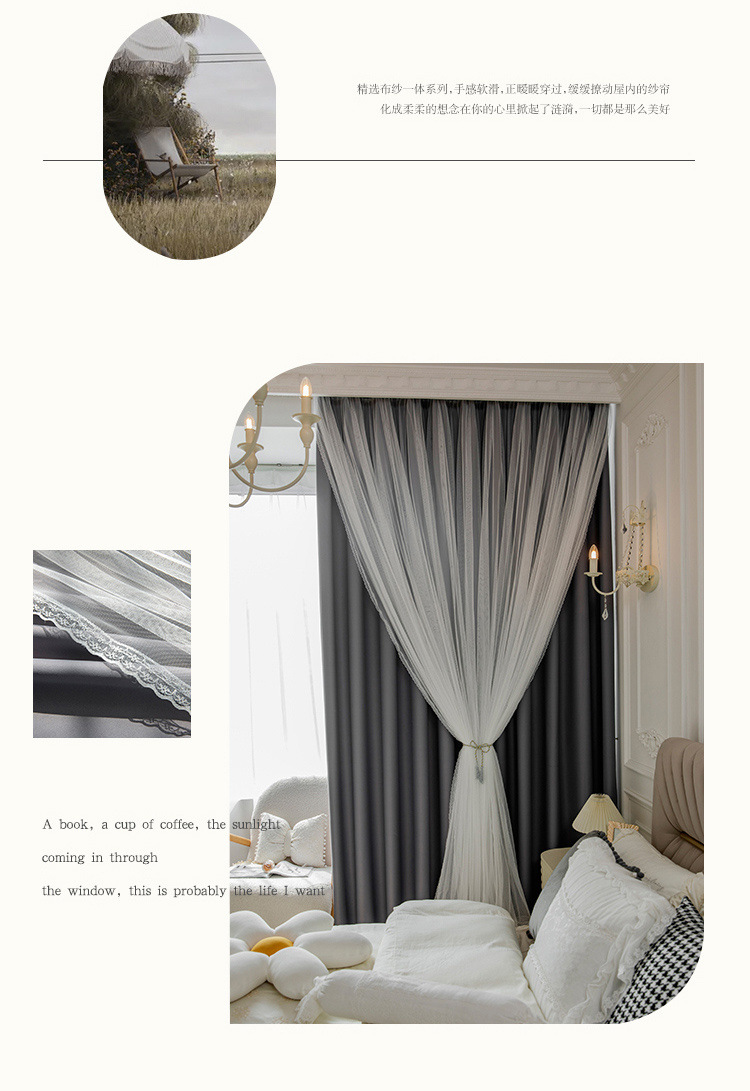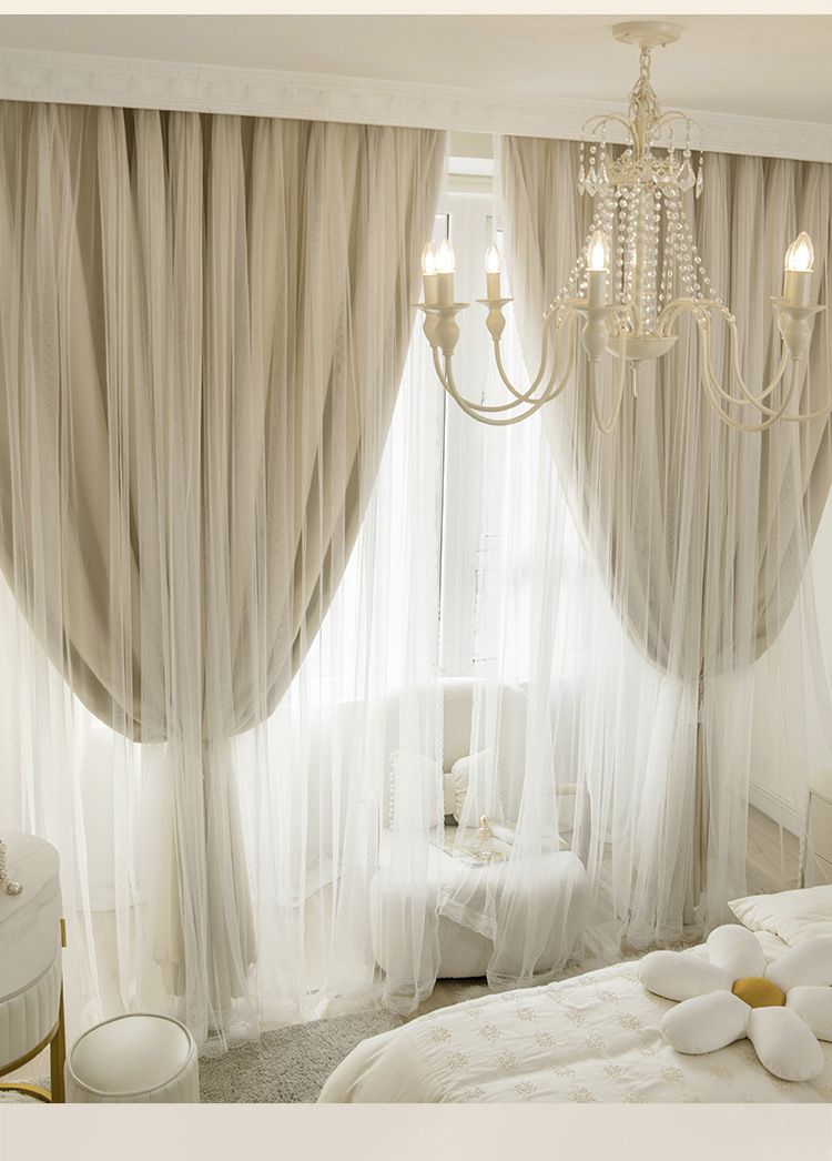 더블 레이어 블랙 아웃 커튼 소녀의 인터넷 인기있는 공주 스타일 천 원사 통합 침실 베이 창 2023 새로운 크림 스타일스토어 가기