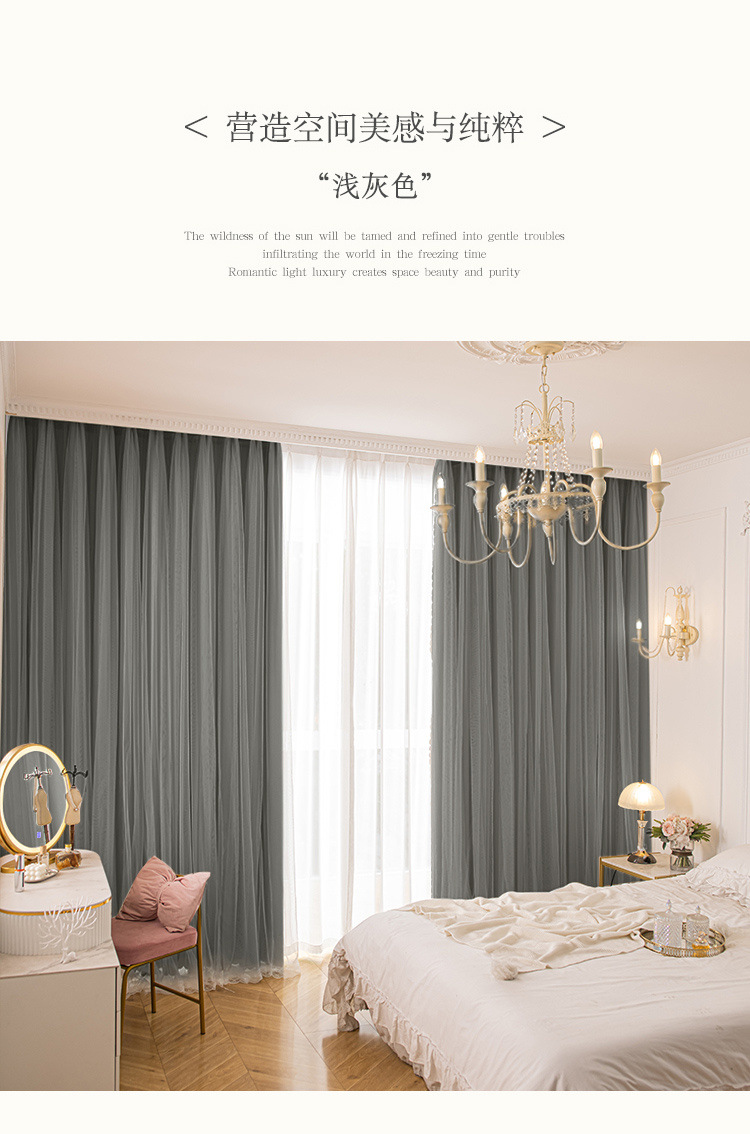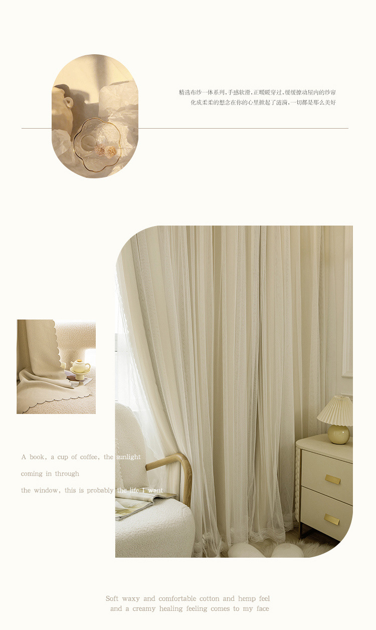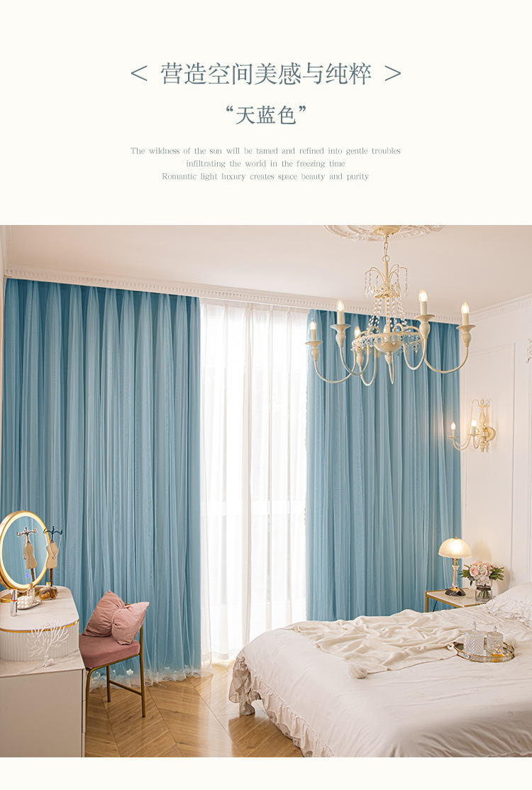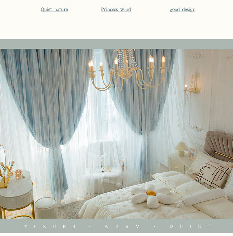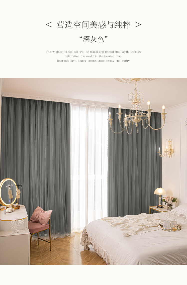 더블 레이어 블랙 아웃 커튼 소녀의 인터넷 인기있는 공주 스타일 천 원사 통합 침실 베이 창 2023 새로운 크림 스타일스토어 가기