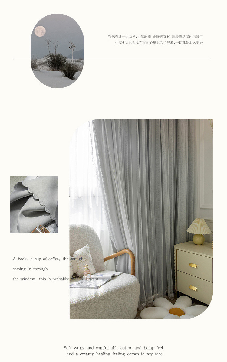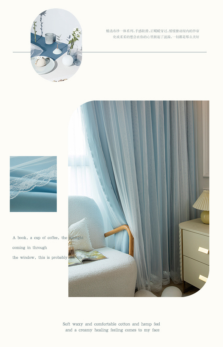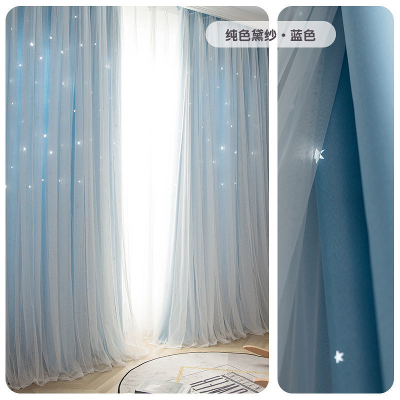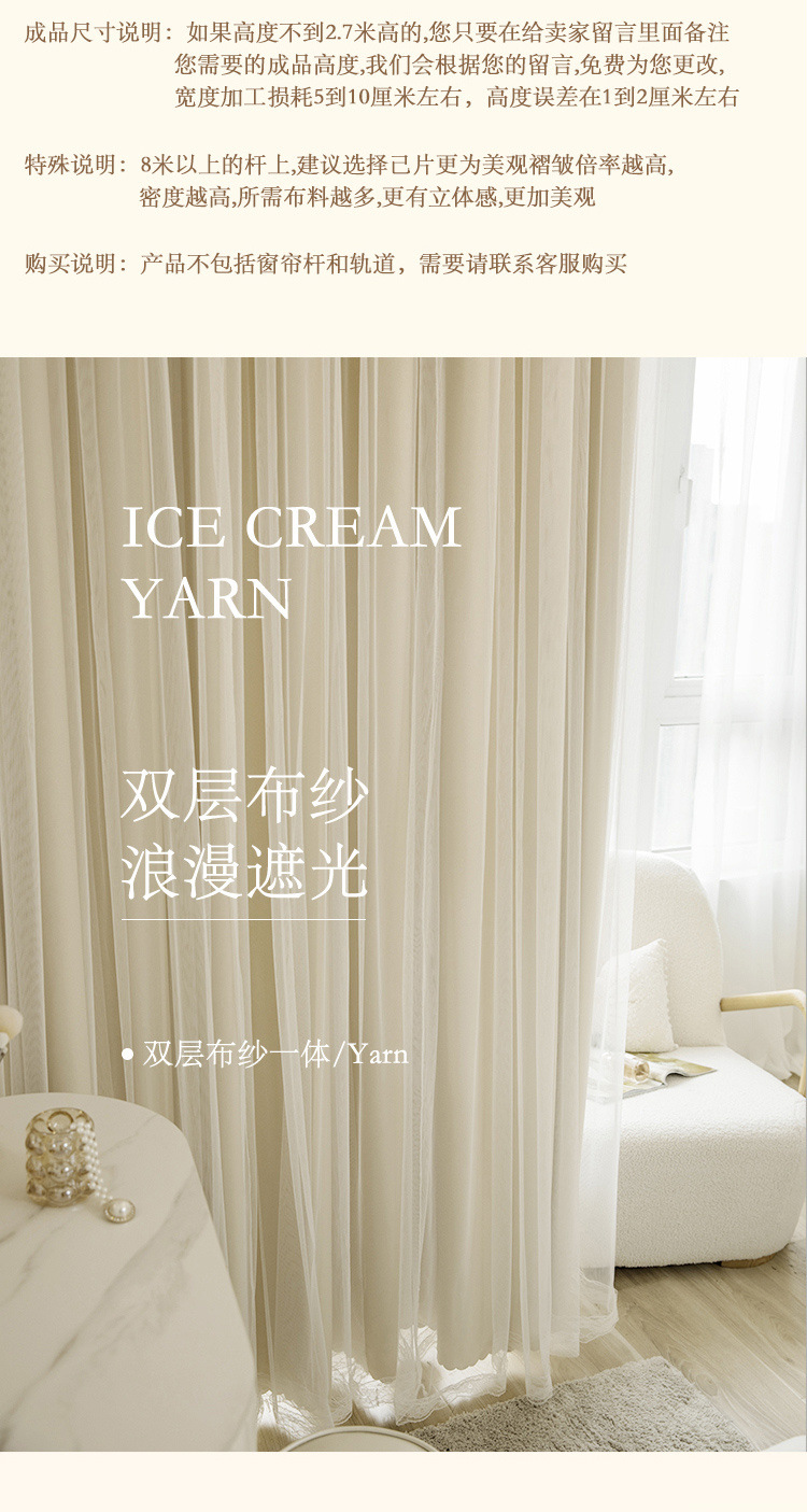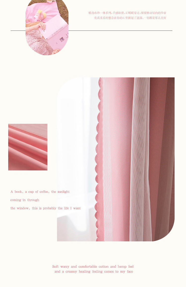 더블 레이어 블랙 아웃 커튼 소녀의 인터넷 인기있는 공주 스타일 천 원사 통합 침실 베이 창 2023 새로운 크림 스타일스토어 가기