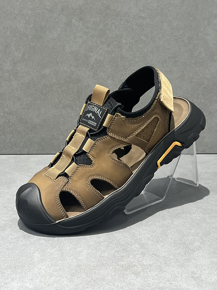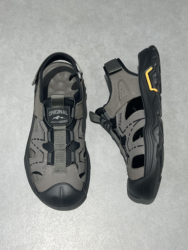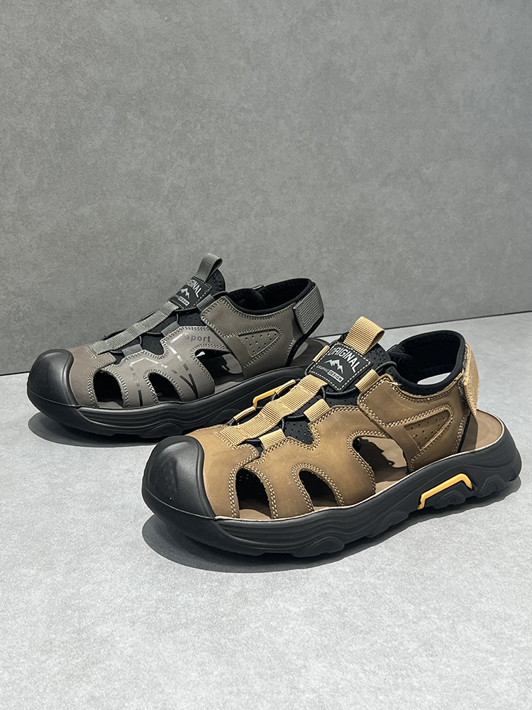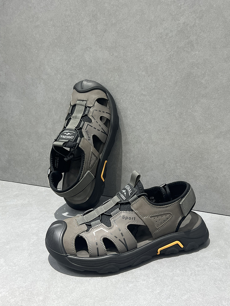남성용 샌들 2025 여름 신형 바오터우 샌들 두꺼운 단독 캐주얼 통풍 캐주얼 신발 야외 캐주얼 비치 슈즈