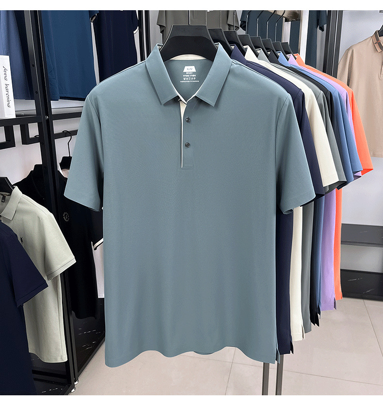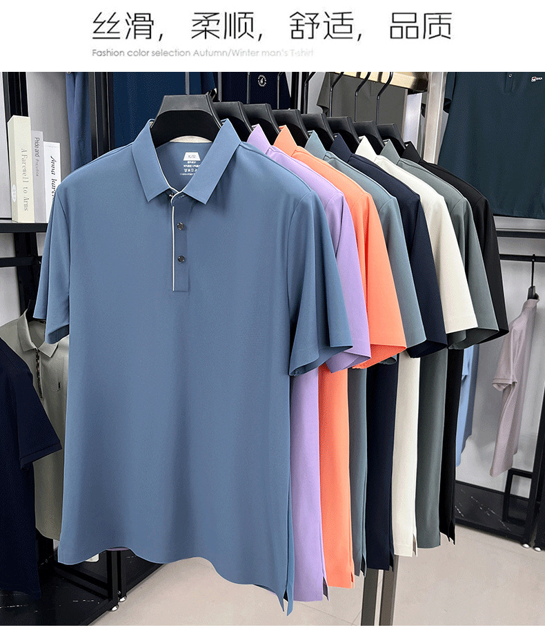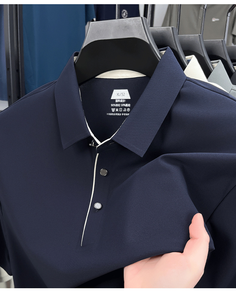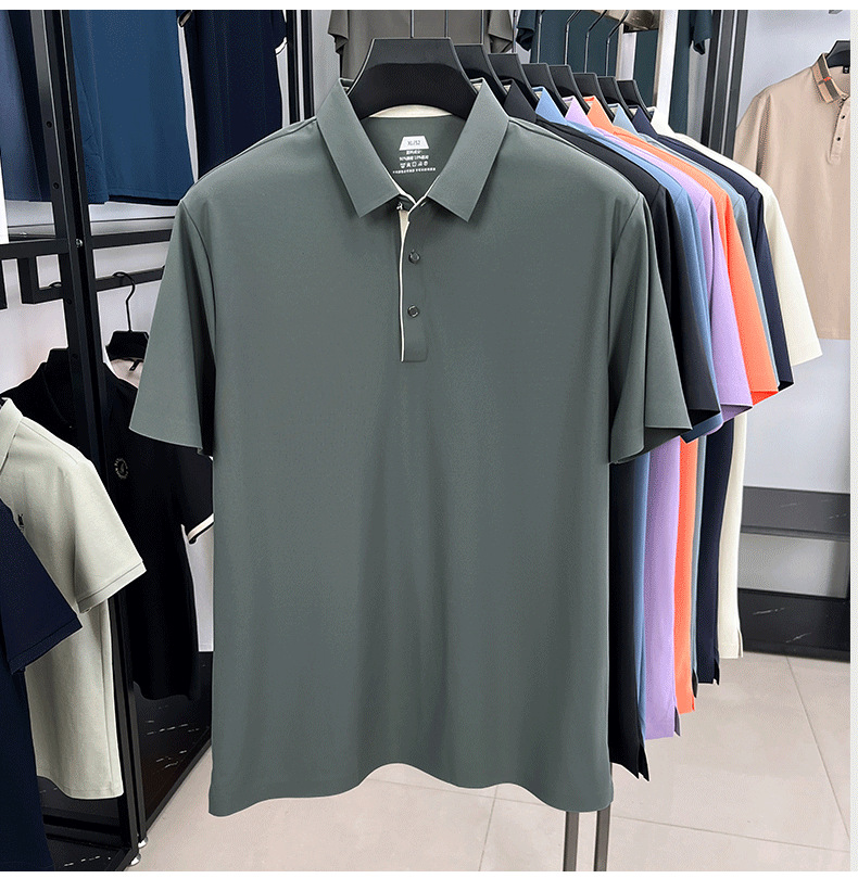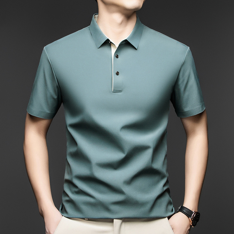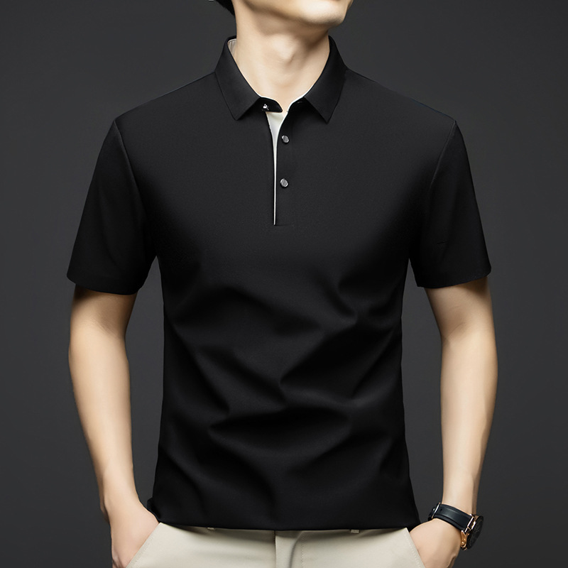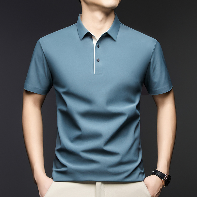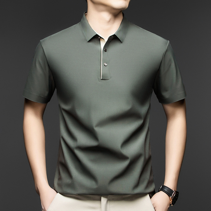 2025夏季男士无痕休闲T恤高品质高弹力简约轻奢男装冰丝仿衬衫领