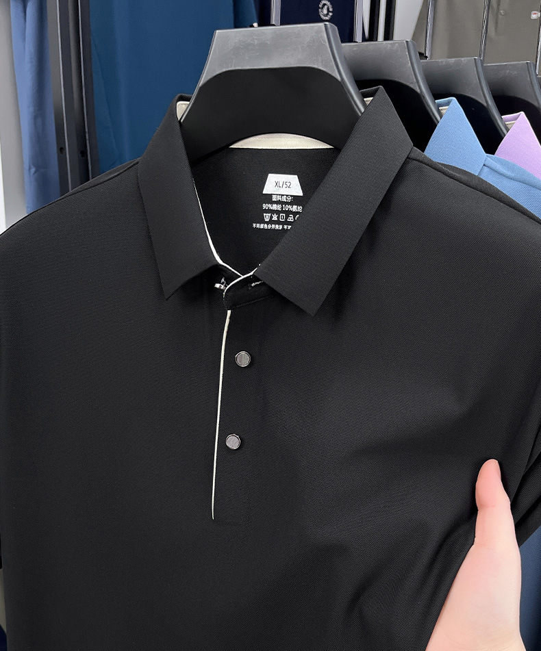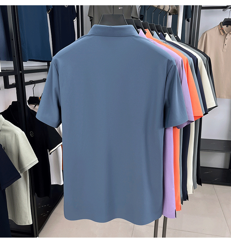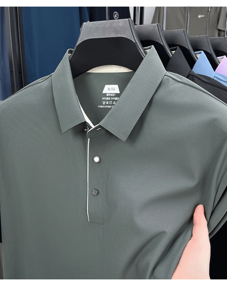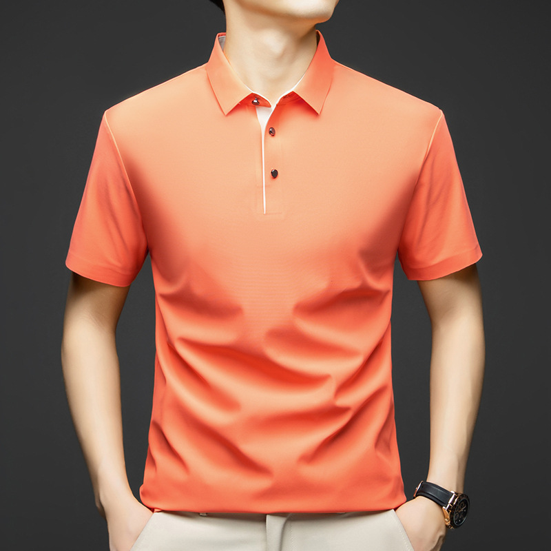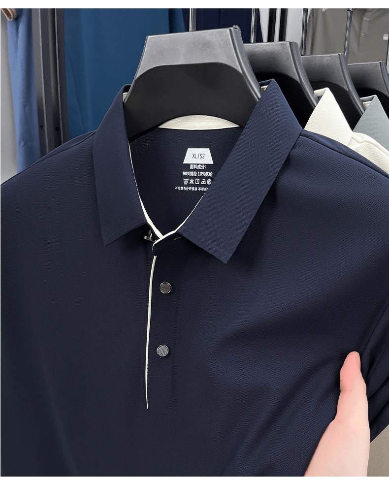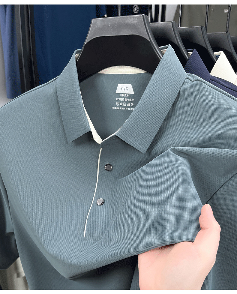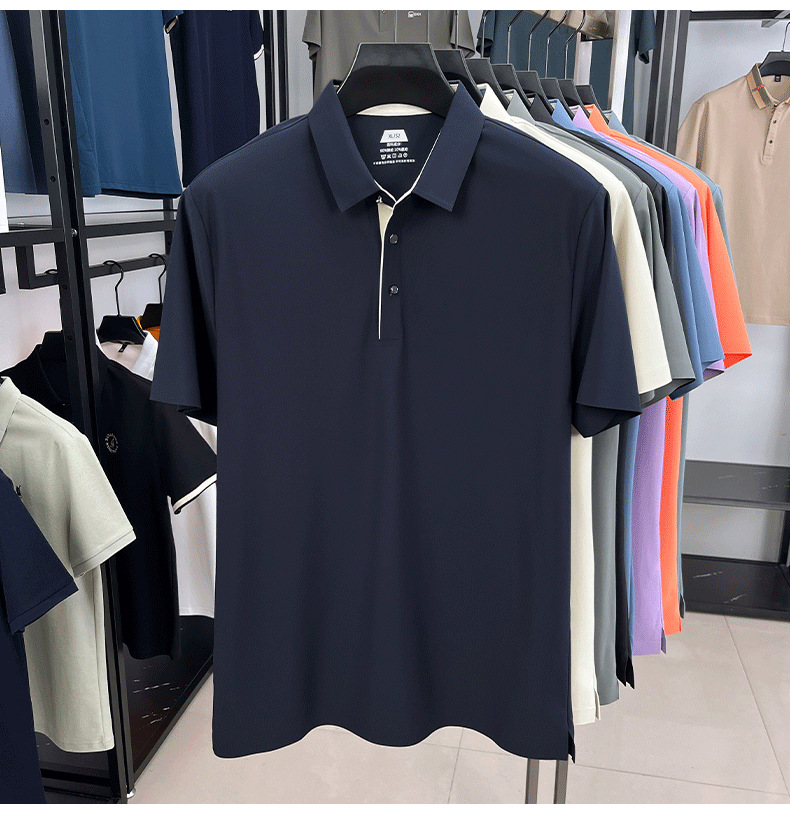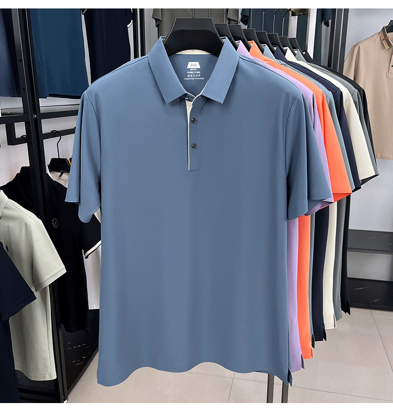 2025夏季男士无痕休闲T恤高品质高弹力简约轻奢男装冰丝仿衬衫领