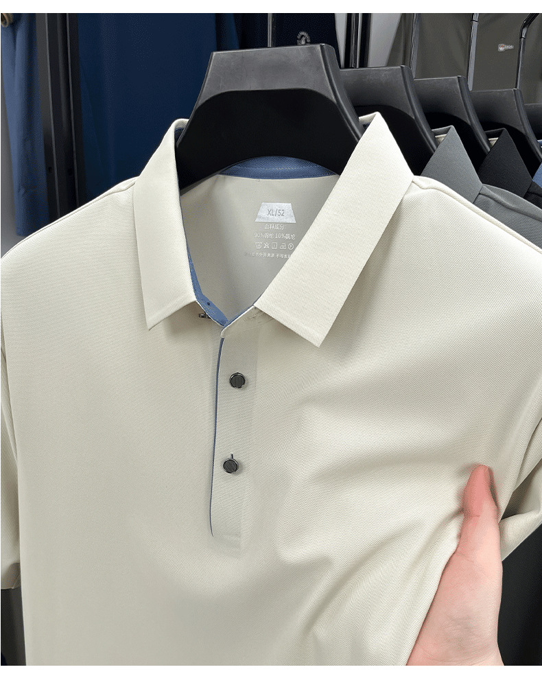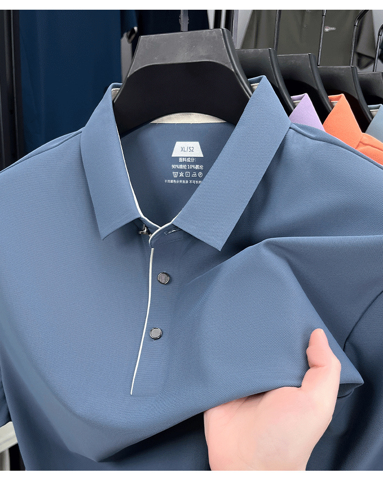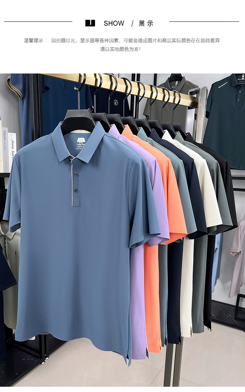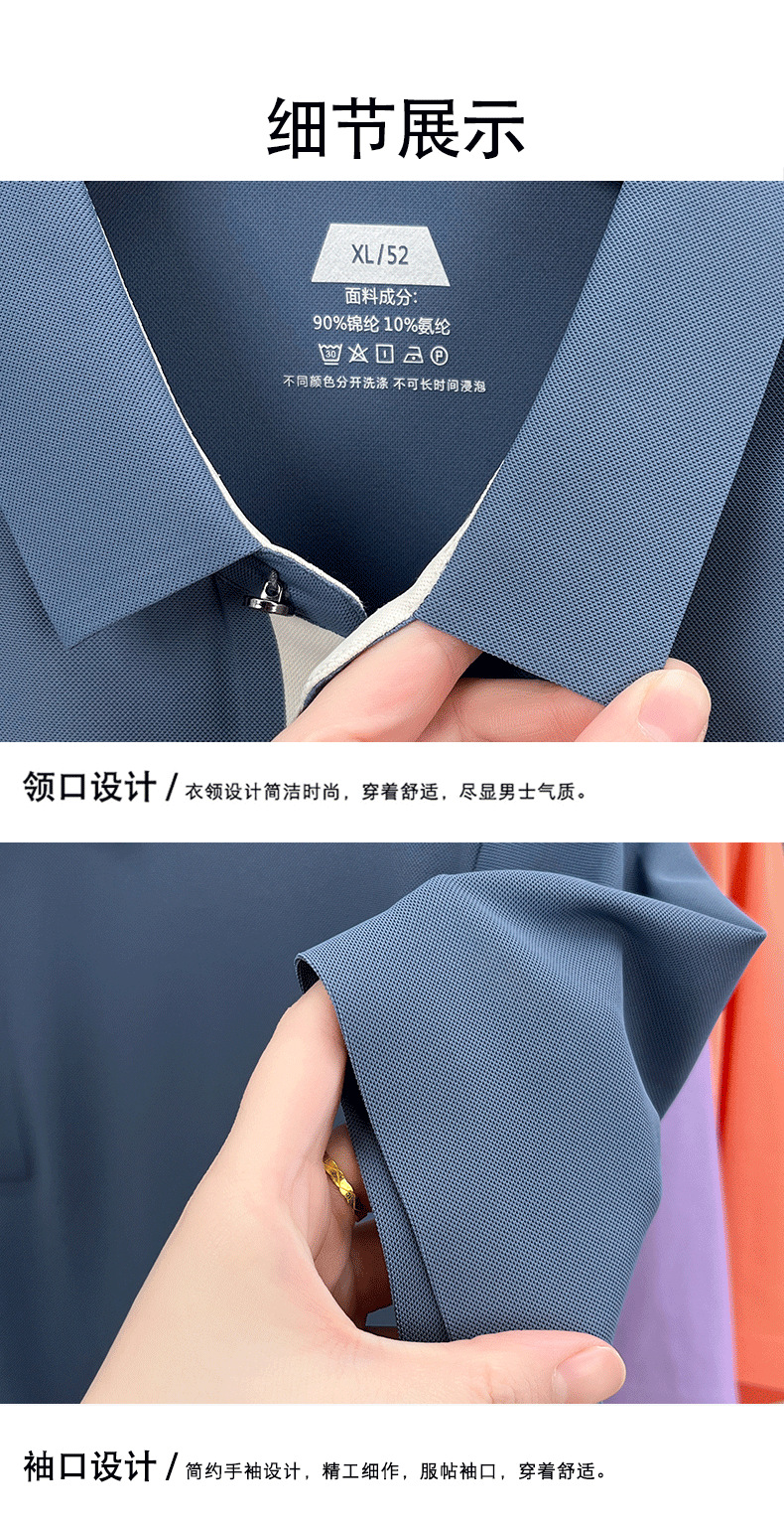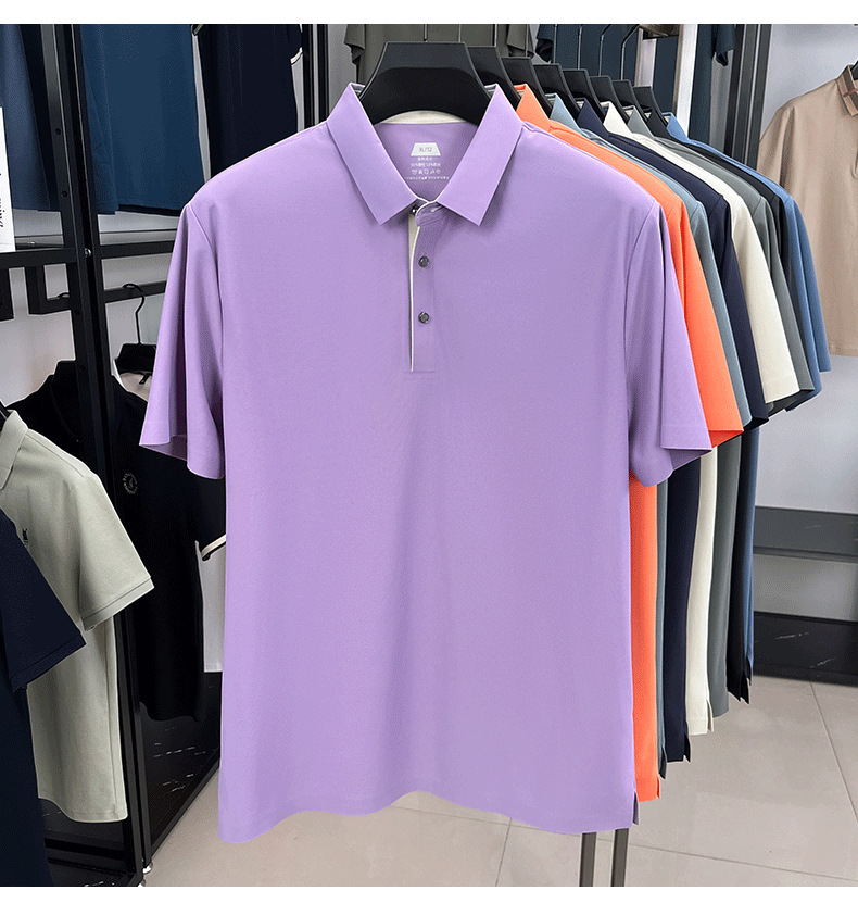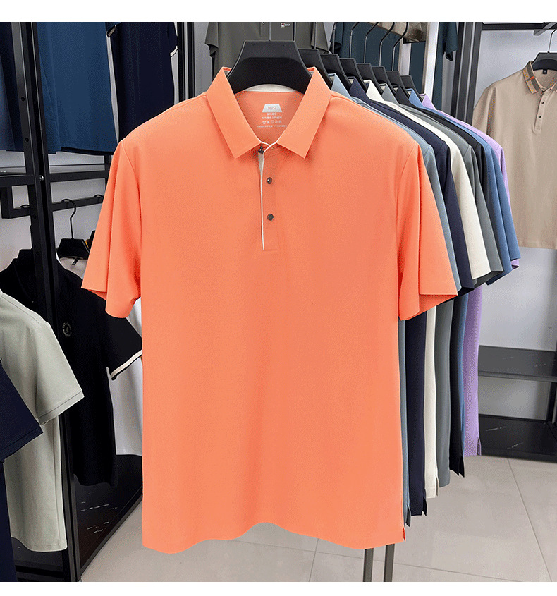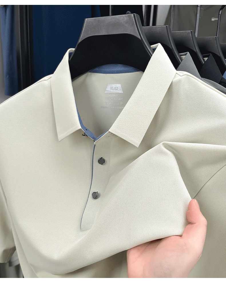 2025夏季男士无痕休闲T恤高品质高弹力简约轻奢男装冰丝仿衬衫领