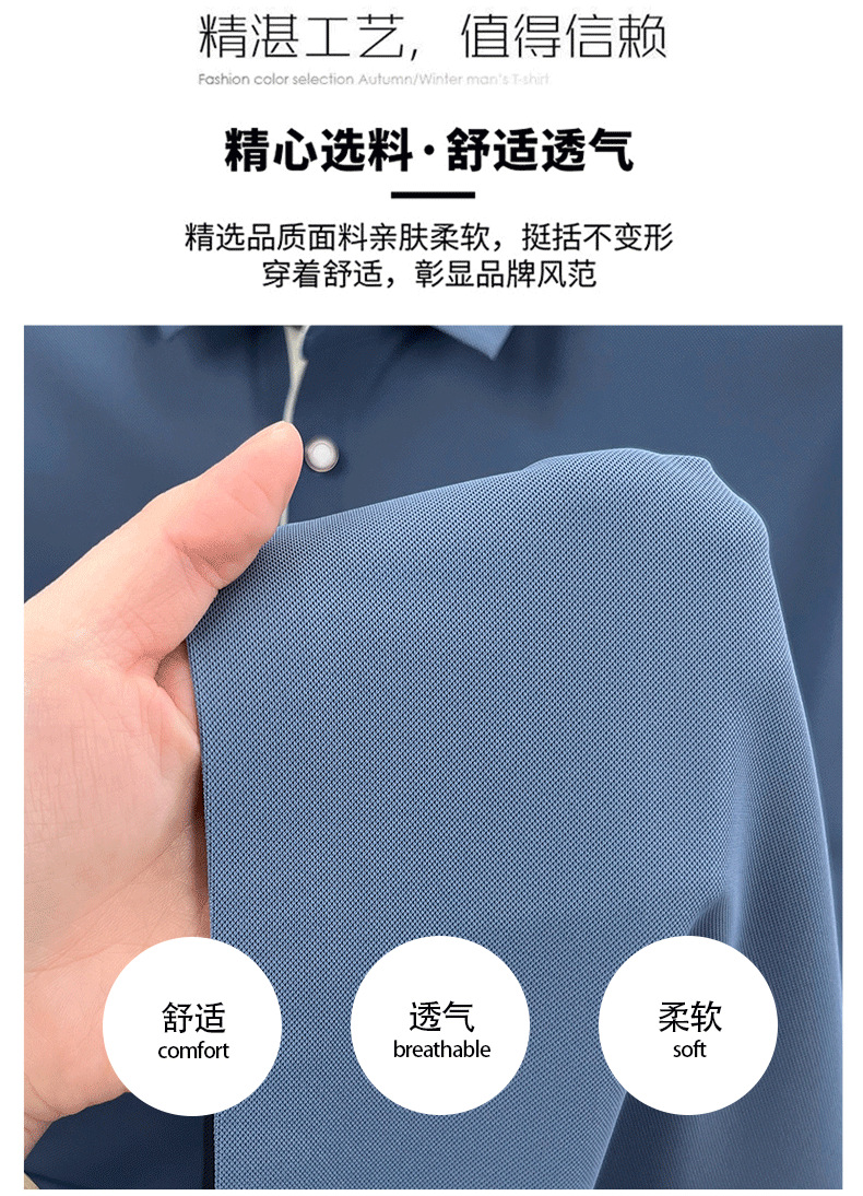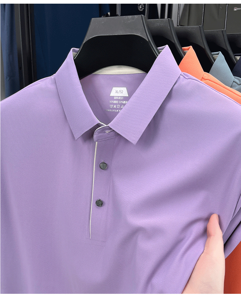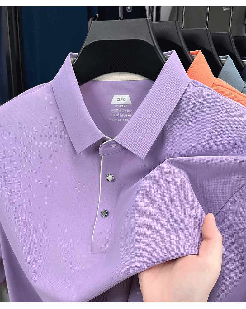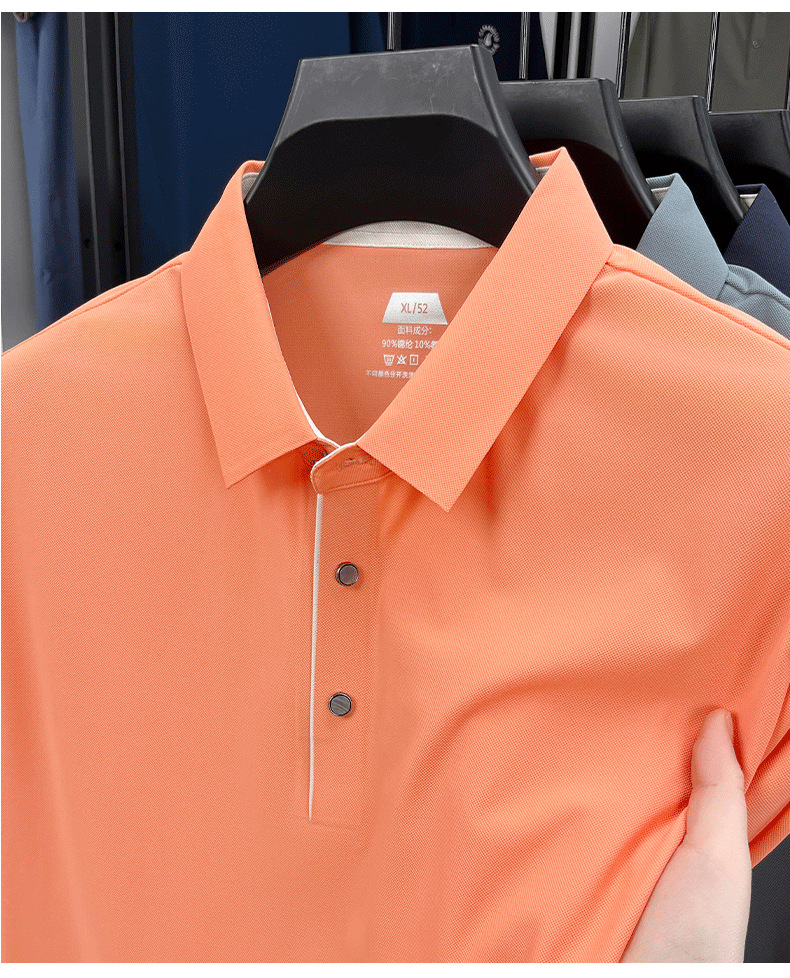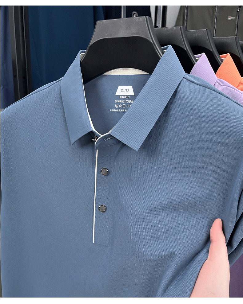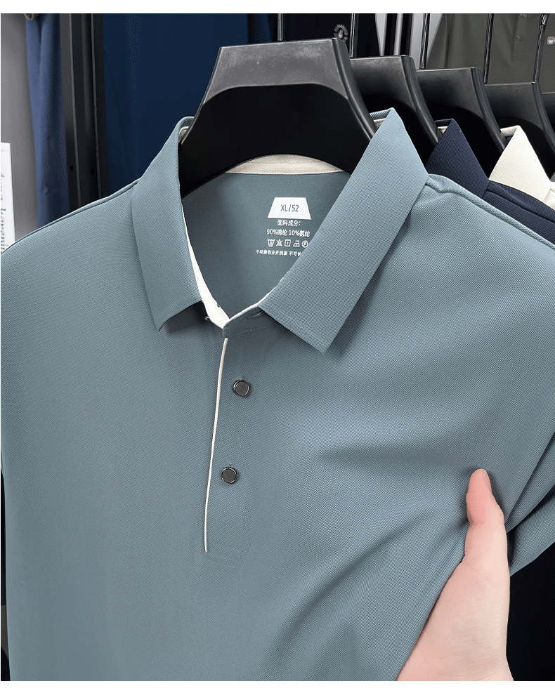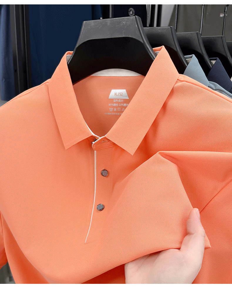 2025夏季男士无痕休闲T恤高品质高弹力简约轻奢男装冰丝仿衬衫领