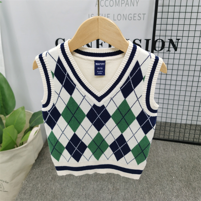 소년 니트 조끼 가을, 겨울 새로운 어린이 대학 스타일 아기 V 넥 풀오버 바닥 스웨터 조끼스토어 가기