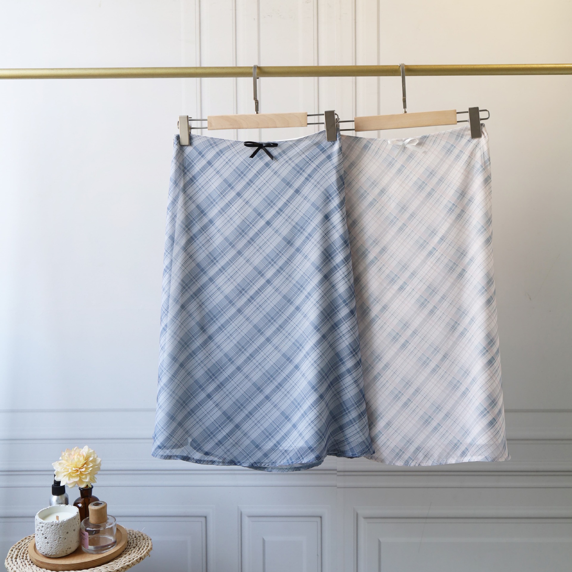 대외 무역 국경 간 한국 세련된 프랑스 레트로 높은 허리 대비 격자 무늬 엉덩이 스커트 여성 여름 스커트스토어 가기