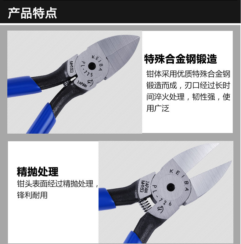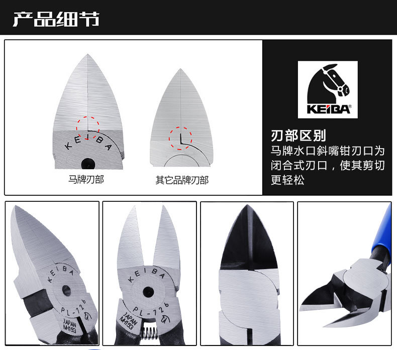 오리지널 정품 일본 KEIBA 말 브랜드 PL-726/725/727 정밀 물 입 펜치 5 인치 플라스틱 특수 절단 펜치스토어 가기