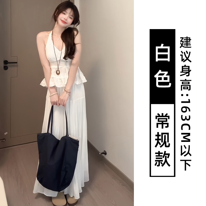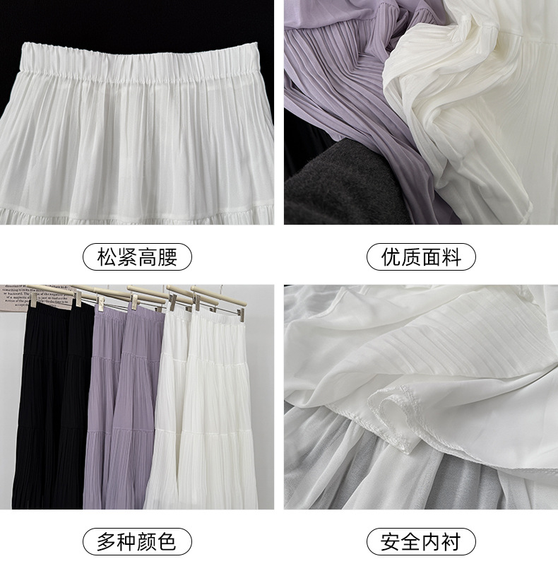 화이트 페어리 스커트 여성의 여름 새로운 하이 엔드 플리츠 투투 스커트 중간 길이 하이 웨이스트 A 라인 케이크 스커트
