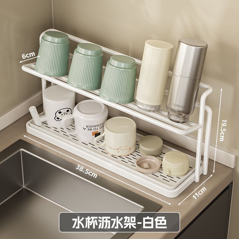 범용 주방 보관함, 계층형 컵, 보온병, 찻잔 보관함, 이중층 배수 트레이 랙, 제조업체 직접 배송스토어 가기