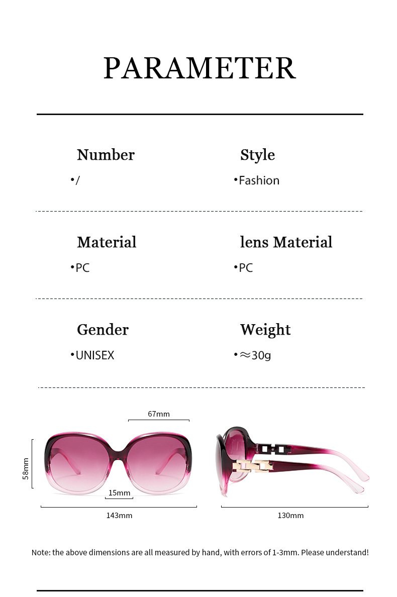 대형 프레임 여성 체인 장식 슬림 선글라스 국경 그라디언트 패션 우아한 선글라스 새로운 패션 안경