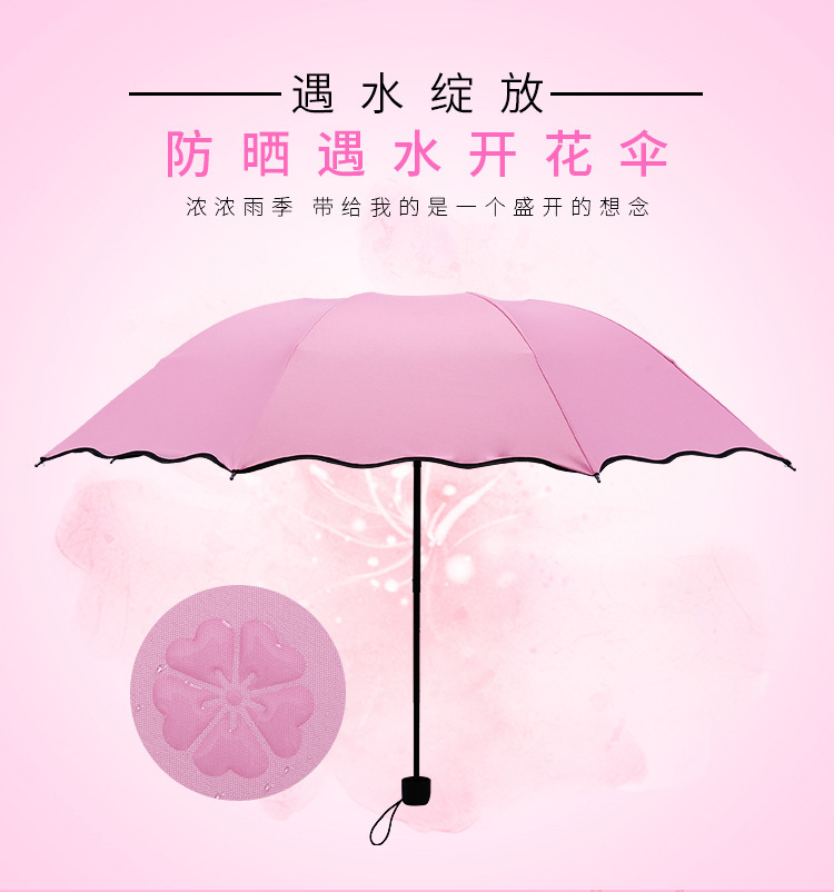 광고 태양 보호 태양 우산 접는 70% off 태양 그늘 도매 물에 노출되면 꽃을 피우는 태양 우산 인쇄 로고 선물 우산