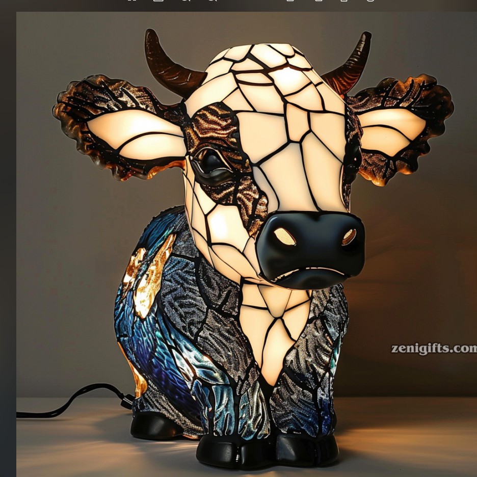 국경 새로운 송아지 동물 테이블 램프 창조적 인 수지 홈 침대 옆 빛나는 암소 헤드 테이블 램프 장식품스토어 가기