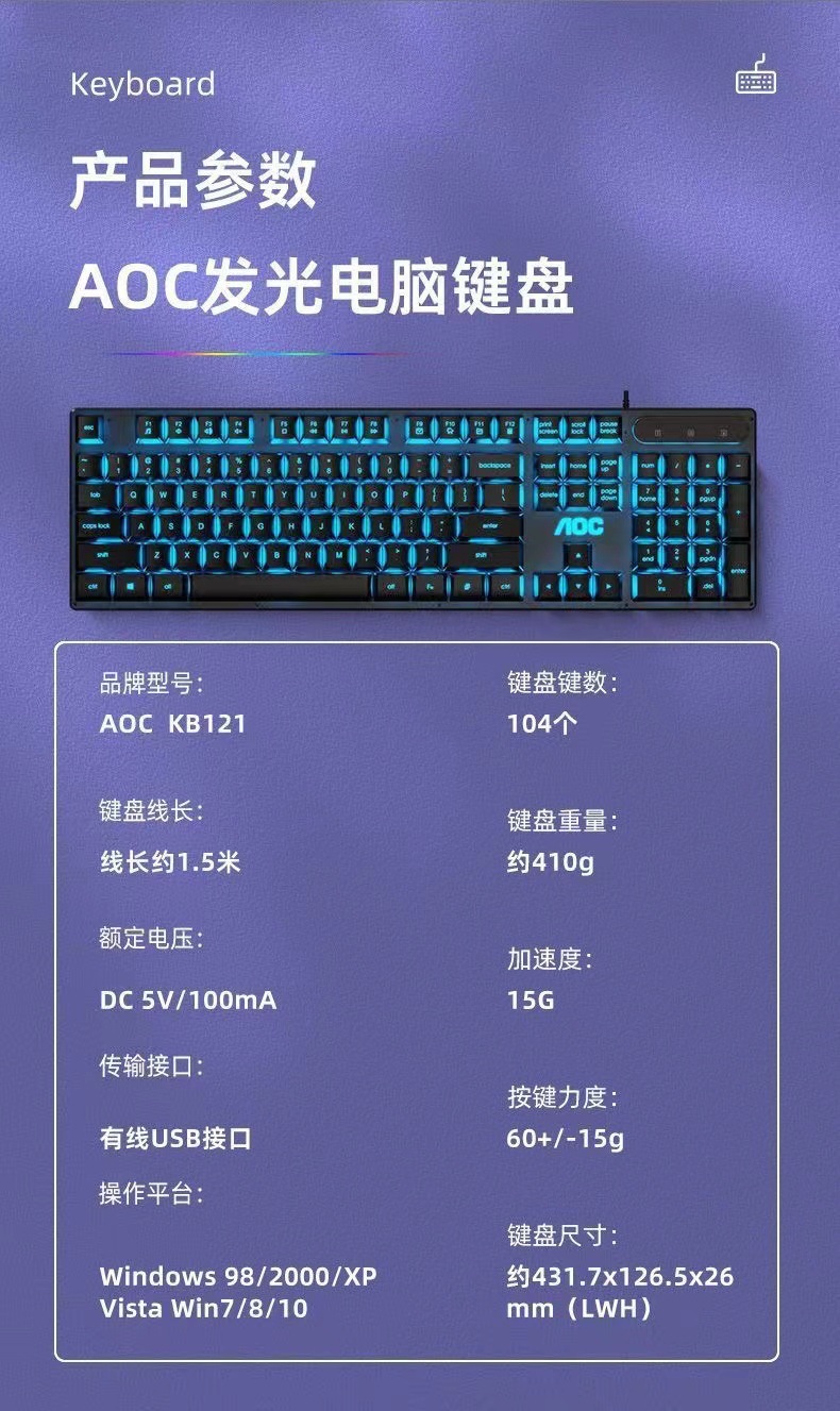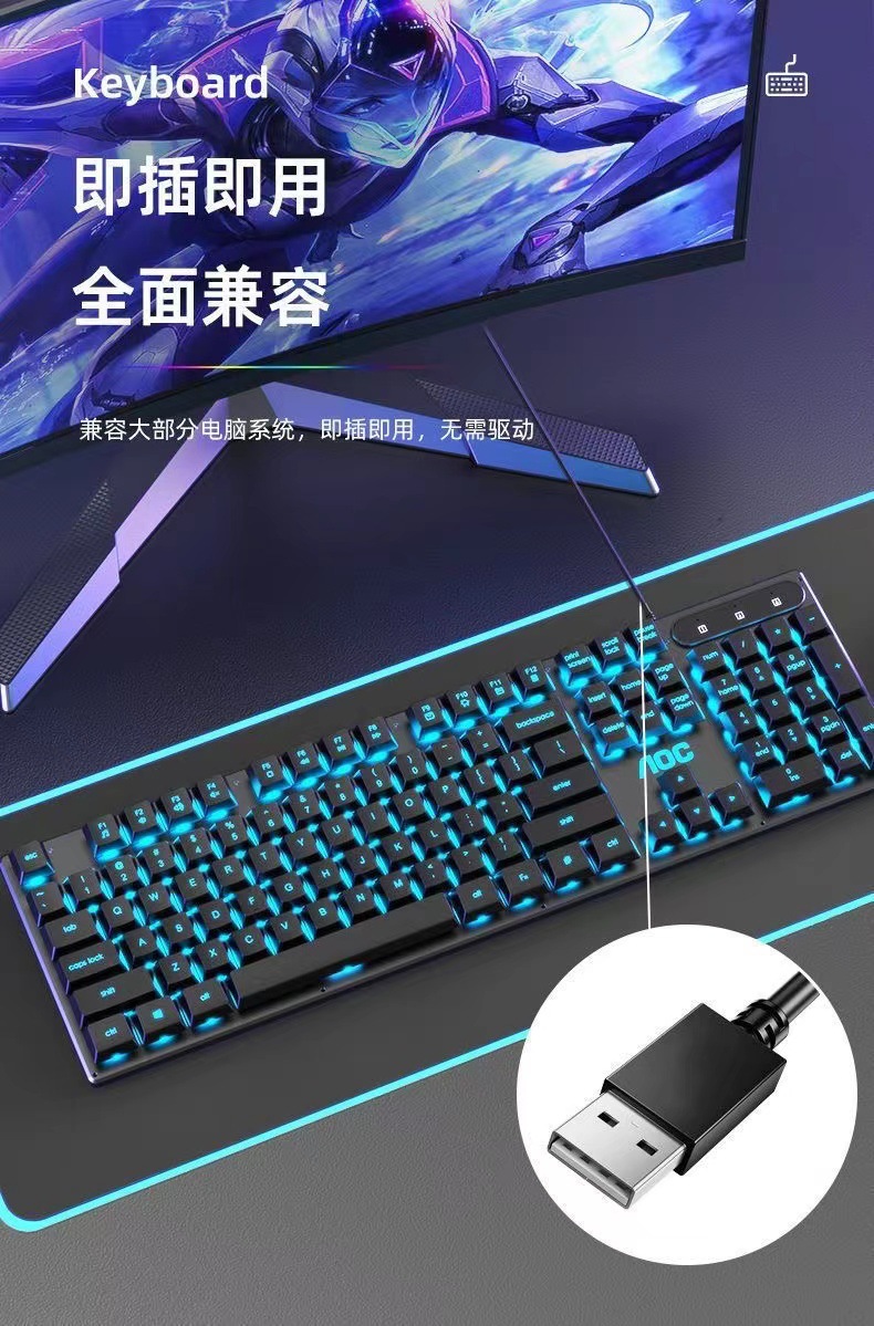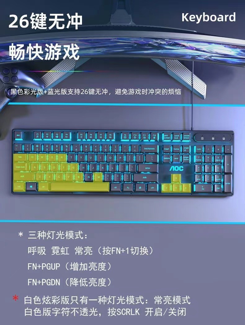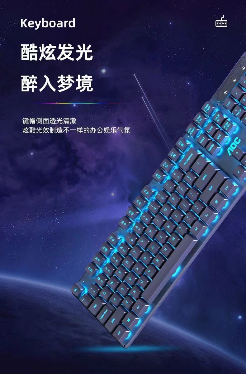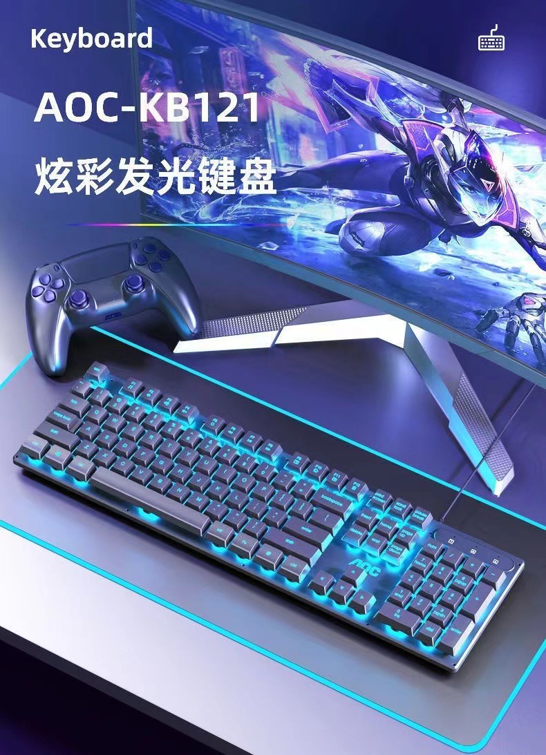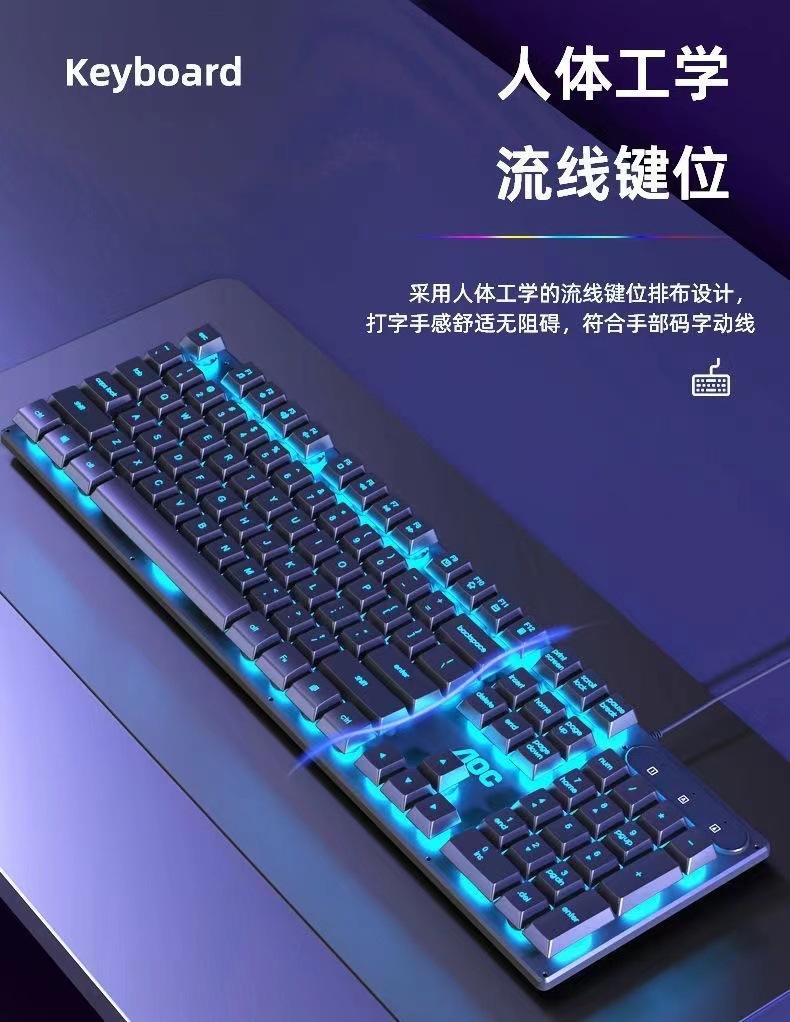 AOCKB121 키보드 마우스 세트 발광 기계식 느낌 키보드 USB 유선 무소음 데스크탑 컴퓨터 노트북