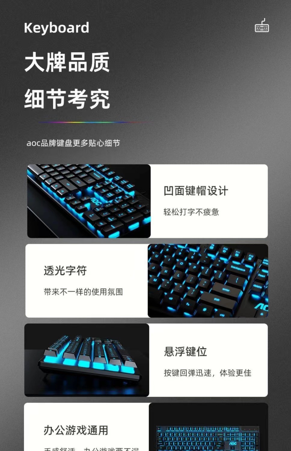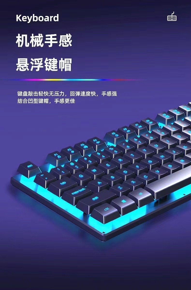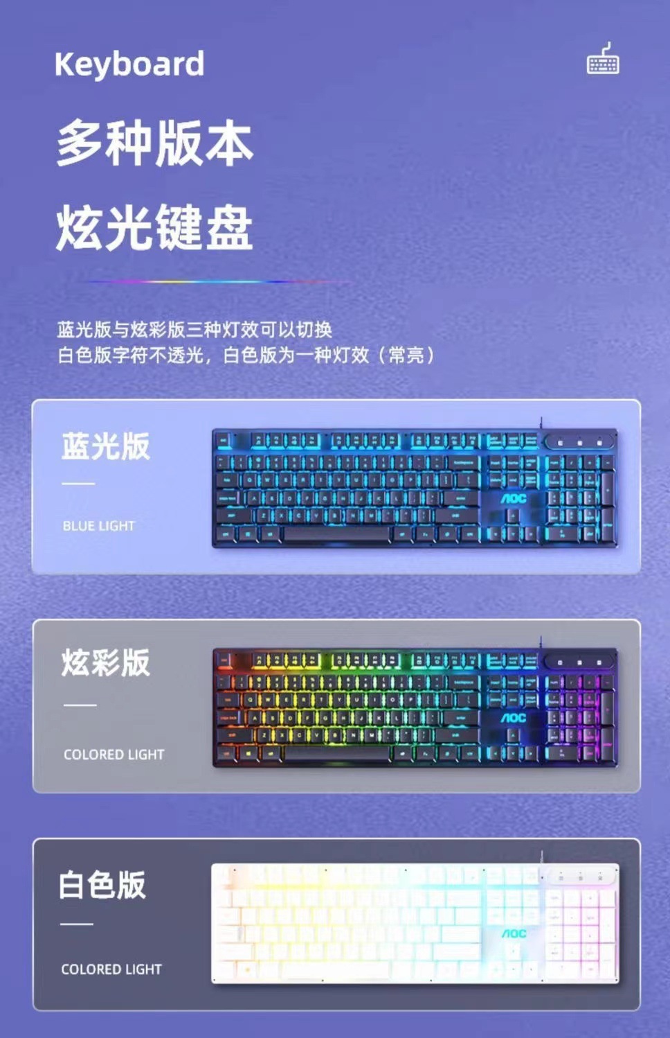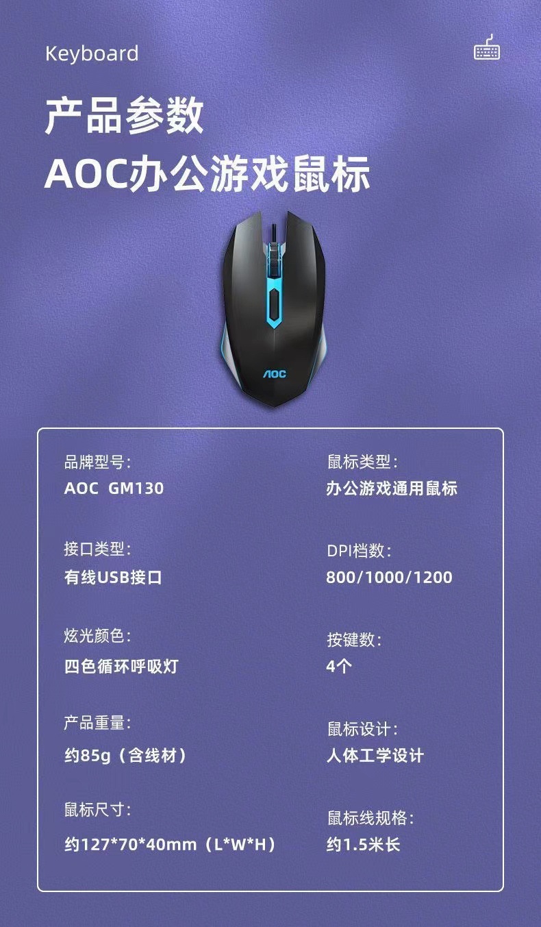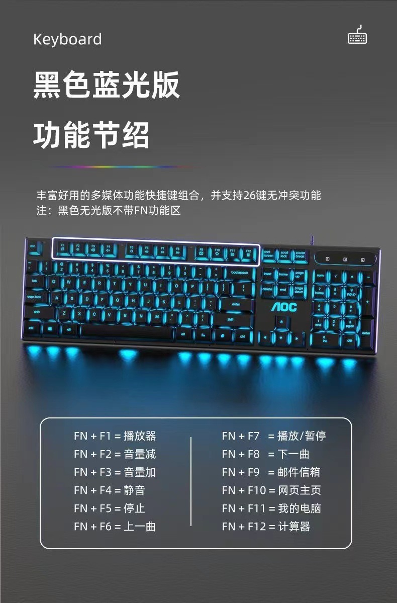 AOCKB121 키보드 마우스 세트 발광 기계식 느낌 키보드 USB 유선 무소음 데스크탑 컴퓨터 노트북
