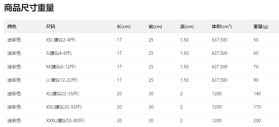 背长,胸围和脖围单位是 CM,