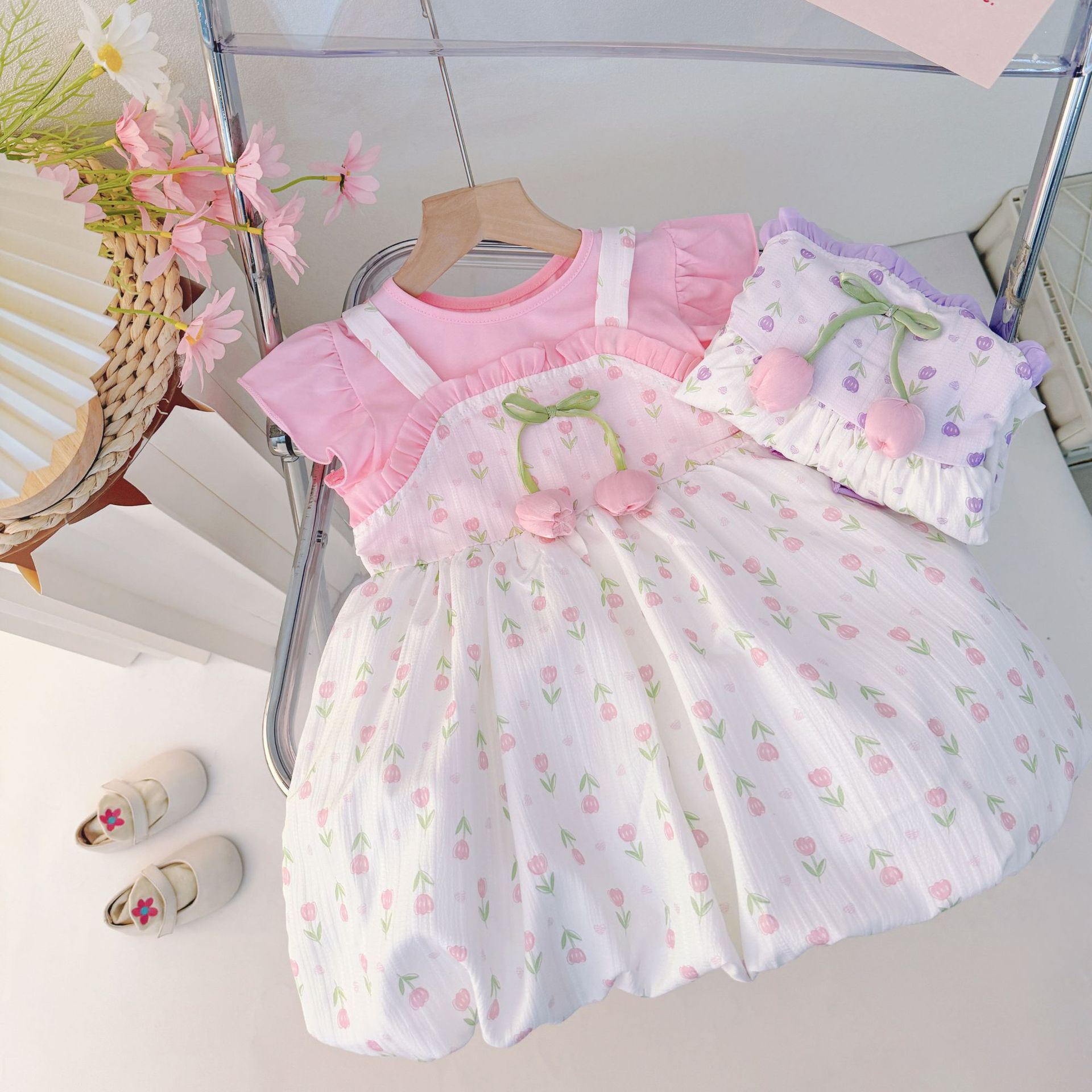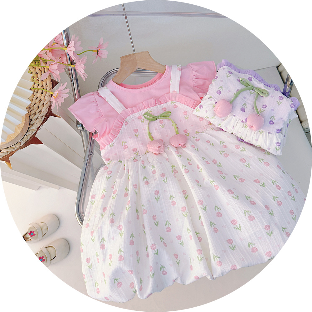아기 소녀 2025 새로운 귀여운 캐주얼 얇은 여름 세트 아기 소녀 서양식 전체 인쇄 작은 꽃 치마스토어 가기