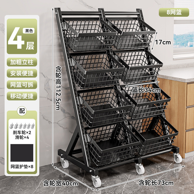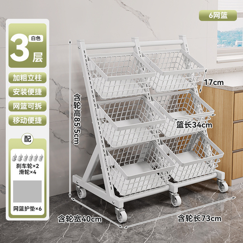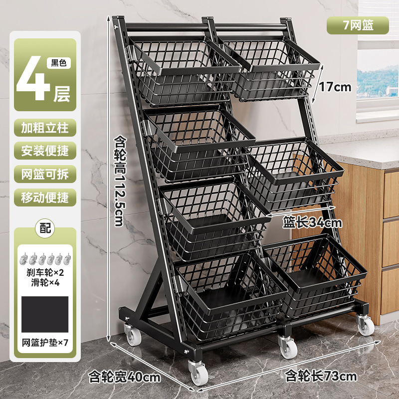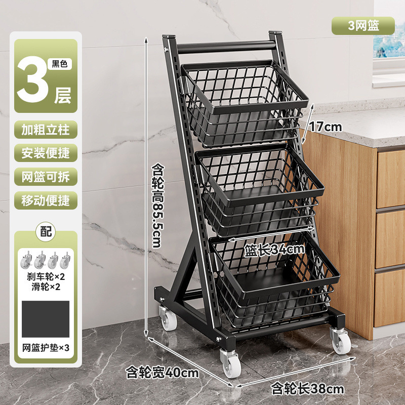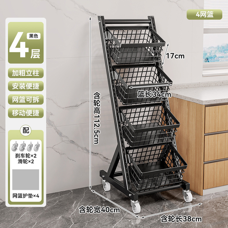 주방 보관 선반 바닥 다층 야채 및 과일 다기능 야채 바구니 거실 스낵 보관 랙 바퀴