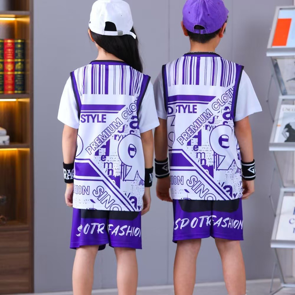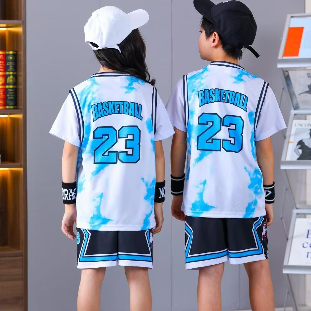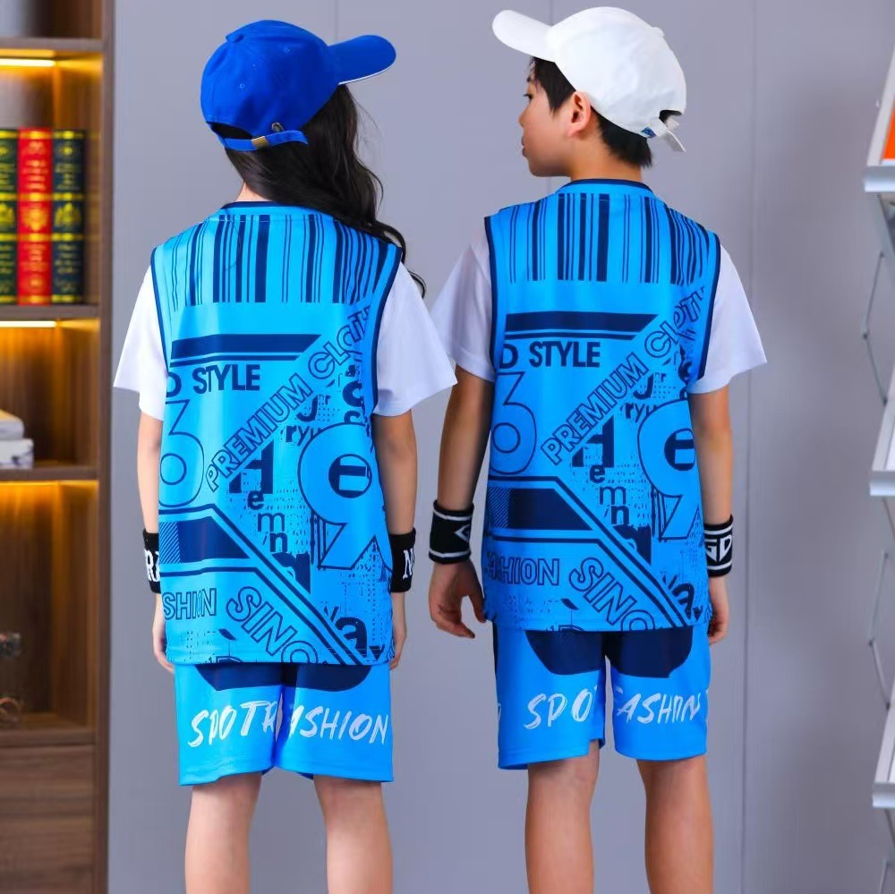 어린이 농구 유니폼 세트 훈련 캠프 초등학생 반팔 스포츠 농구 게임 유니폼 조끼 인쇄 번호 공동 구매