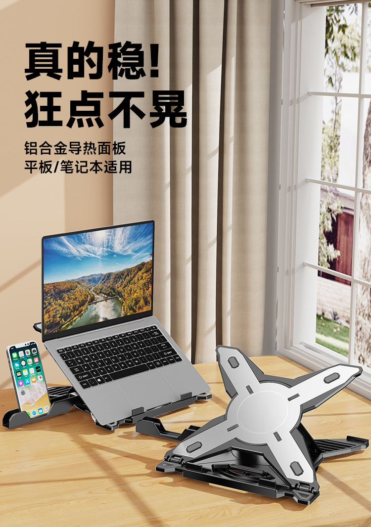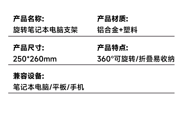 노트북 스탠드 360도 회전 및 높이 조절 알루미늄 합금 패널 냉각 랙 데스크탑 다단계 조정 및 확장