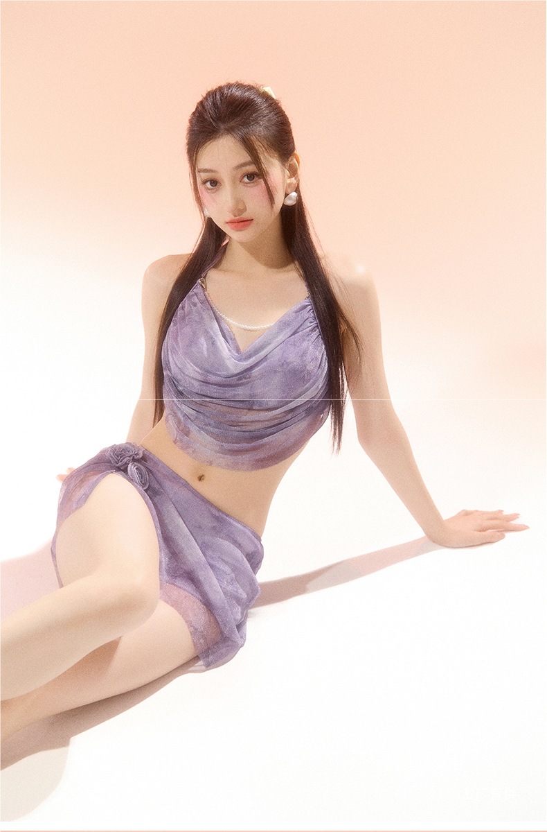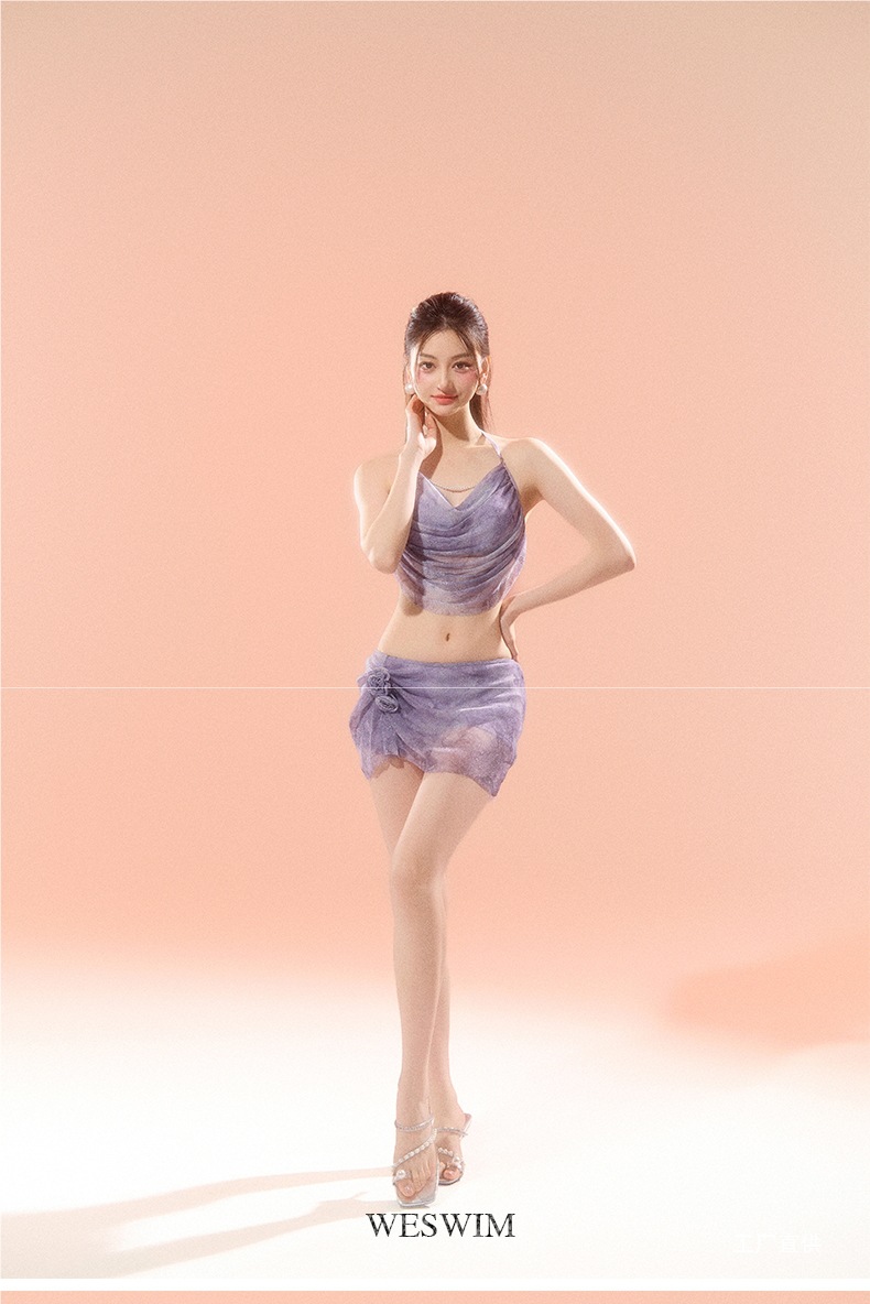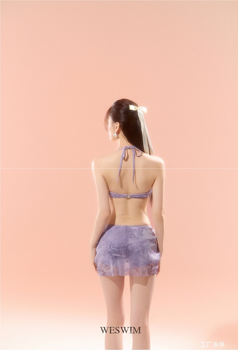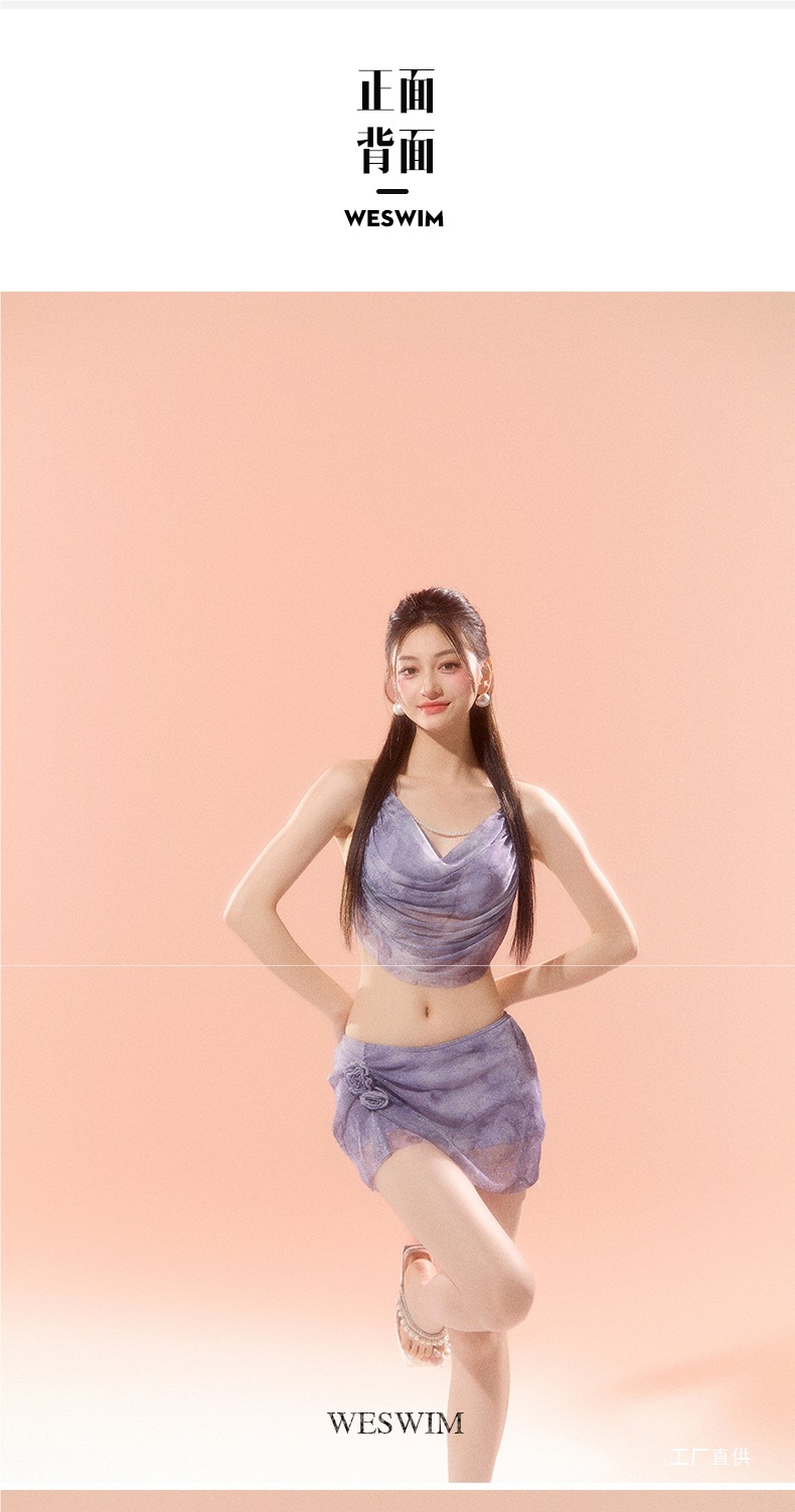 WESWIM 비키니 수영복 여성 스플릿 스커트 작은 가슴 분위기 얇은 거즈 섹시한 순수한 욕망 홀터넥 백리스 여름 Weitong