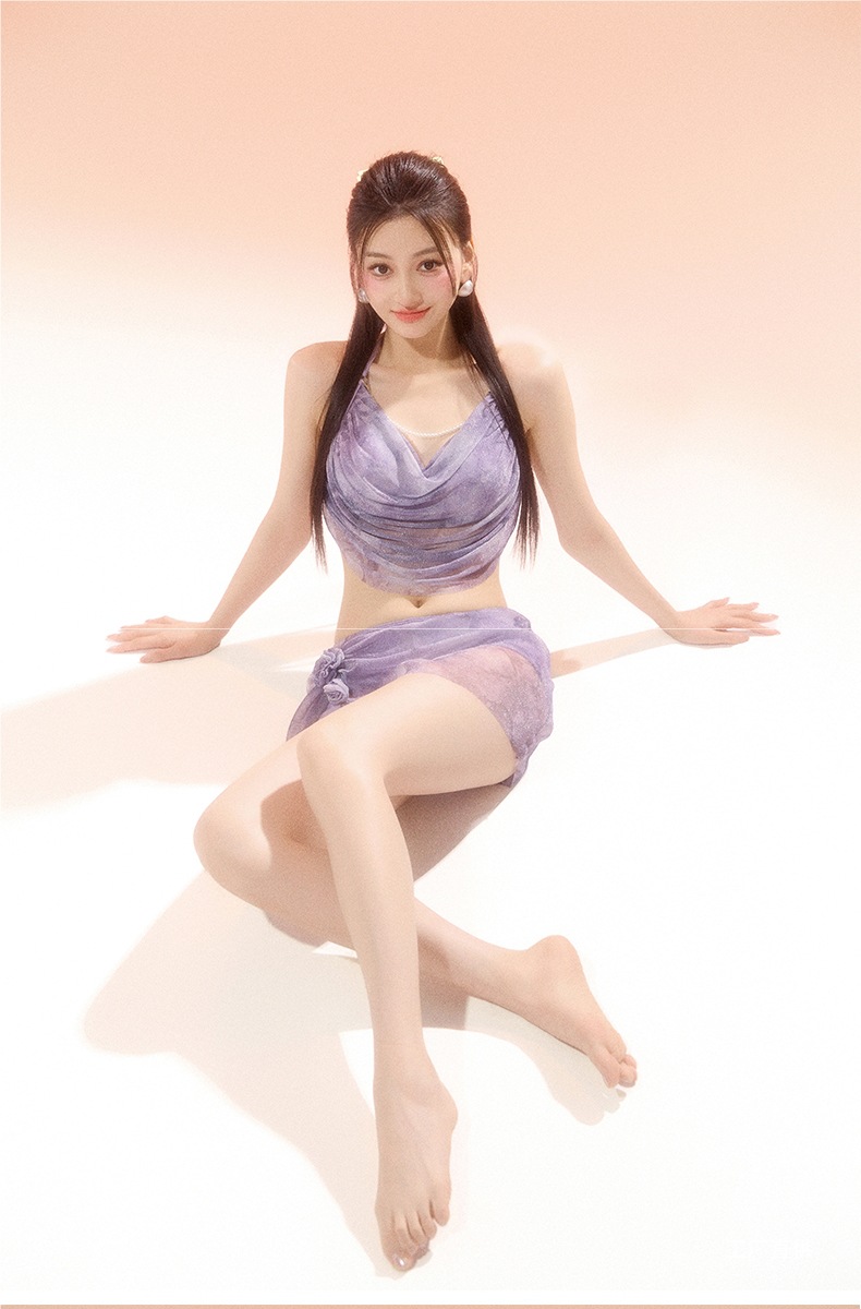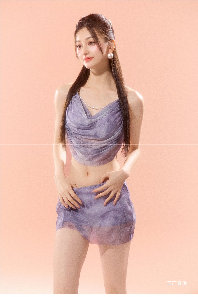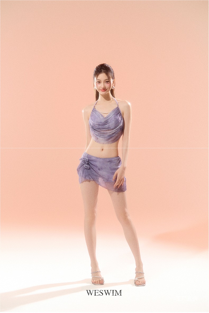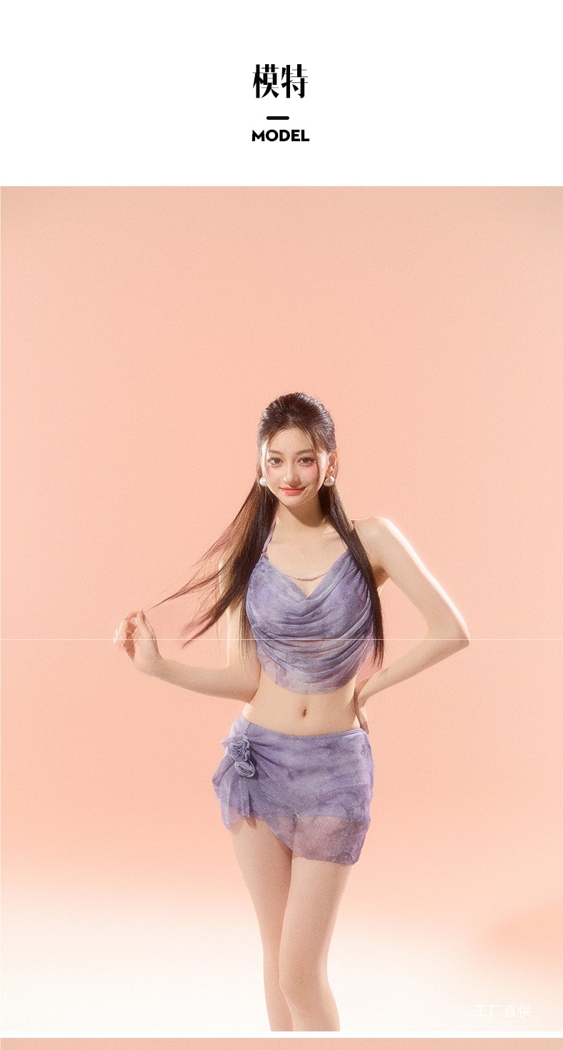 WESWIM 비키니 수영복 여성 스플릿 스커트 작은 가슴 분위기 얇은 거즈 섹시한 순수한 욕망 홀터넥 백리스 여름 Weitong