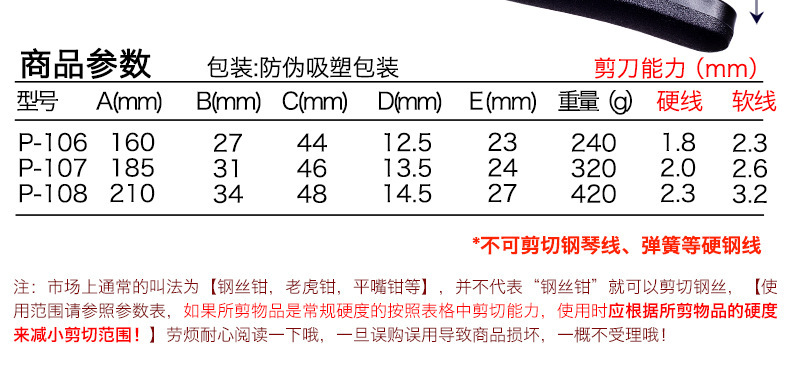 원래 정품 일본 KEIBA 말 브랜드 P-106/107/108 와이어 펜치 전기 평면 펜치 vise