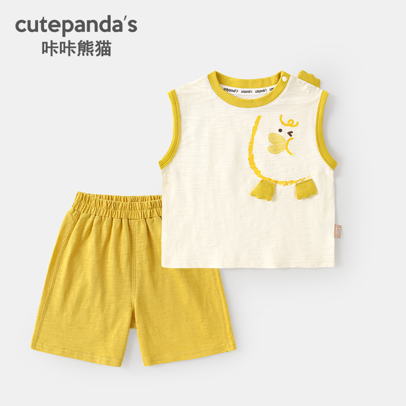 카카 팬더 보이즈 세트 걸스 여름 옷 어린이 여름 옷 아기 반팔 반바지 투피스 아동복 트렌디