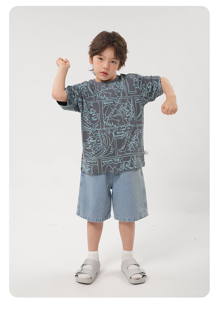 남학생 캐주얼 여름복 반팔 티셔츠 아동복 어린이 아기 중 · 올드 보이즈 여름 탑 반소매 여름 패션스토어 가기