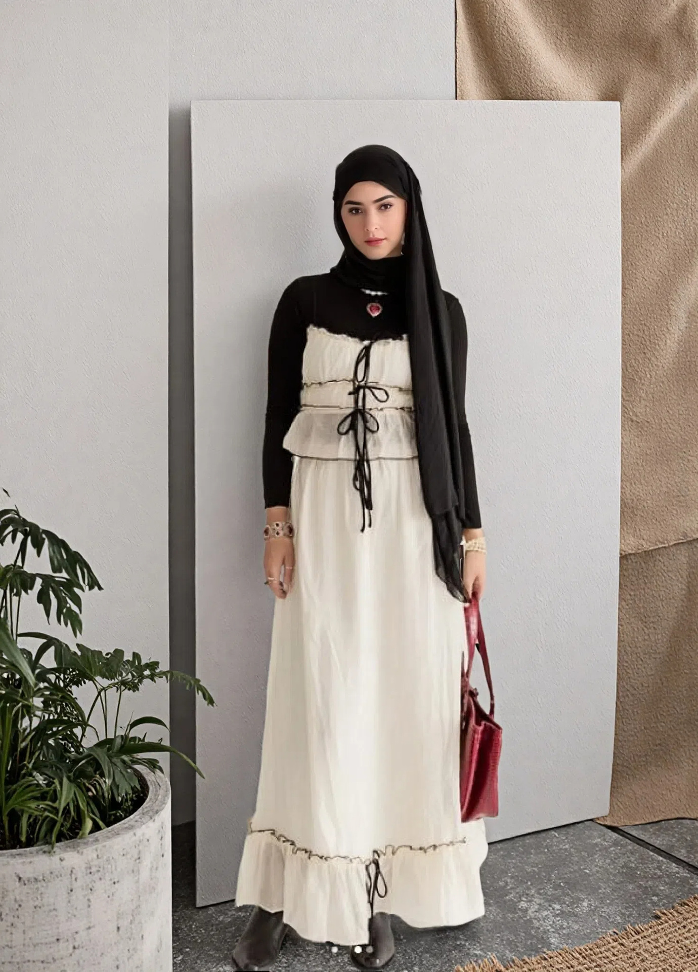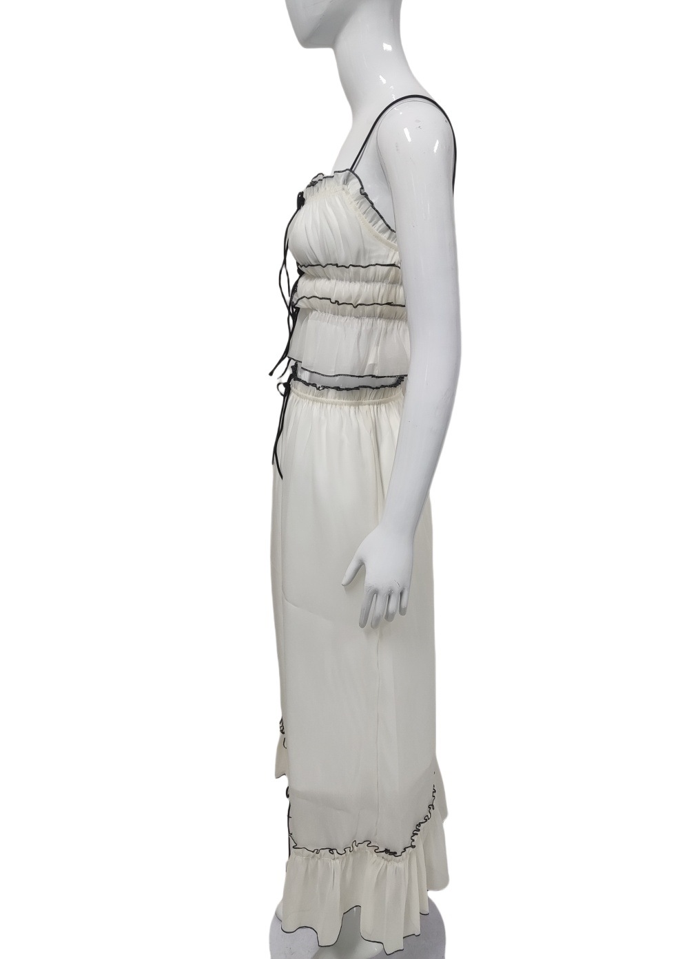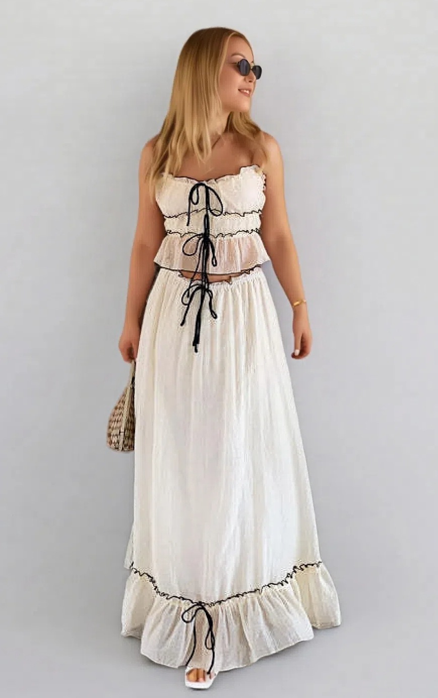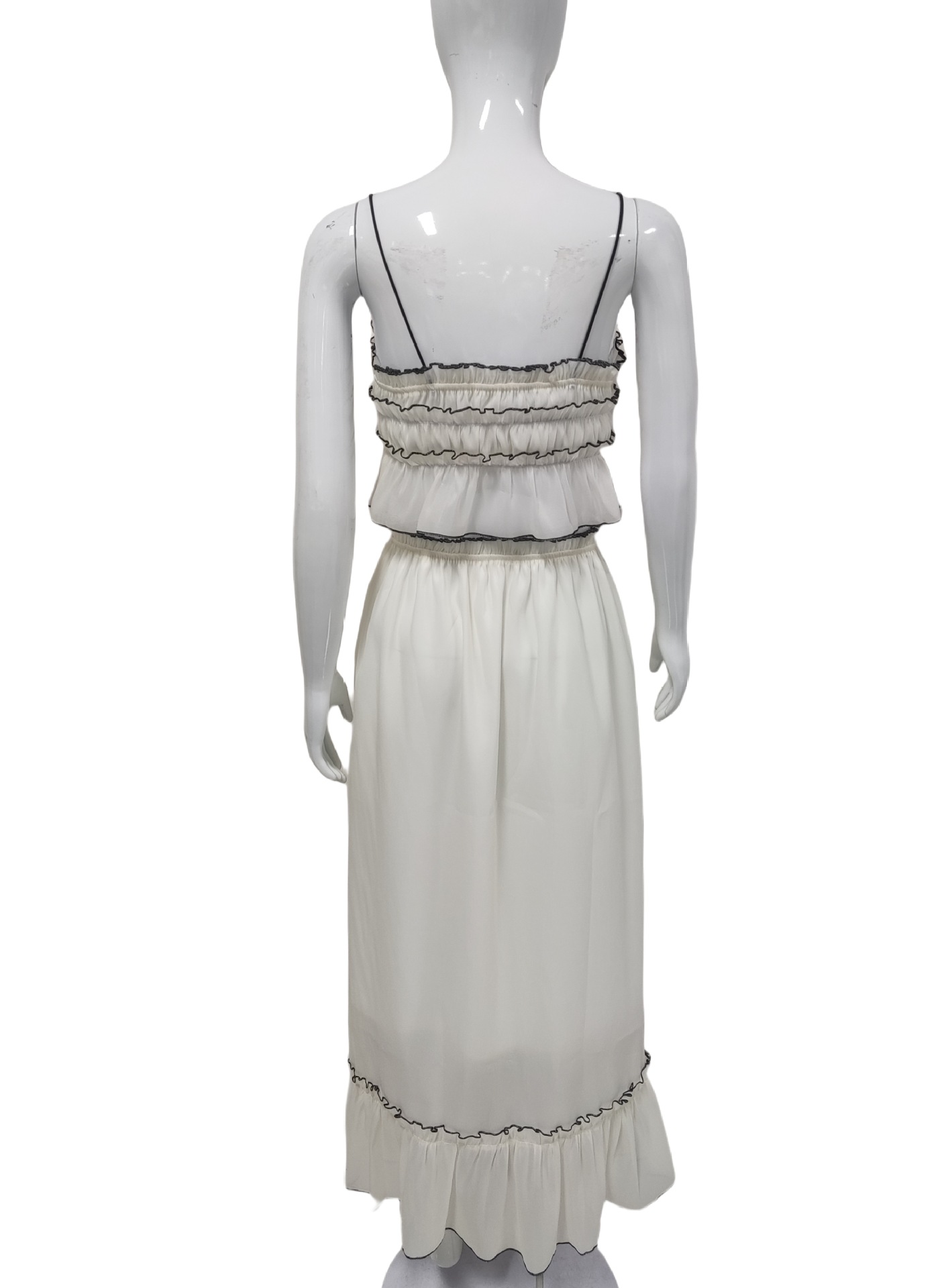 法式气质性感辣妹风木耳边吊带背心女夏季拼接系带小众百搭两件套休闲裙套装