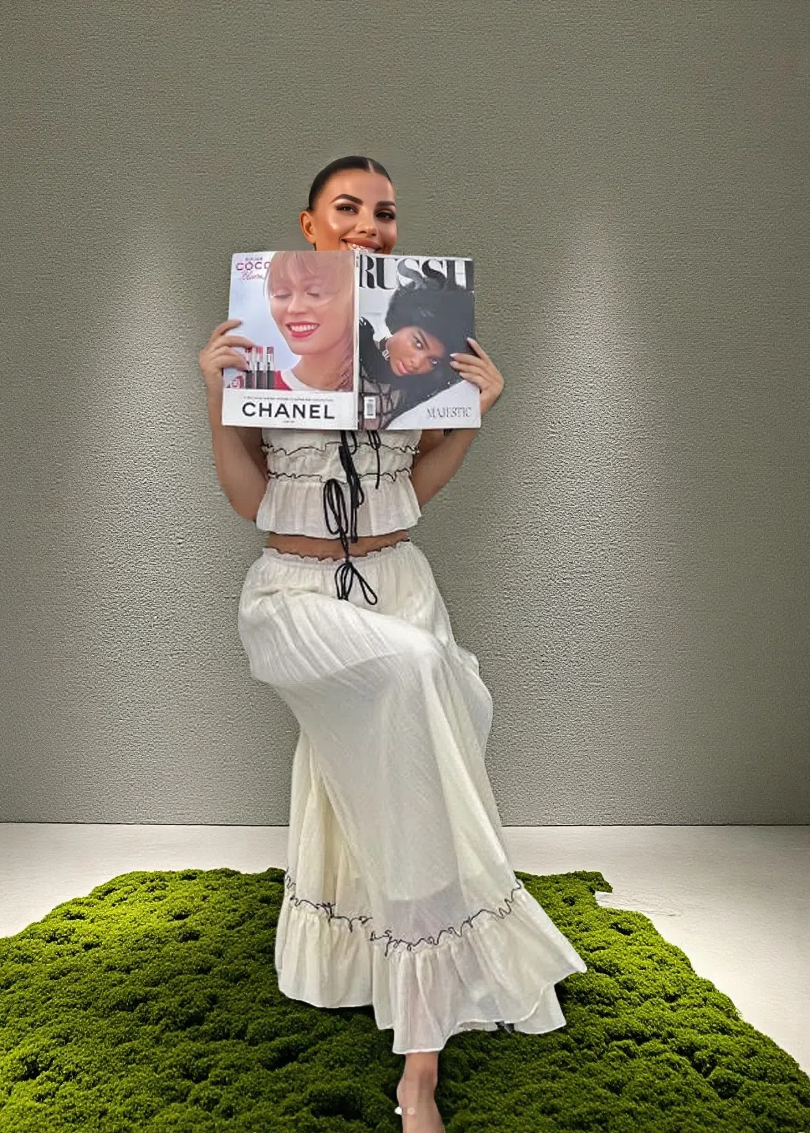 AliExpress 새로운 여성 2025 년 여름 스트랩 활 달콤한 탑 주름 요정 치마 세트
