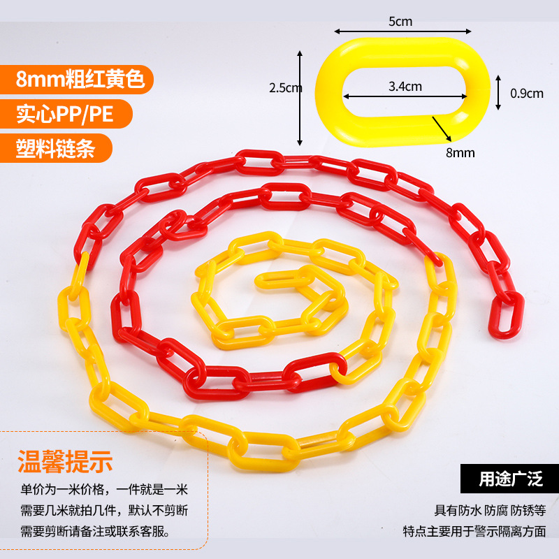 검은 노란색 빨간색 플라스틱 보호 체인 건설 현장 안전 격리 연결 체인을 연결하는 교통 플라스틱 경고 체인스토어 가기