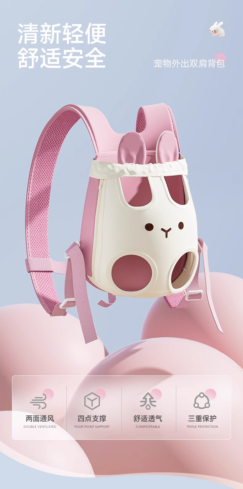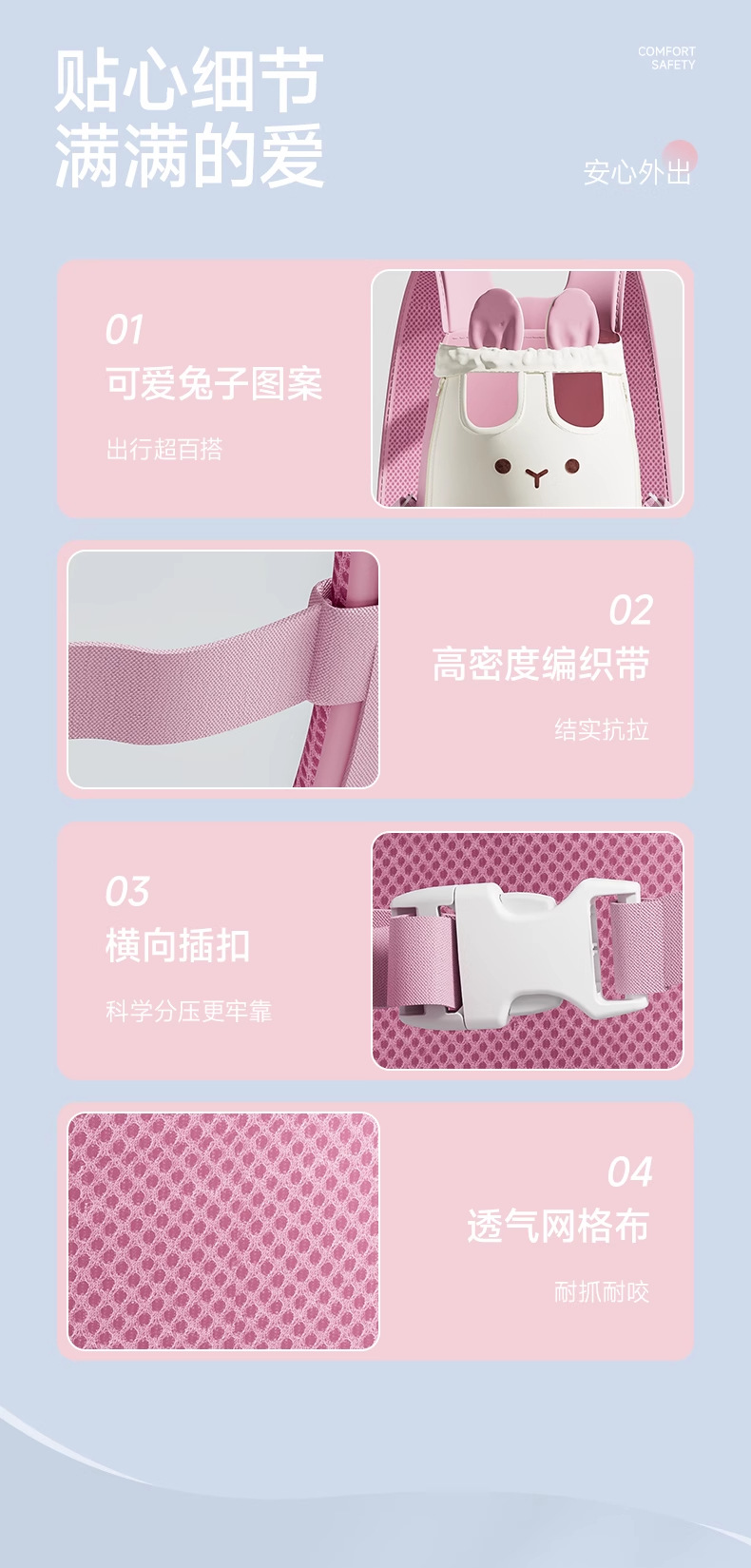 【品名】:蓝白萌宠随行包/HOOPET宠物兔耳朵胸前包(粉)(M/L/XL)
