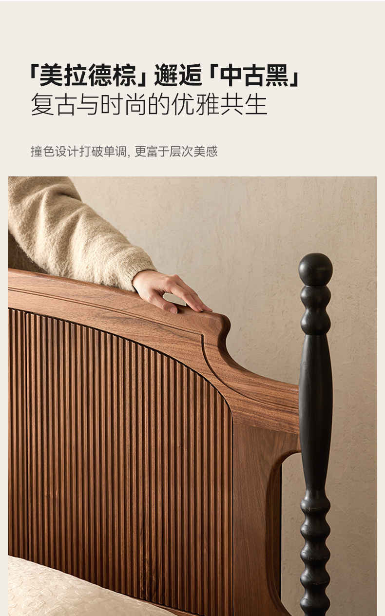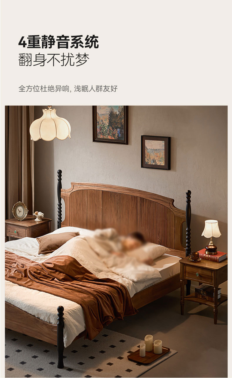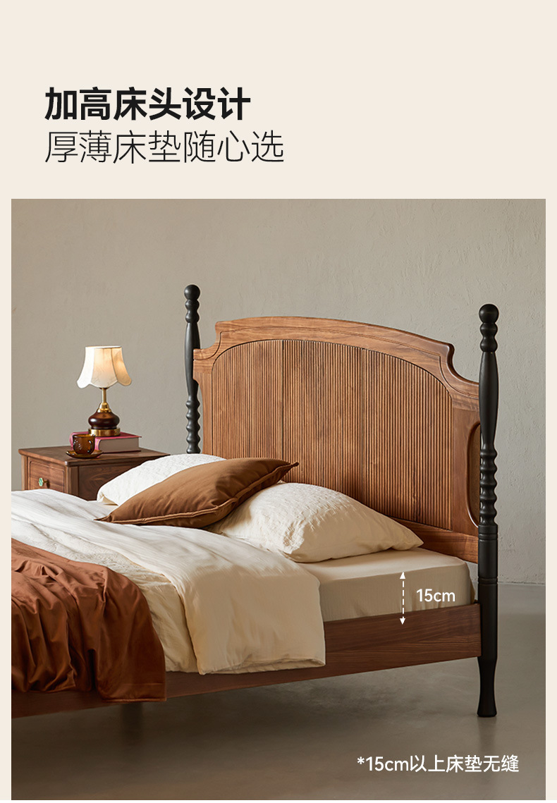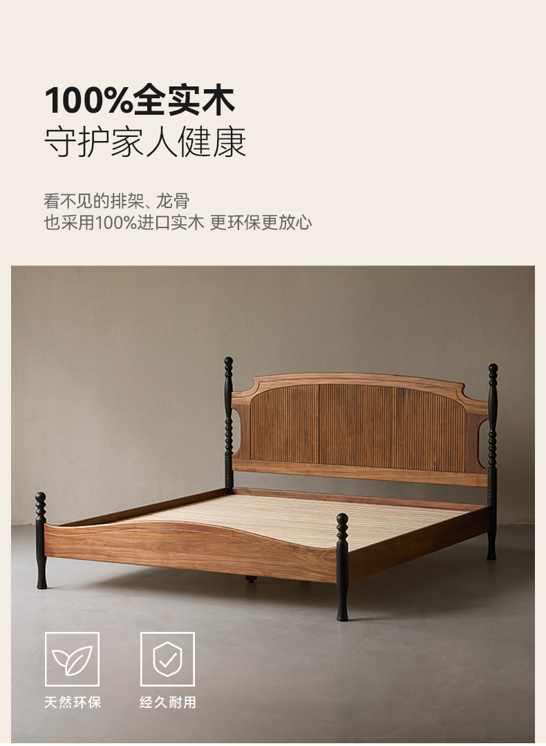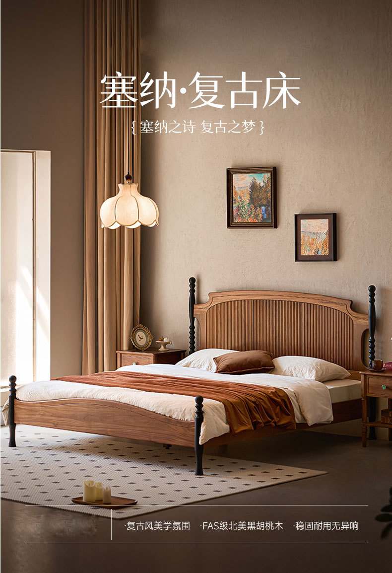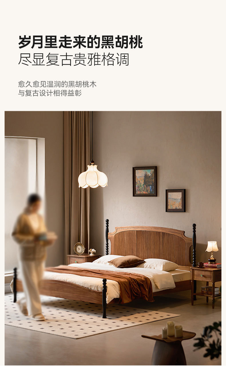 북미 검은 호두나무 원목 더블 침대 1.95m 미국 복고풍 대형 침대 마스터 침실 라이트 럭셔리 웨딩 침대 홈스토어 가기