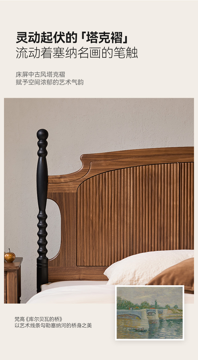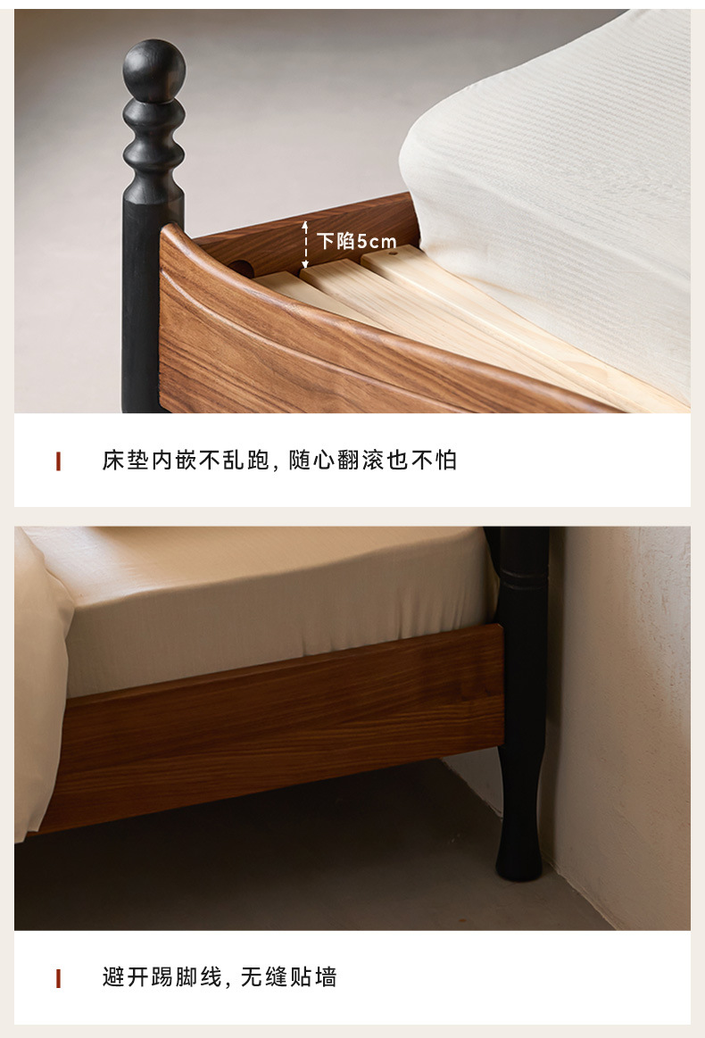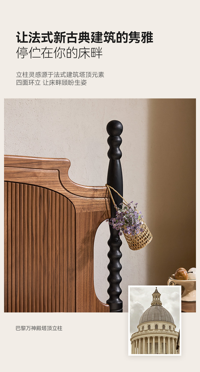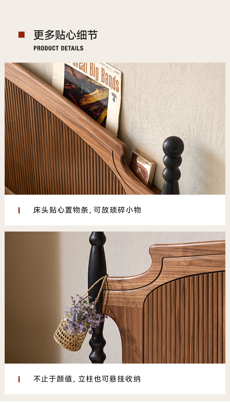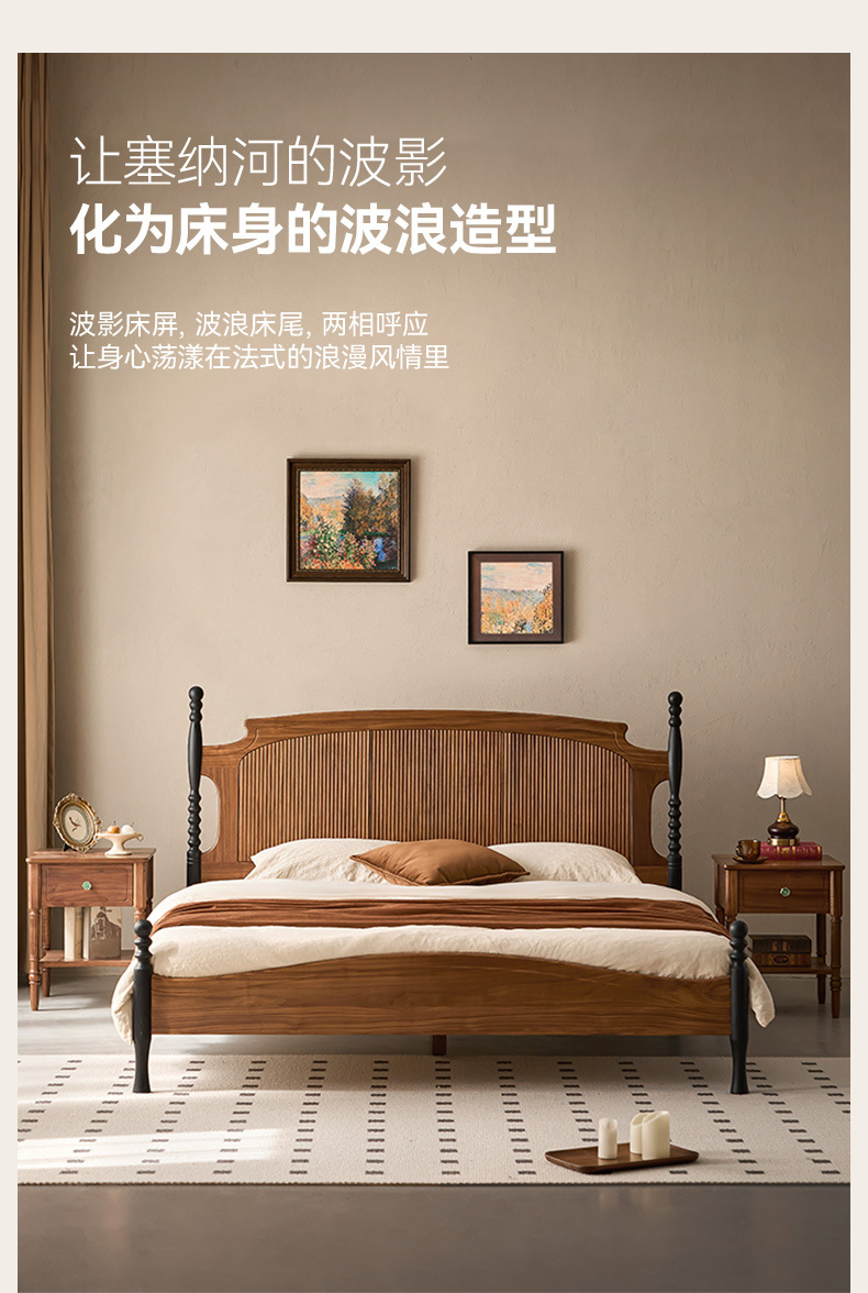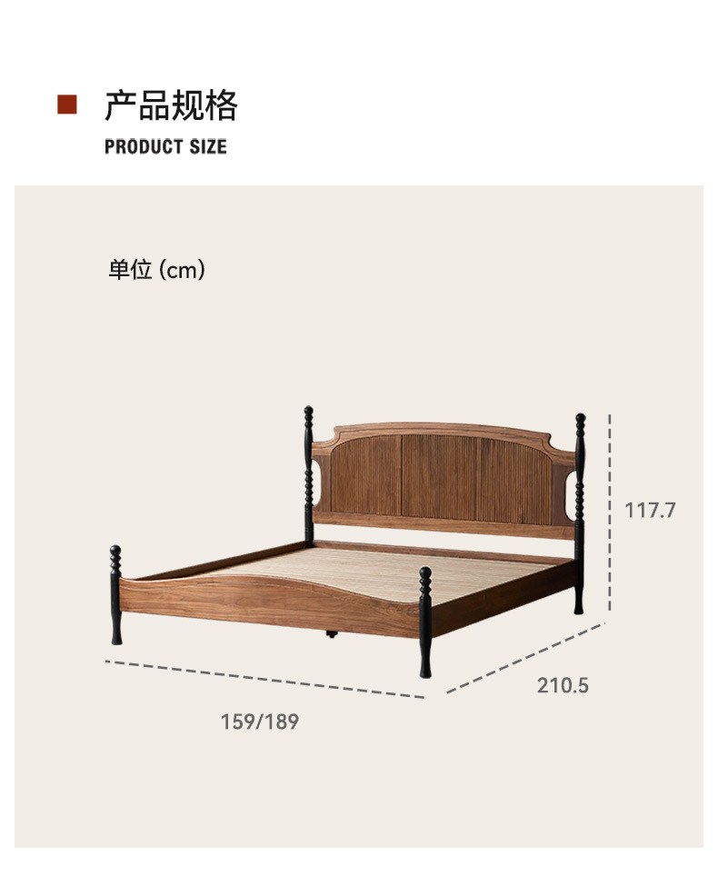 북미 검은 호두나무 원목 더블 침대 1.95m 미국 복고풍 대형 침대 마스터 침실 라이트 럭셔리 웨딩 침대 홈스토어 가기