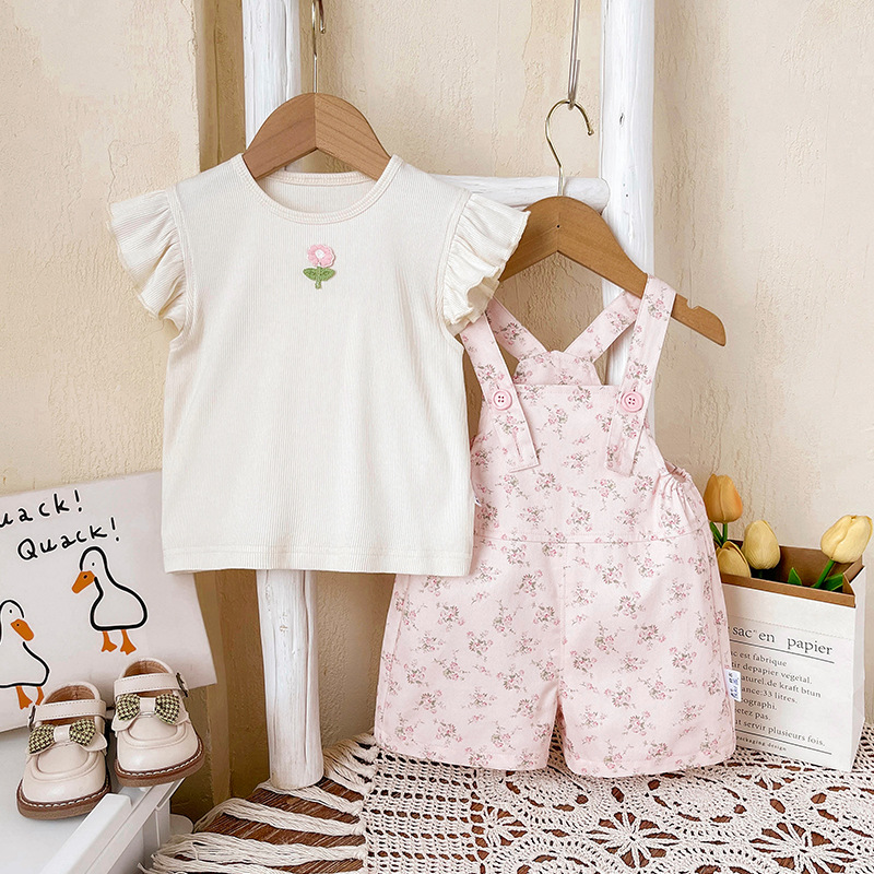 여자 여름 세트 2025 새로운 스타일 아동복 어린이 멜빵 투피스 아기 비행 소매 재킷 여름스토어 가기