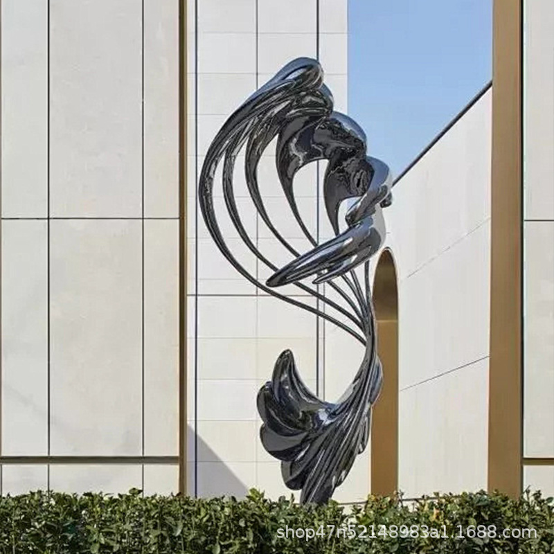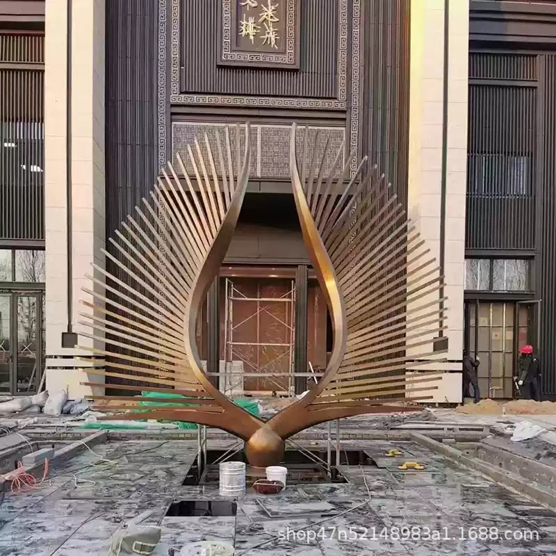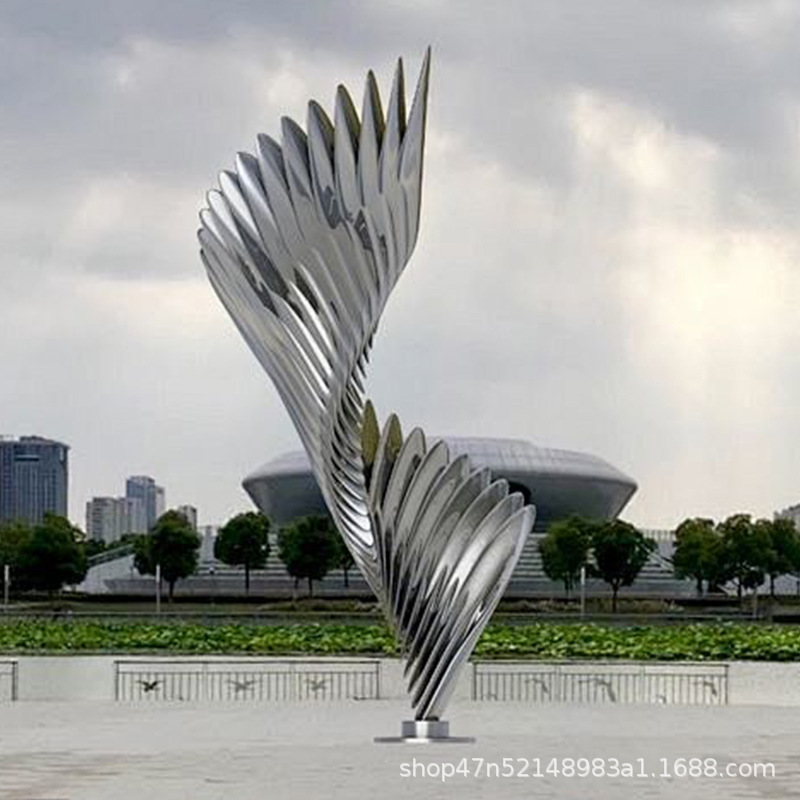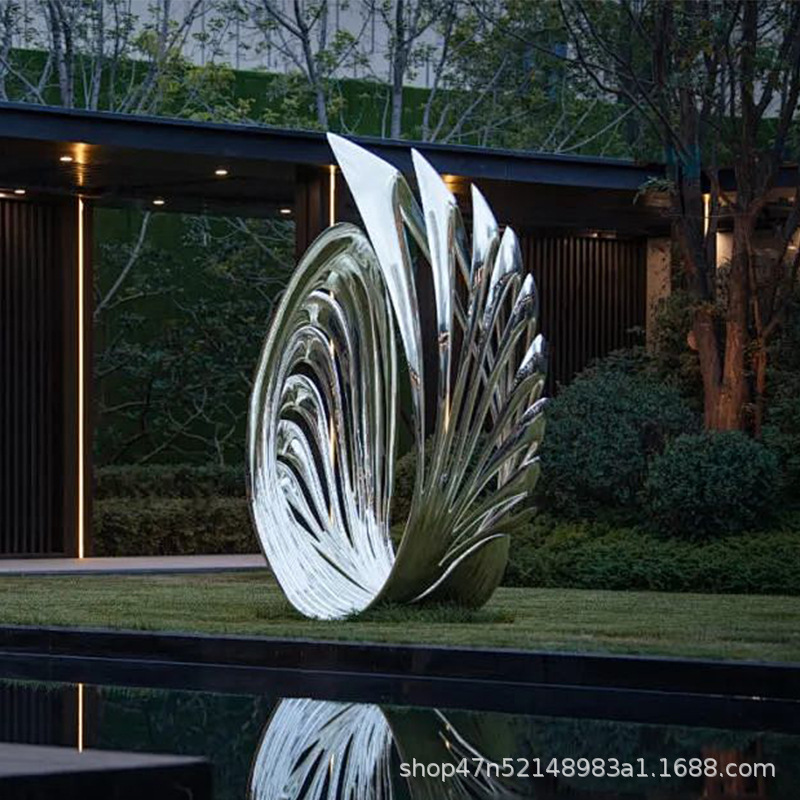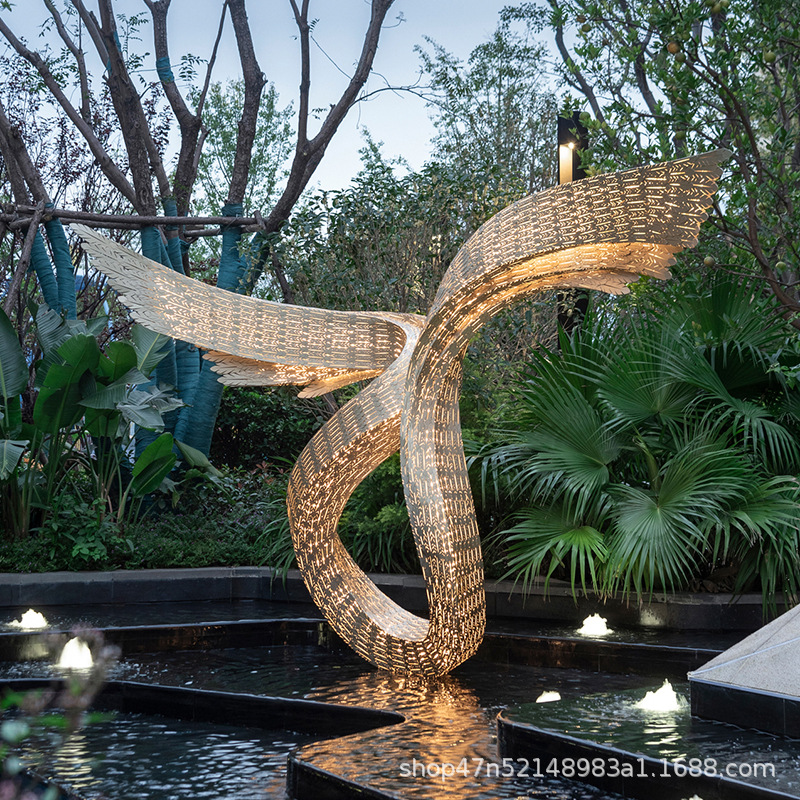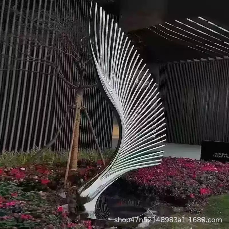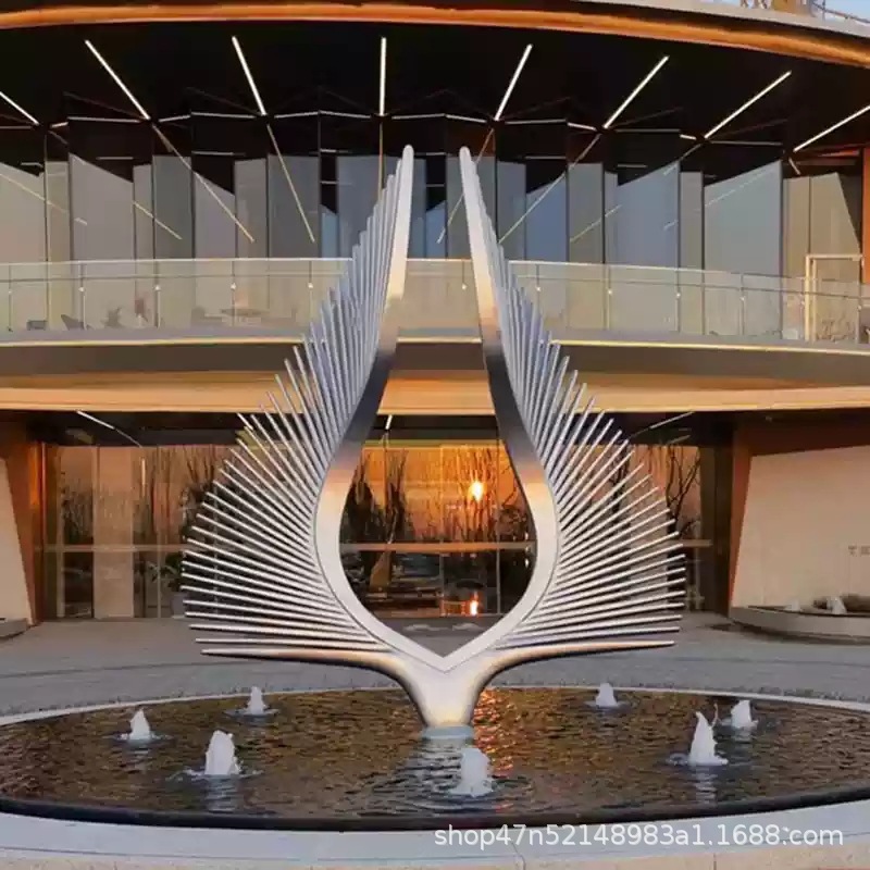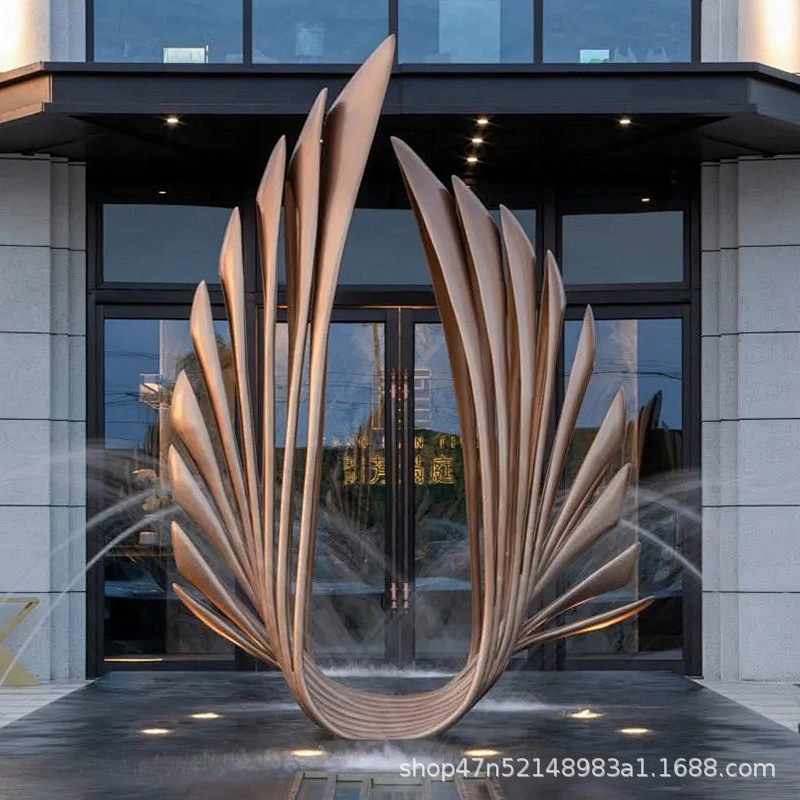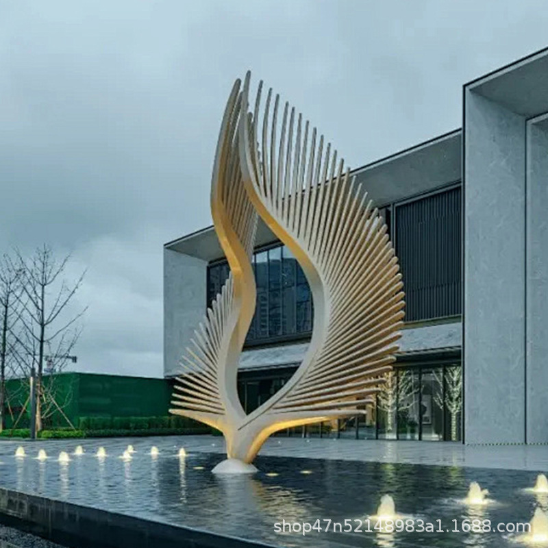 봉황 조각 스테인리스 대형 봉황 날개 조개 금속 추상 발광 경관 날개 수경 장식품