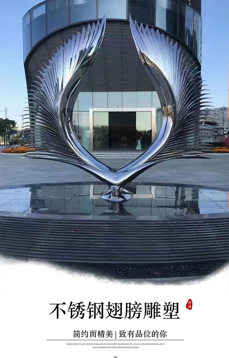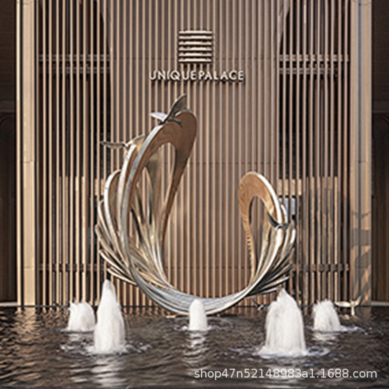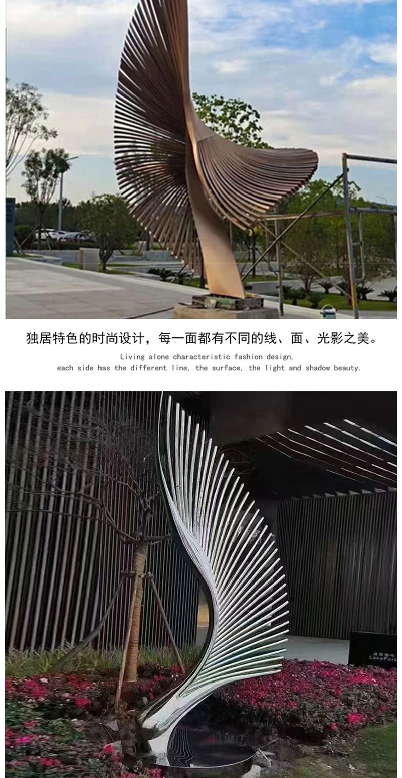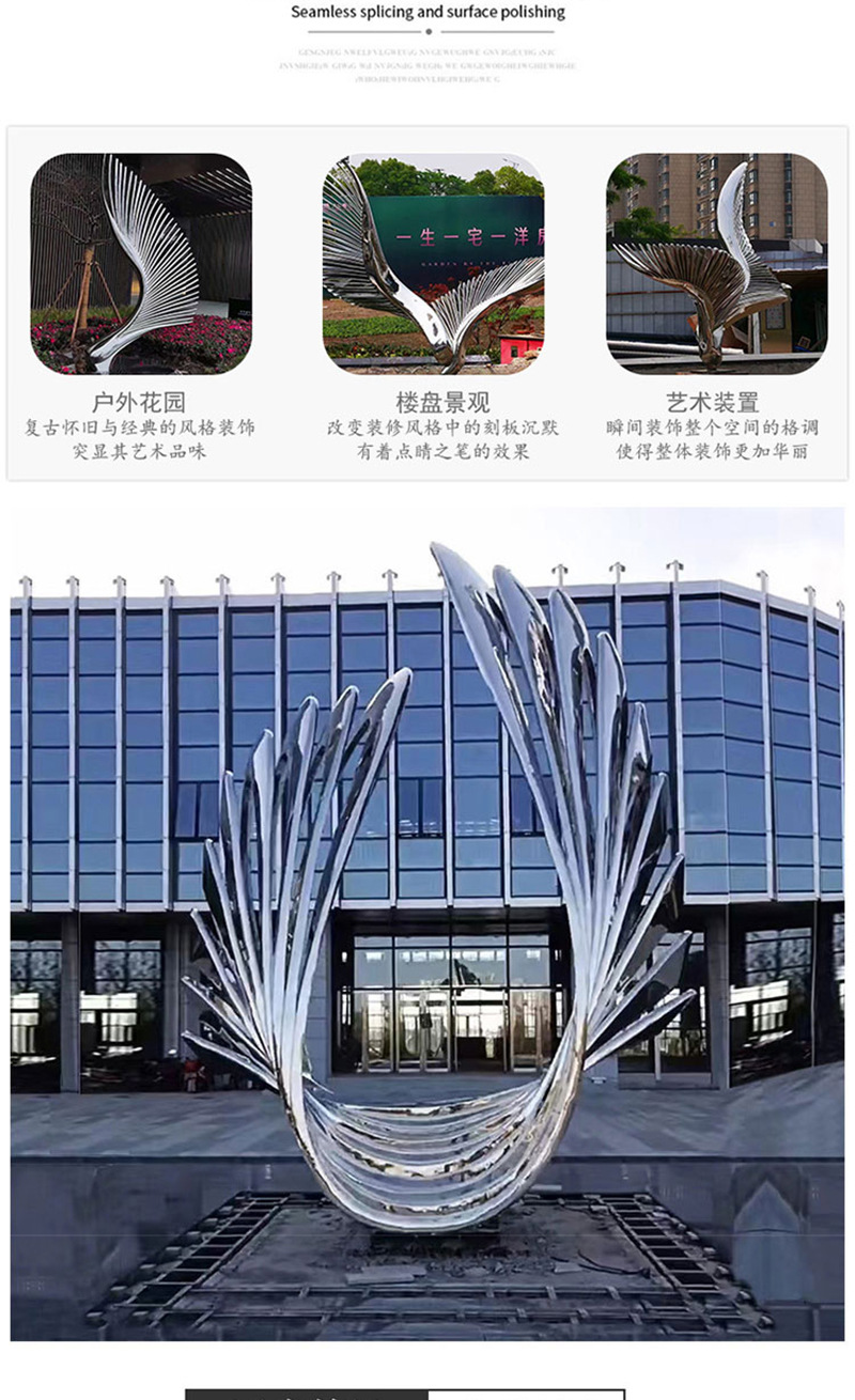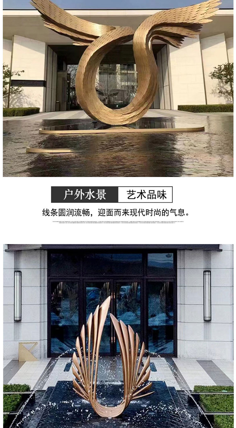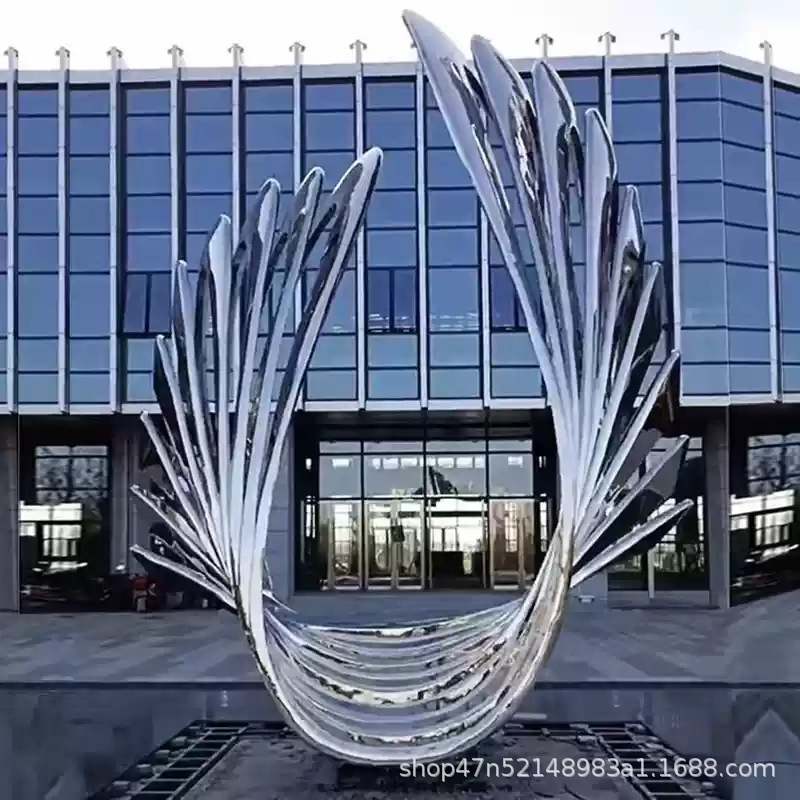 봉황 조각 스테인리스 대형 봉황 날개 조개 금속 추상 발광 경관 날개 수경 장식품