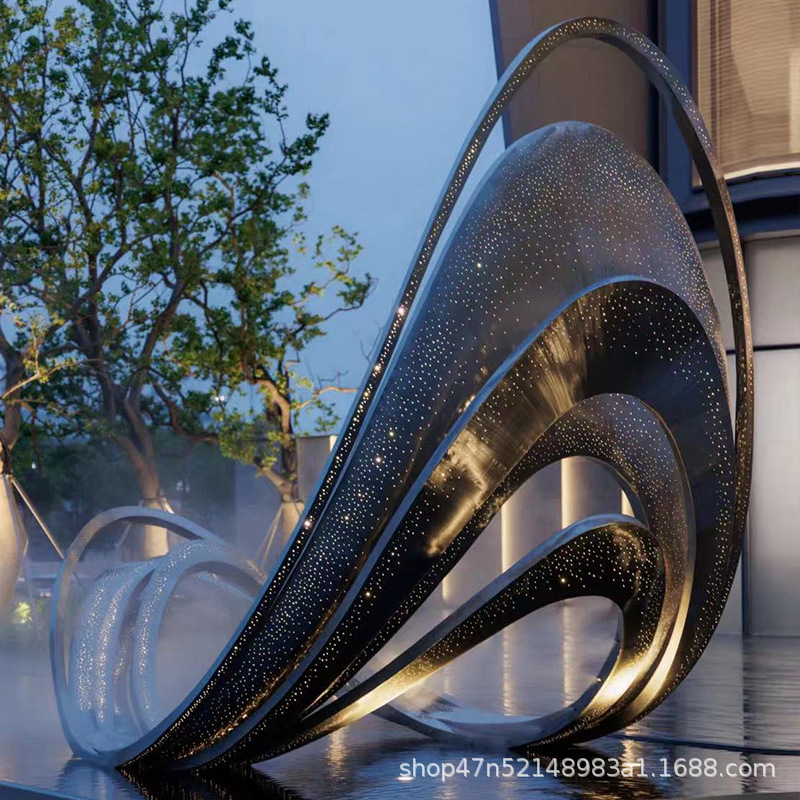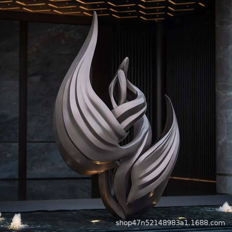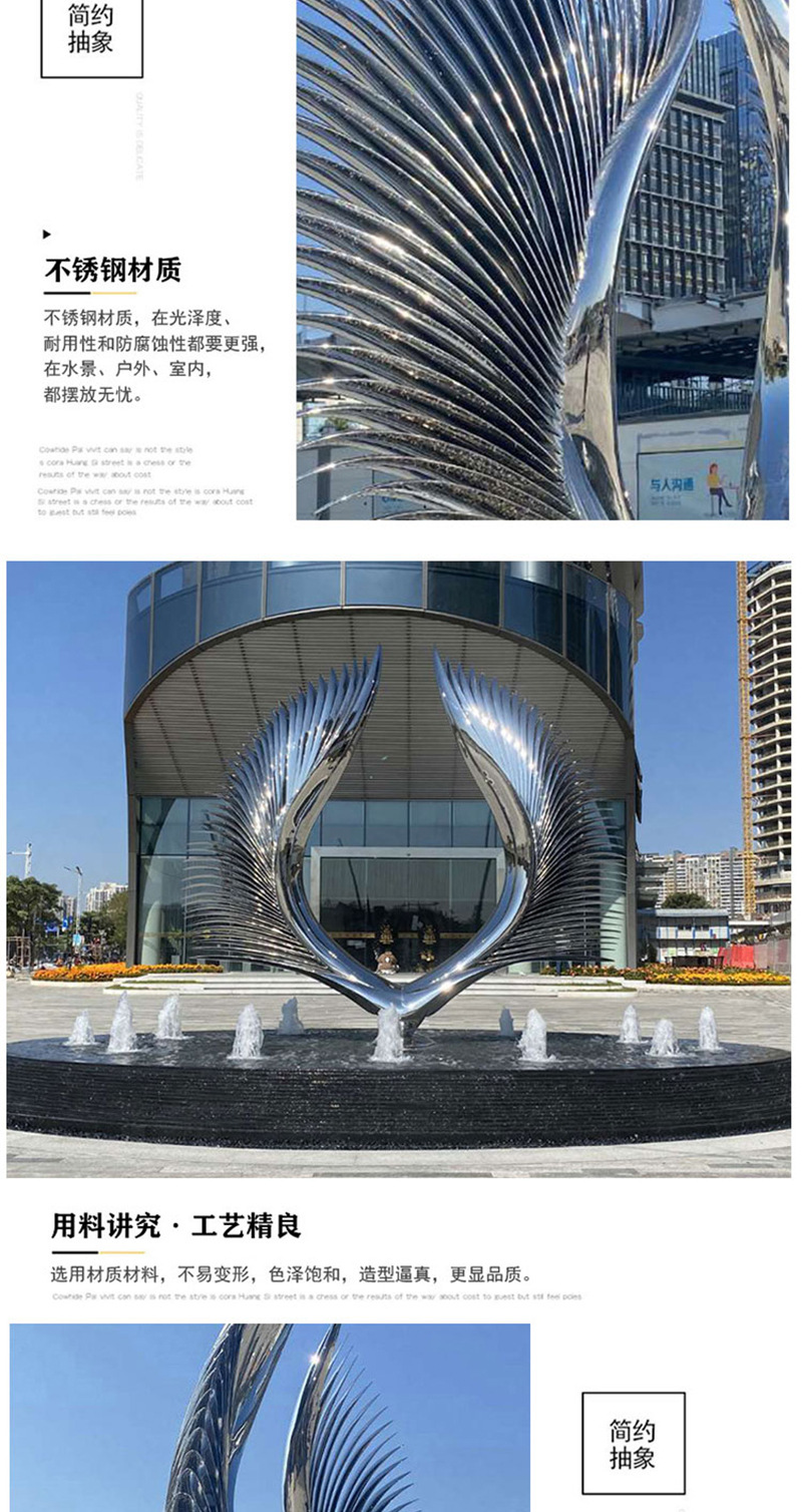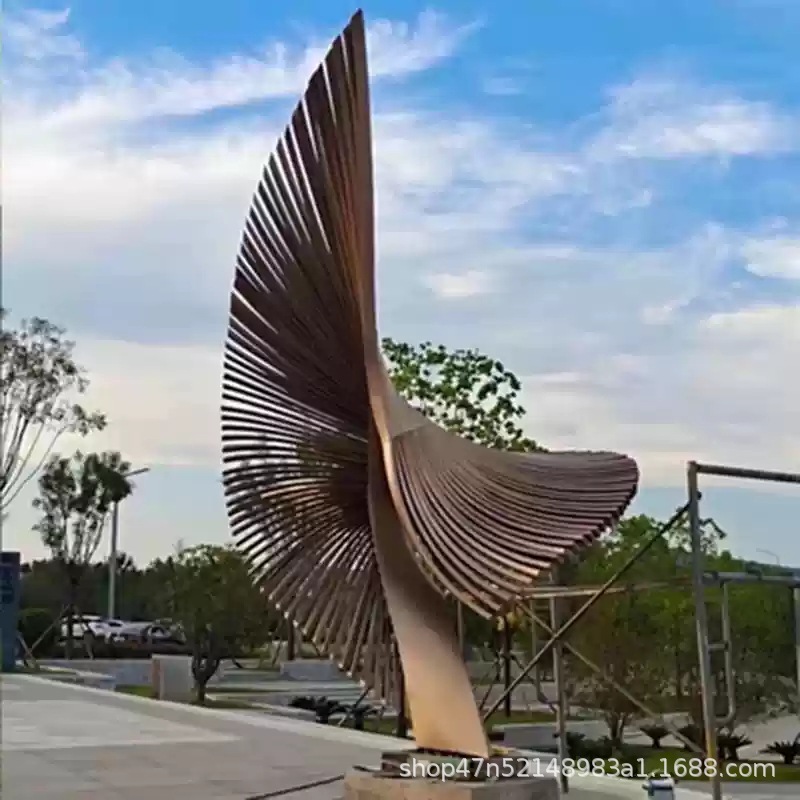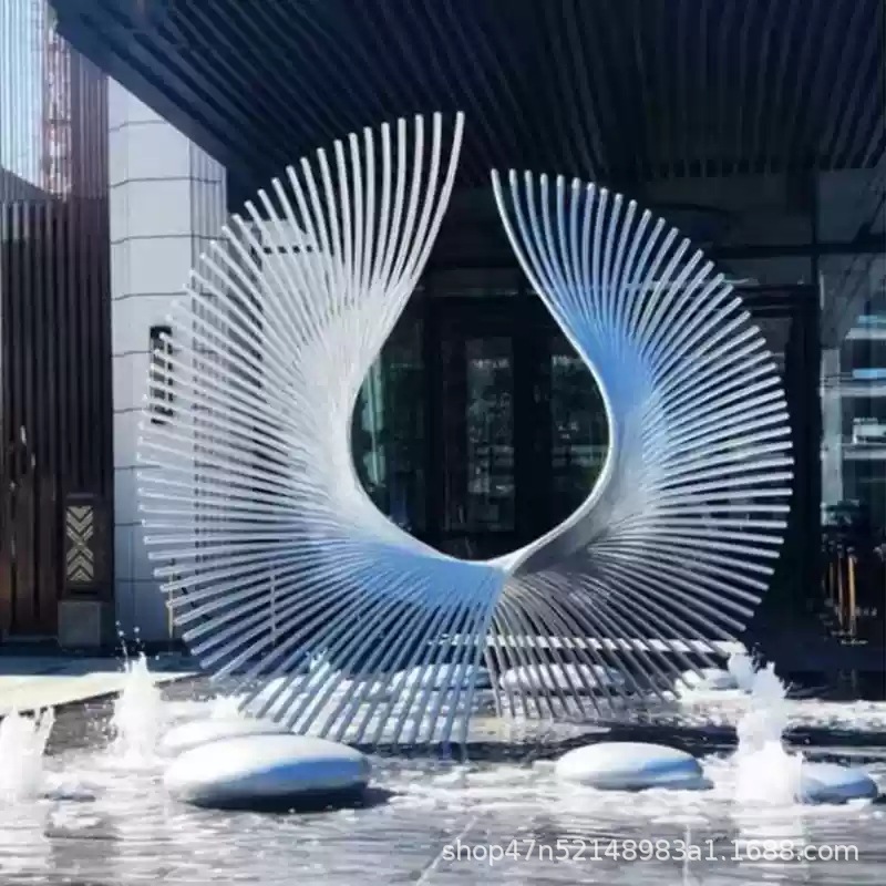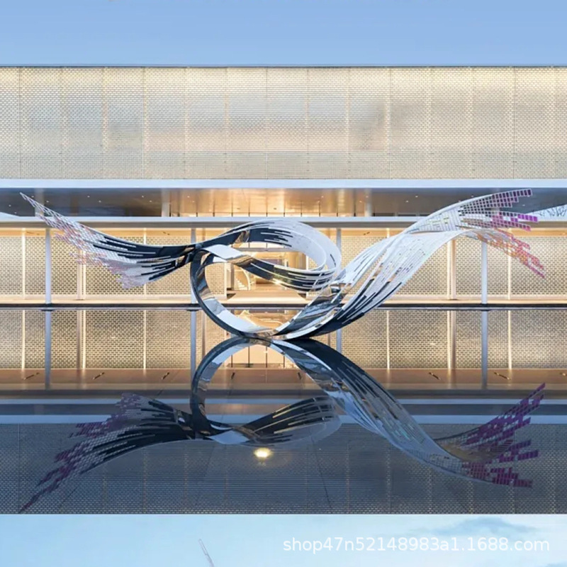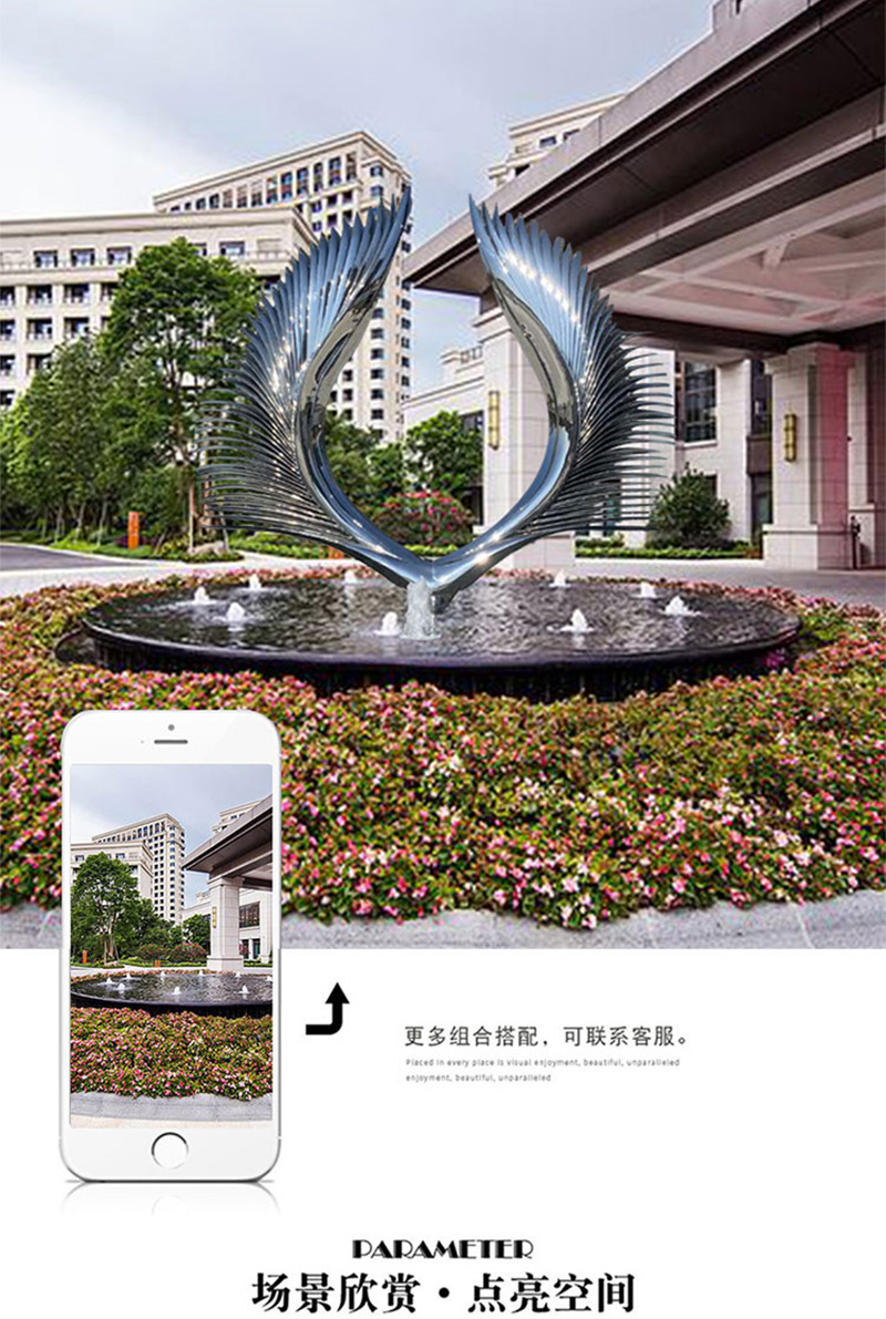 봉황 조각 스테인리스 대형 봉황 날개 조개 금속 추상 발광 경관 날개 수경 장식품